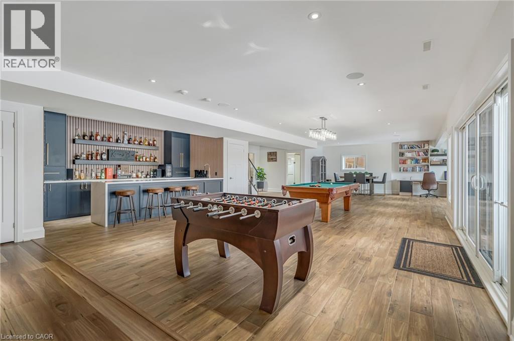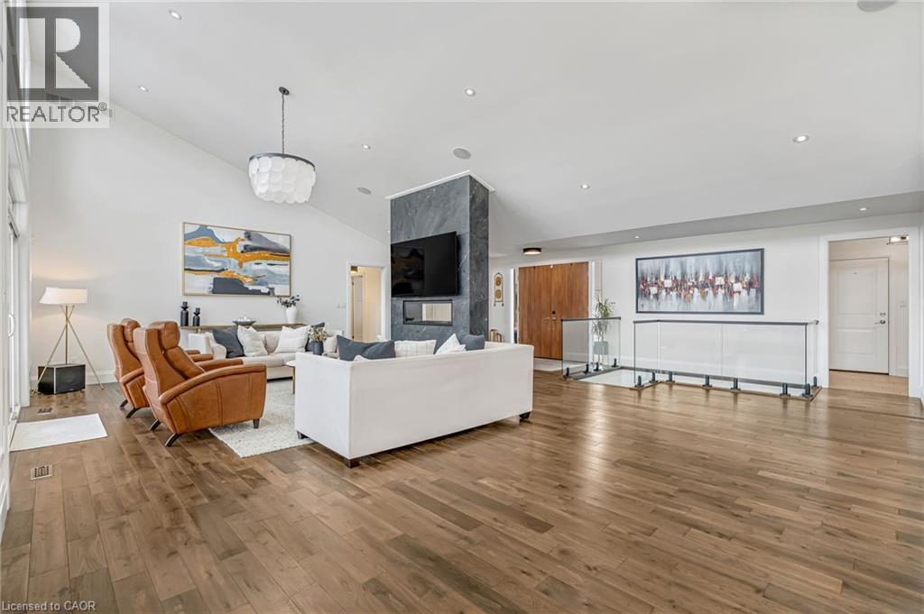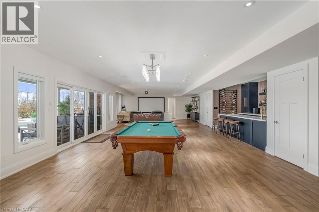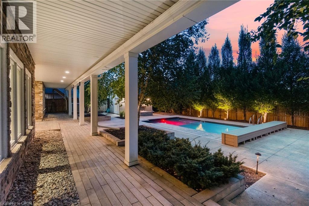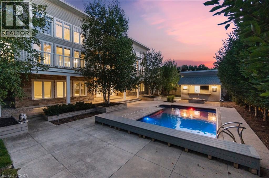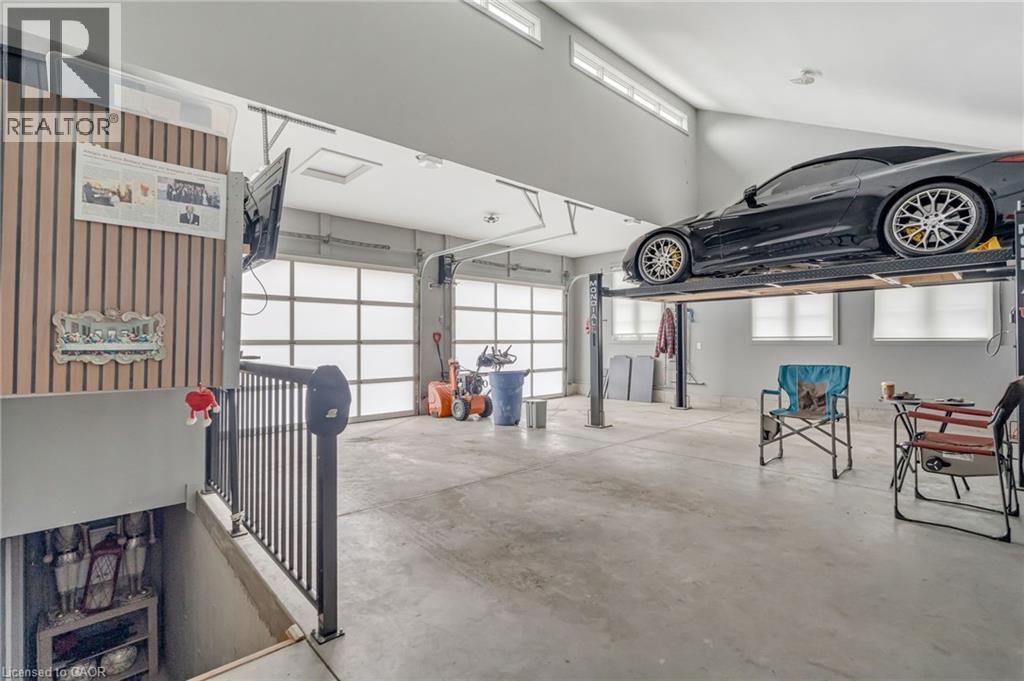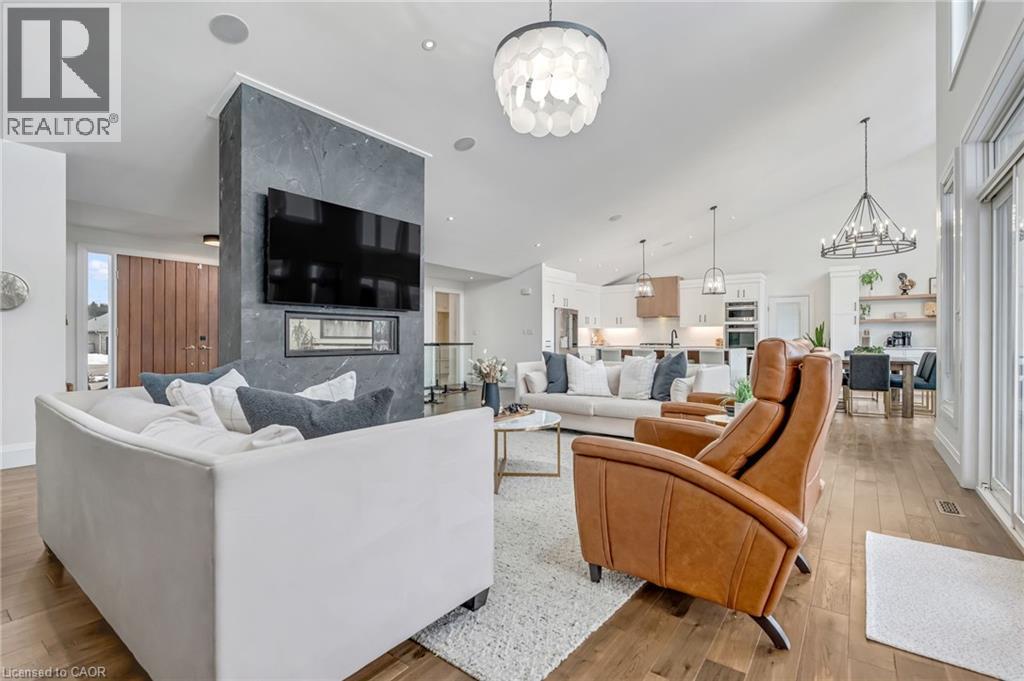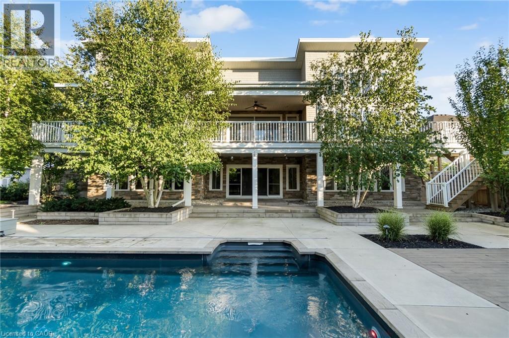 Experience refined living in this exceptional custom-built bungalow, perfectly positioned on an expansive lot at the end of a quiet cul-de-sac offering over 5200 sq ft of living space. From the moment you step inside, the great room impresses with its dramatic vaulted ceiling and airy sense of scale, setting the tone for the rest of the home. Designed with both comfort and functionality in mind, the open-concept layout allows each space to flow naturally. Oversized windows bathe the interior in natural light and offer walkout access to a balcony overlooking the outdoor oasis. Enjoy a Brazilian leather granite fireplace for cozy nights. The chef-inspired kitchen features stainless steel appliances and granite countertops - ideal for everyday living and entertaining. The fully finished walkout basement extends the home's versatility, offering a spacious recreation area, media zone, Stunning bar, 3-piece bathroom, and a fourth bedroom - an excellent setup for guests, in-laws, or older children. Step outside to your own private resort. The backyard showcases an inground pool, hot tub, outdoor fire-table and fire-pit, and a beautifully finished cabana, creating the perfect setting for relaxation or hosting gatherings in every season. For the car enthusiast you will love the car lift in the garage. A rare opportunity to own a thoughtfully crafted home that blends luxury, comfort, and exceptional indoor-outdoor living. (id:64974)