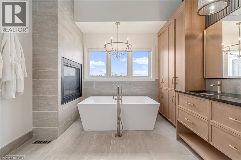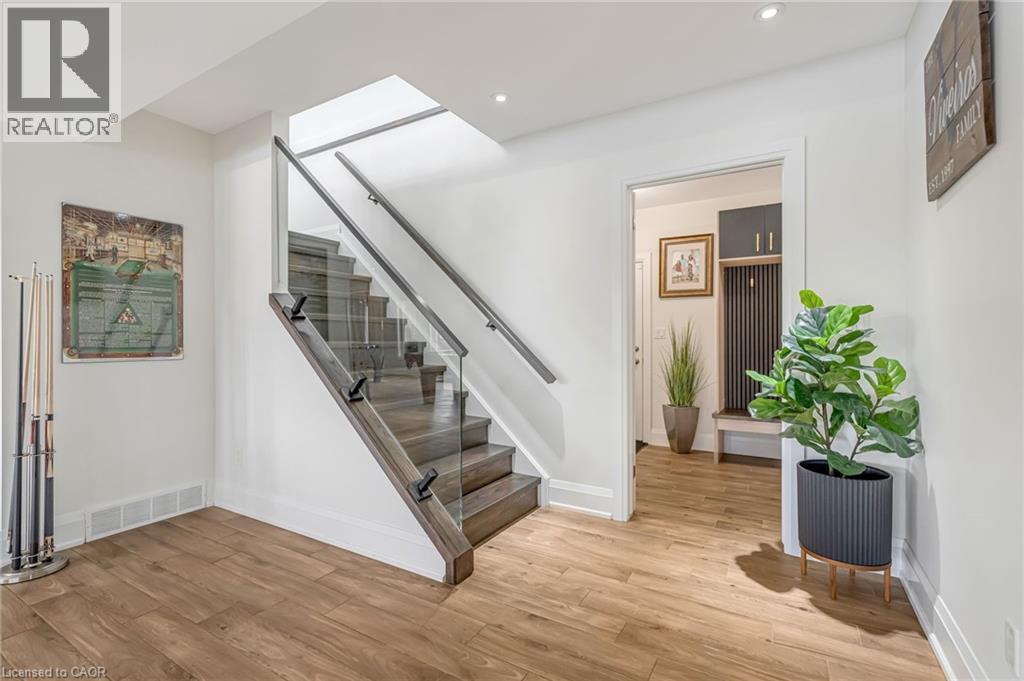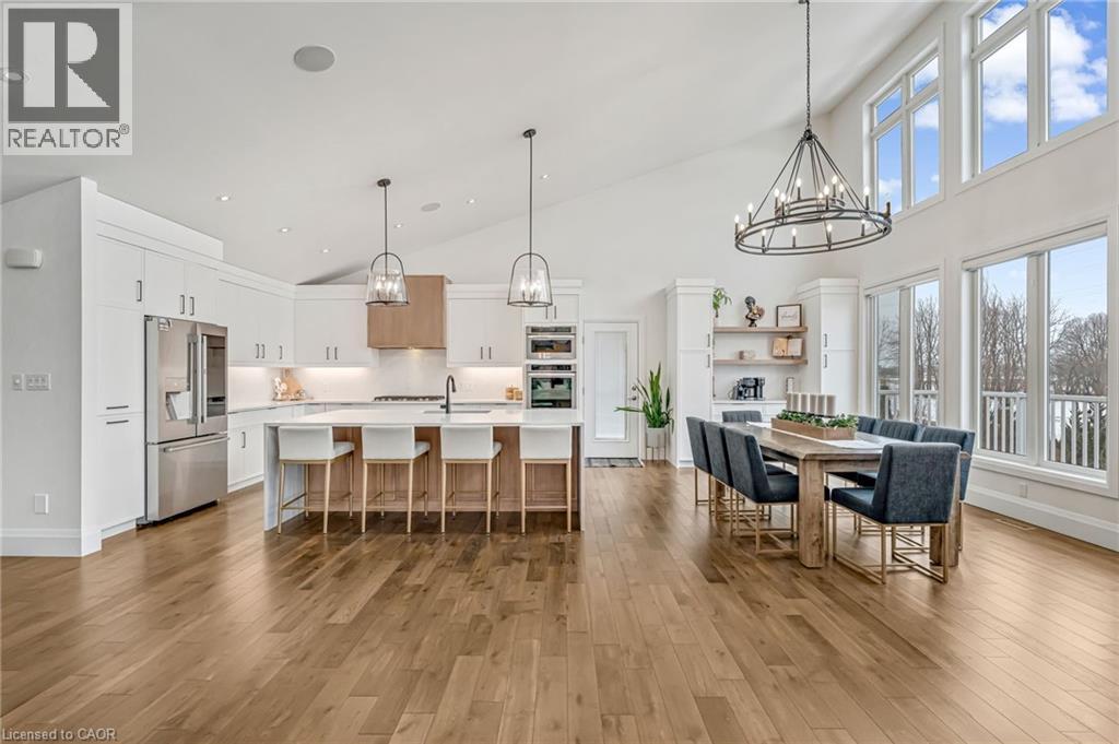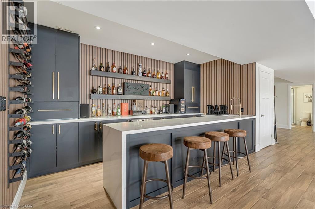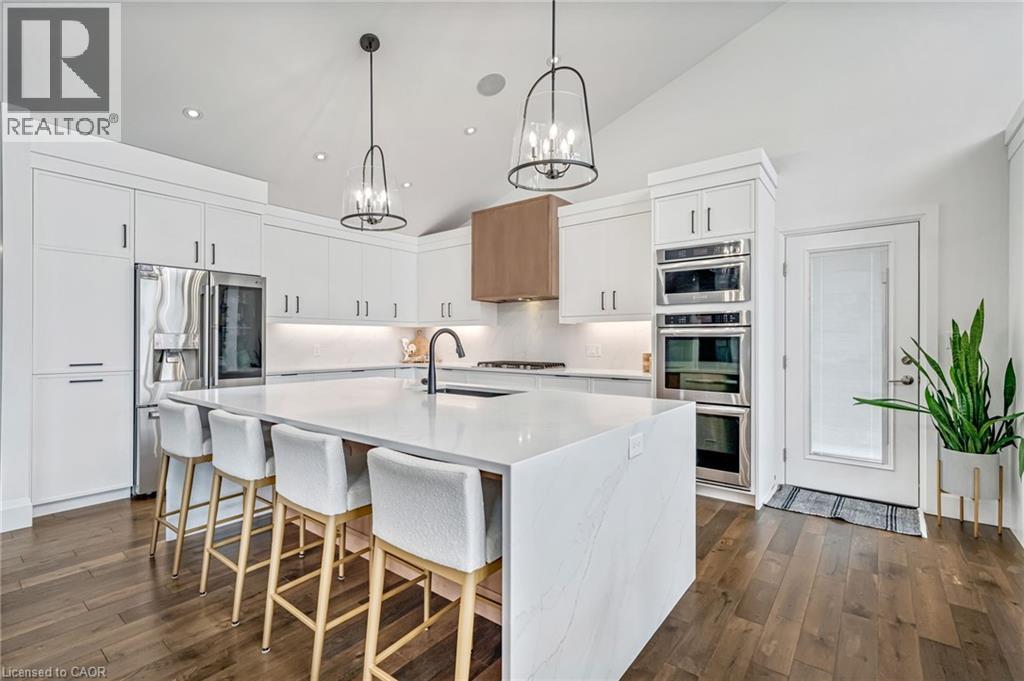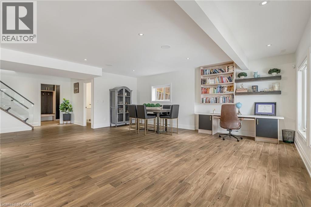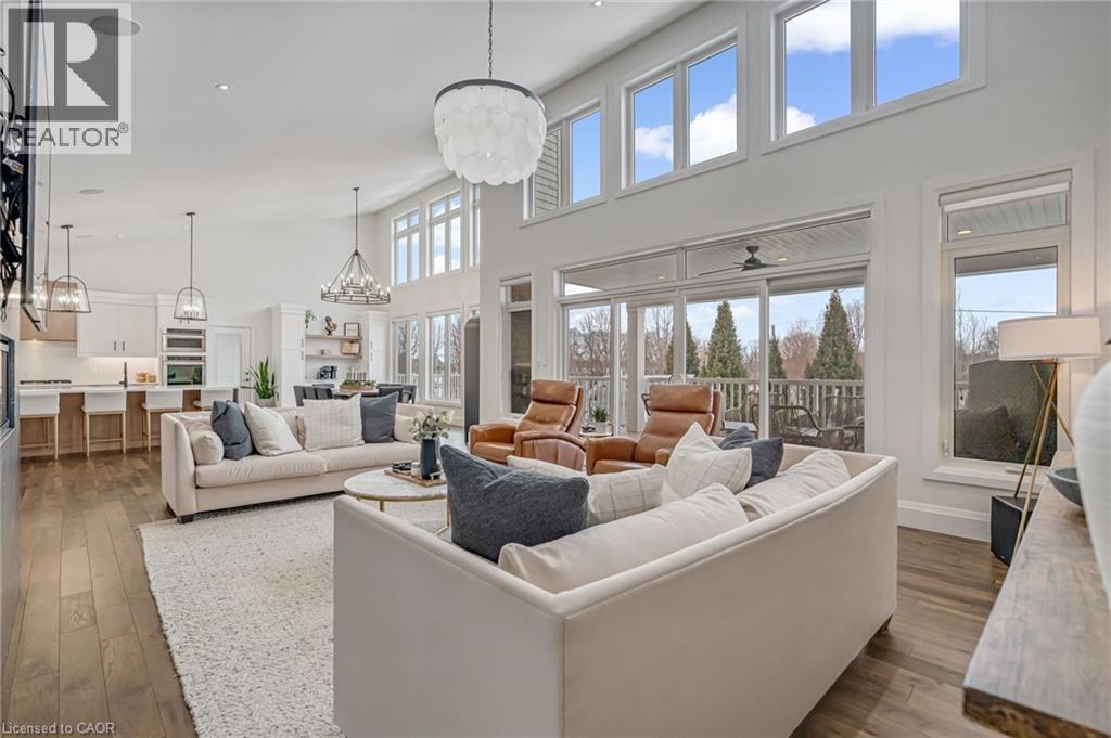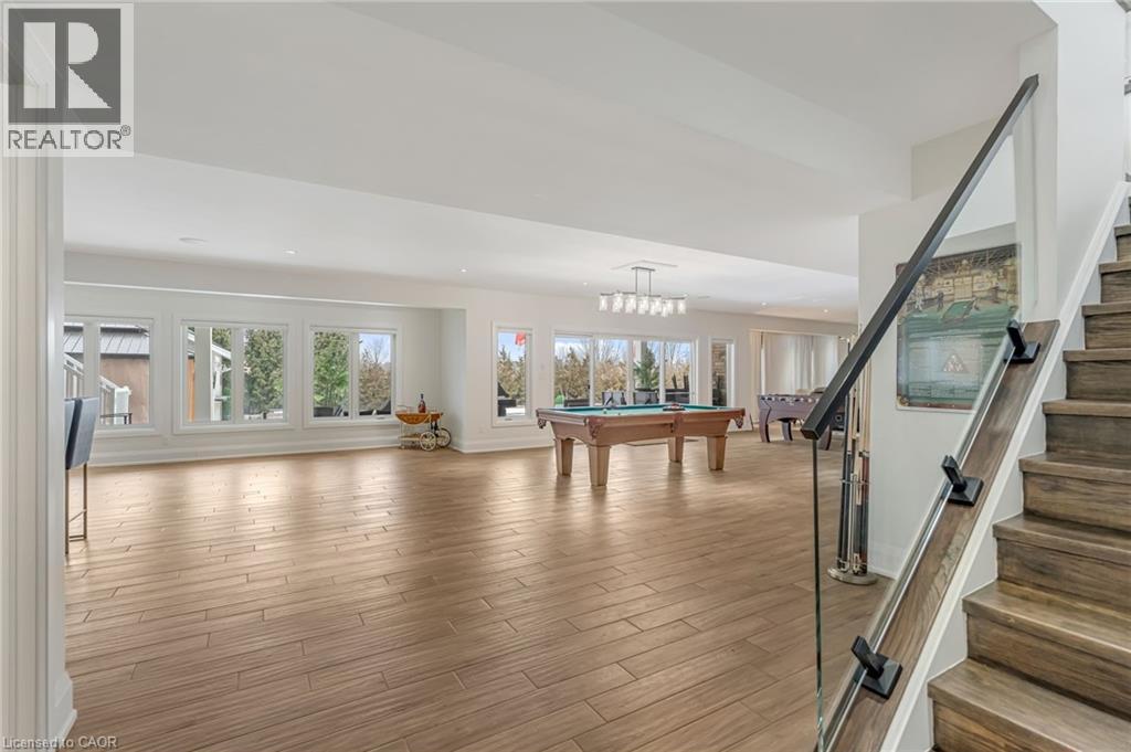 Experience refined living in this exceptional custom-built bungalow, perfectly positioned on an expansive lot at the end of a quiet cul-de-sac offering over 5200 sq ft of living space. From the moment you step inside, the great room impresses with its dramatic vaulted ceiling and airy sense of scale, setting the tone for the rest of the home. Designed with both comfort and functionality in mind, the open-concept layout allows each space to flow naturally. Oversized windows bathe the interior in natural light and offer walkout access to a balcony overlooking the outdoor oasis. Enjoy a Brazilian leather granite fireplace for cozy nights. The chef-inspired kitchen features stainless steel appliances and granite countertops - ideal for everyday living and entertaining. The fully finished walkout basement extends the home's versatility, offering a spacious recreation area, media zone, Stunning bar, 3-piece bathroom, and a fourth bedroom - an excellent setup for guests, in-laws, or older children. Step outside to your own private resort. The backyard showcases an inground pool, hot tub, outdoor fire-table and fire-pit, and a beautifully finished cabana, creating the perfect setting for relaxation or hosting gatherings in every season. For the car enthusiast you will love the car lift in the garage. A rare opportunity to own a thoughtfully crafted home that blends luxury, comfort, and exceptional indoor-outdoor living. (id:64974)