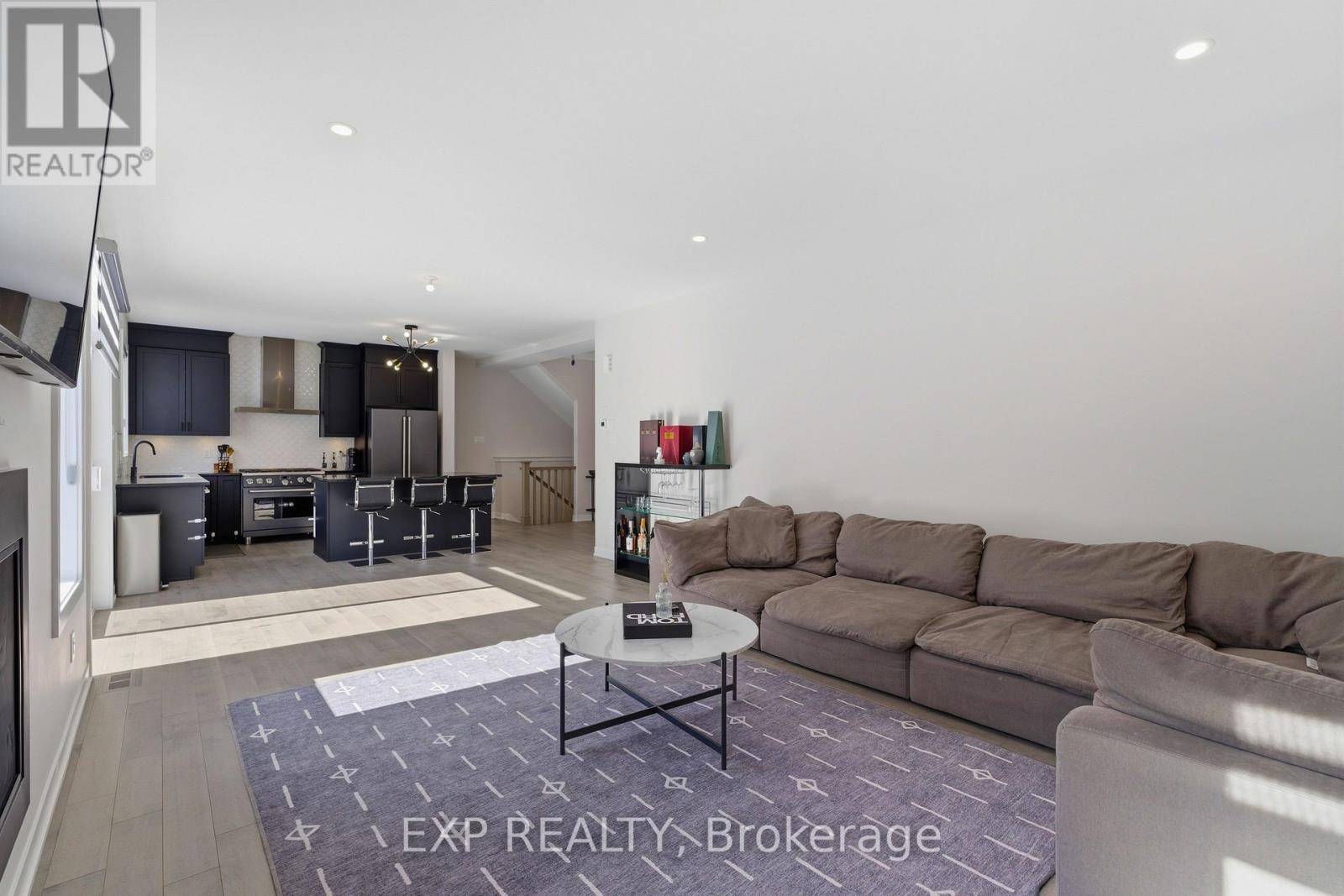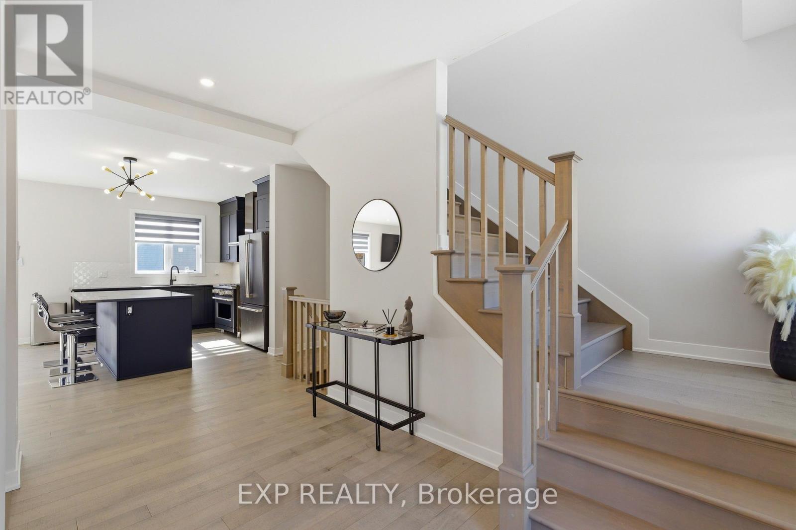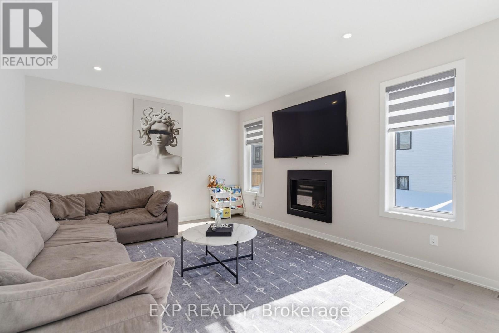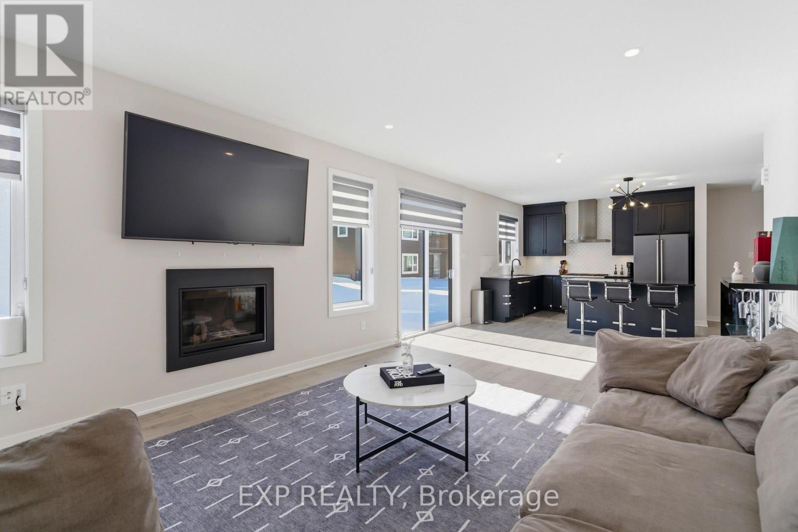 Welcome to 132 Rugosa Street, a Caivan-built home with 4 bedrooms and 3 bathrooms in one of Barrhaven's newest communities. From the moment you walk in, the quality of the finishes and the thoughtfulness of the layout make a strong first impression. The main level greets you with a welcoming foyer, a nearby powder room, and a mudroom with direct access to the double-car garage. The open-concept layout flows effortlessly from room to room, with hardwood floors underfoot and light pouring in from every angle. The kitchen is the true centrepiece, featuring floor-to-ceiling cabinetry in a striking dark finish, a scalloped tile backsplash, granite countertops, a large island with bar seating, and the full Cafe Line appliance package including a gas stove. The living room is where this home really shines, bathed in natural sunlight throughout the day and anchored by a sleek fireplace that adds warmth and ambiance year-round. Patio doors off the dining area connect you directly to the backyard, making indoor-outdoor living easy. Upstairs, the primary suite is a true retreat with a walk-in closet and a 4-piece ensuite featuring a double vanity and glass shower. Three additional spacious bedrooms and a full bathroom complete the upper level. The fully finished basement offers a large recreation room ready to adapt to your lifestyle, along with laundry and plenty of storage. Steps from parks, schools, walking trails, and everyday conveniences, this home puts you right in the heart of a thriving Barrhaven community. (id:64974)