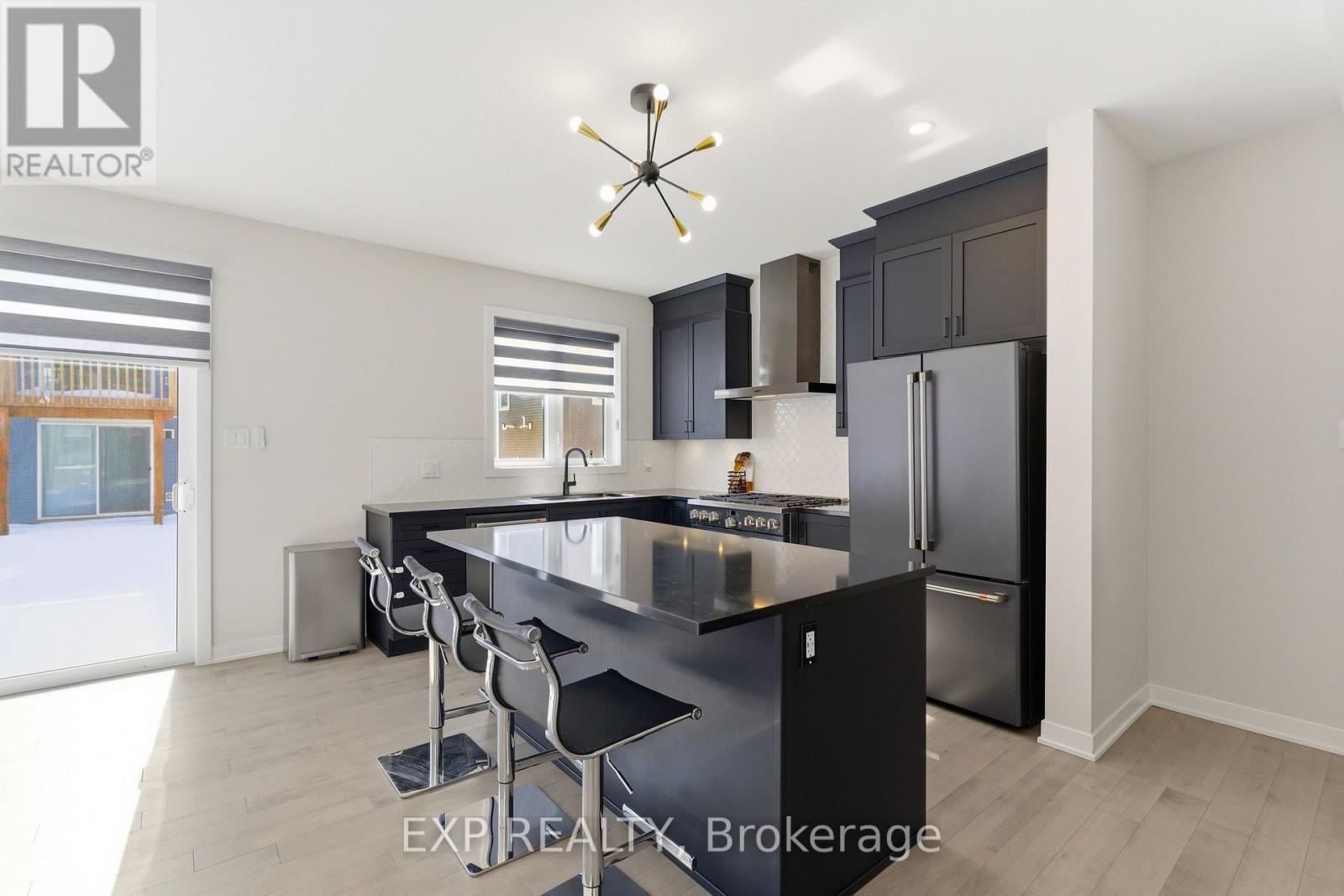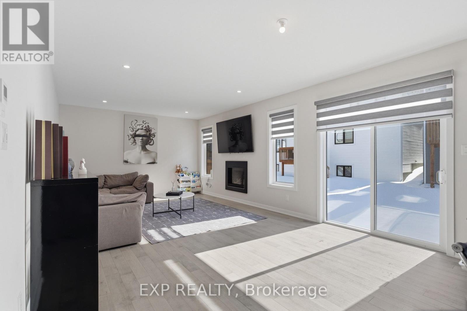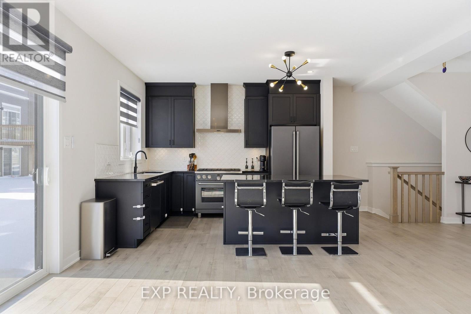 Welcome to 132 Rugosa Street, a Caivan-built home with 4 bedrooms and 3 bathrooms in one of Barrhaven's newest communities. From the moment you walk in, the quality of the finishes and the thoughtfulness of the layout make a strong first impression. The main level greets you with a welcoming foyer, a nearby powder room, and a mudroom with direct access to the double-car garage. The open-concept layout flows effortlessly from room to room, with hardwood floors underfoot and light pouring in from every angle. The kitchen is the true centrepiece, featuring floor-to-ceiling cabinetry in a striking dark finish, a scalloped tile backsplash, granite countertops, a large island with bar seating, and the full Cafe Line appliance package including a gas stove. The living room is where this home really shines, bathed in natural sunlight throughout the day and anchored by a sleek fireplace that adds warmth and ambiance year-round. Patio doors off the dining area connect you directly to the backyard, making indoor-outdoor living easy. Upstairs, the primary suite is a true retreat with a walk-in closet and a 4-piece ensuite featuring a double vanity and glass shower. Three additional spacious bedrooms and a full bathroom complete the upper level. The fully finished basement offers a large recreation room ready to adapt to your lifestyle, along with laundry and plenty of storage. Steps from parks, schools, walking trails, and everyday conveniences, this home puts you right in the heart of a thriving Barrhaven community. (id:64974)