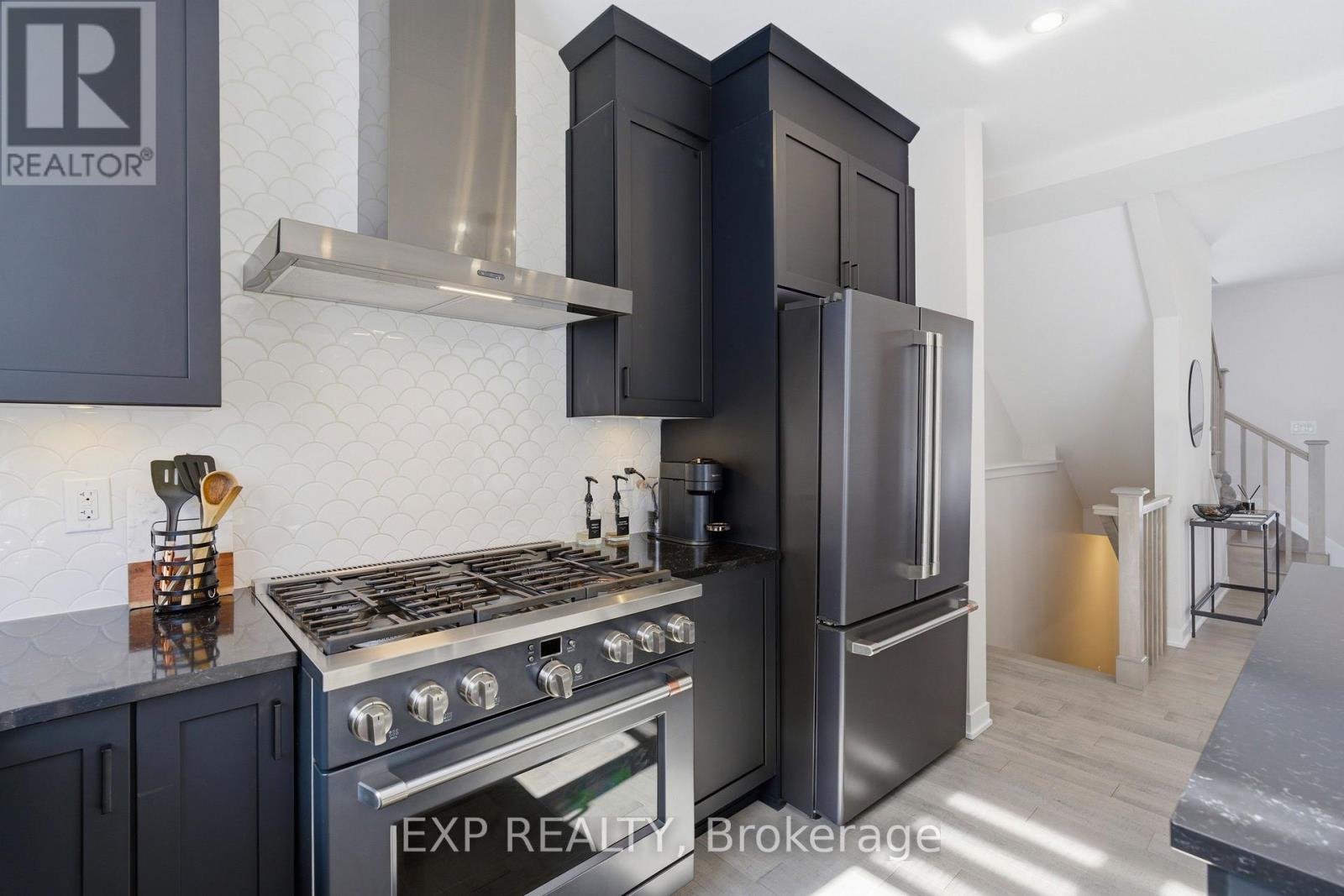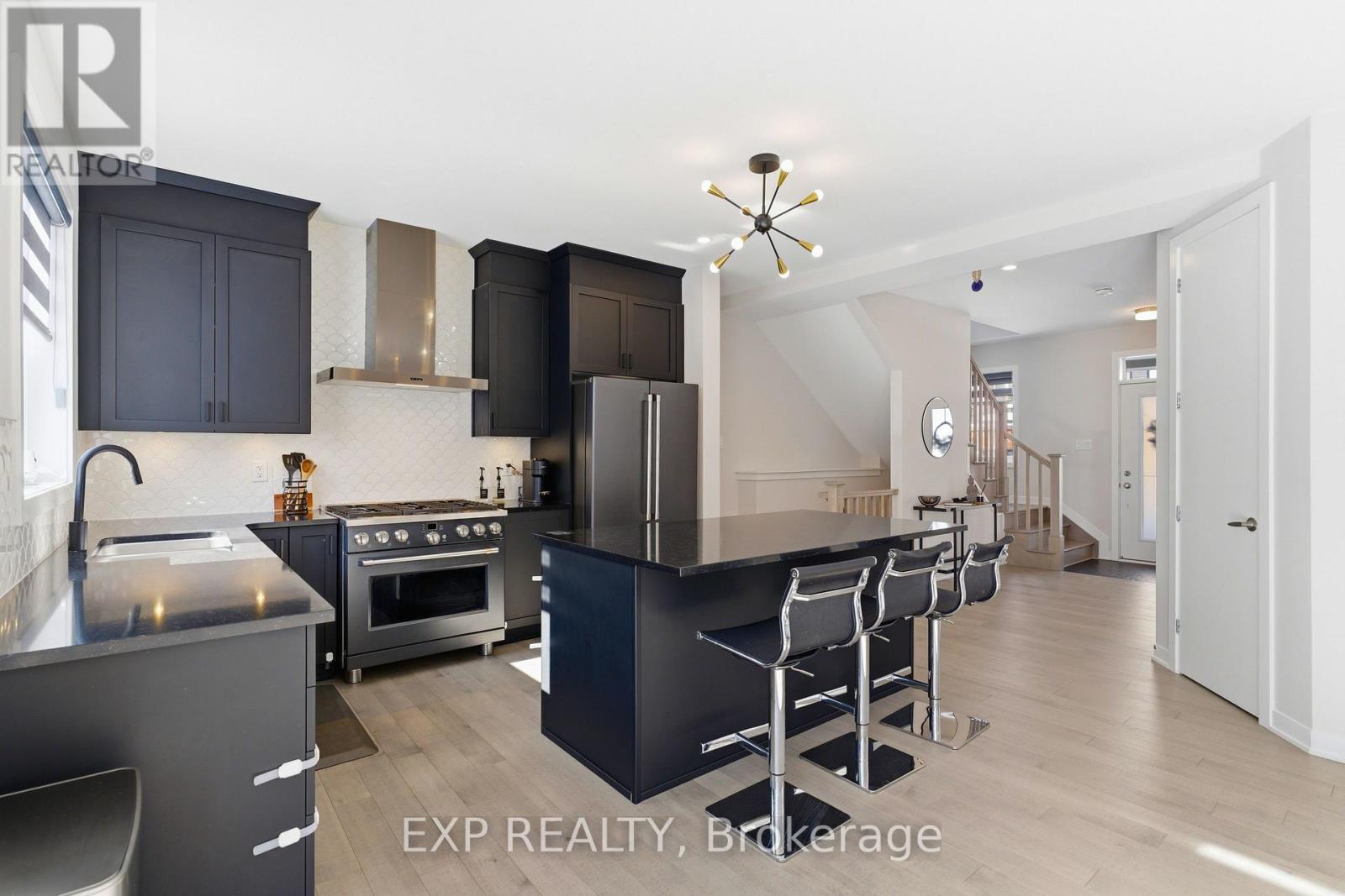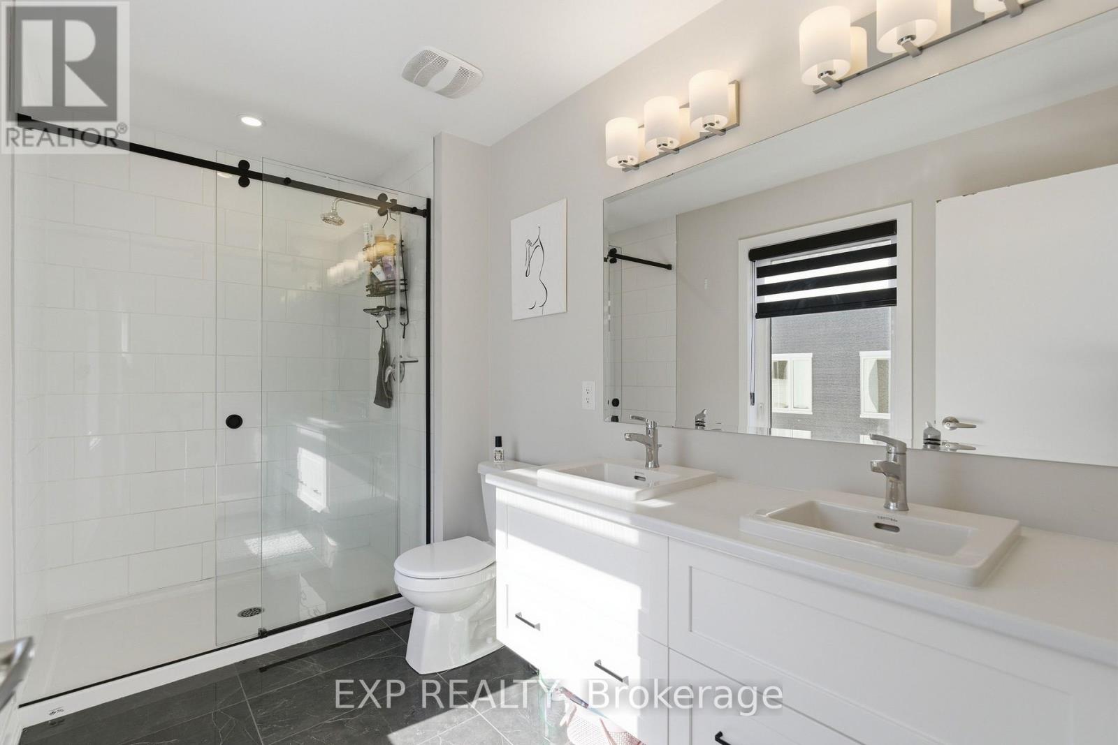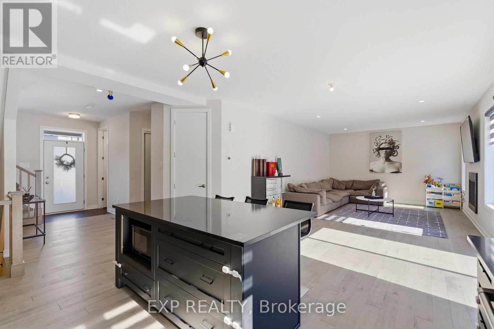 Welcome to 132 Rugosa Street, a Caivan-built home with 4 bedrooms and 3 bathrooms in one of Barrhaven's newest communities. From the moment you walk in, the quality of the finishes and the thoughtfulness of the layout make a strong first impression. The main level greets you with a welcoming foyer, a nearby powder room, and a mudroom with direct access to the double-car garage. The open-concept layout flows effortlessly from room to room, with hardwood floors underfoot and light pouring in from every angle. The kitchen is the true centrepiece, featuring floor-to-ceiling cabinetry in a striking dark finish, a scalloped tile backsplash, granite countertops, a large island with bar seating, and the full Cafe Line appliance package including a gas stove. The living room is where this home really shines, bathed in natural sunlight throughout the day and anchored by a sleek fireplace that adds warmth and ambiance year-round. Patio doors off the dining area connect you directly to the backyard, making indoor-outdoor living easy. Upstairs, the primary suite is a true retreat with a walk-in closet and a 4-piece ensuite featuring a double vanity and glass shower. Three additional spacious bedrooms and a full bathroom complete the upper level. The fully finished basement offers a large recreation room ready to adapt to your lifestyle, along with laundry and plenty of storage. Steps from parks, schools, walking trails, and everyday conveniences, this home puts you right in the heart of a thriving Barrhaven community. (id:64974)