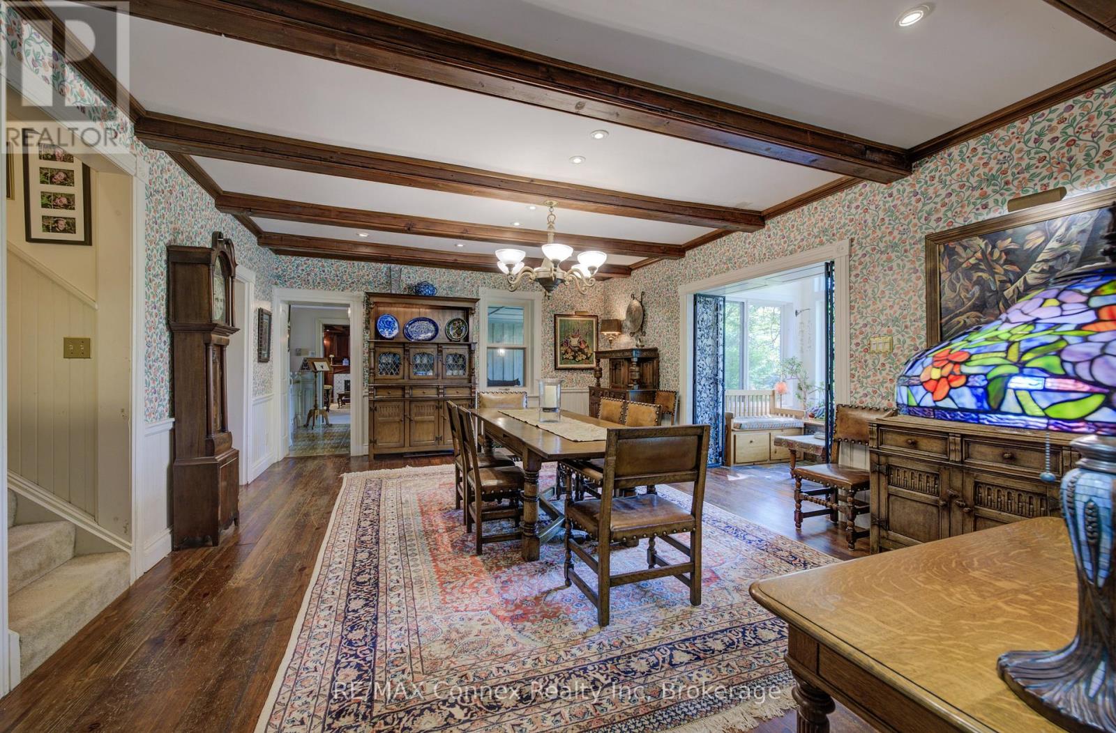 THIS BEAUTIFUL COUNTRY RETREAT AWAITS YOU AND YOUR FAMILY! Unique, enchanting and enriched with the natural beauty of the rolling landscape and an abundance of history, this country estate reveals itself in a series of wonderful surprises. The property is not only a picturesque 150 Acres with a 4867 square foot, two-storey beautifully proportioned home, it also features two mid-nineteenth-century log cabins, an in-ground pool with a private pool house, with sauna, pond, apple and pear orchard, barn with horse stalls and hay loft, large drive shed with extensive workshop and one of Ontario's few existing stone silos converted into an artist's studio with a deck overlooking raised gardens and a stunning view of the farm. You and your family will live on your own retreat. Join us for a walk down the majestic tree-lined laneway and open your eyes to the wonder that befalls you. The house has 4+1 bedrooms including a full guest suite with bed and sitting room with direct access to the garden and a 3pc bathroom. In the finished basement you will relax in the movie theatre and games room. The generous office space is full of light. The property encompasses aces of mature bush and managed reforestation, wetlands, walking trails, 40 acres of arable land and a seven-acre revenue producing solar panel installation. This historical family estate has been lovingly cared for by three families since 1896 when the settlers built a new house on the present site. Over the decades the house has been expanded and modernized, combining heritage with sustainability. (id:64974)