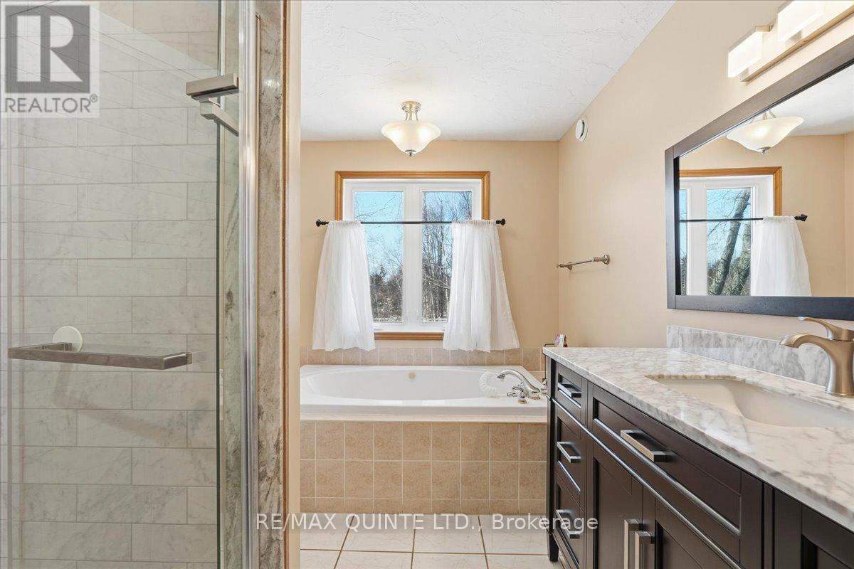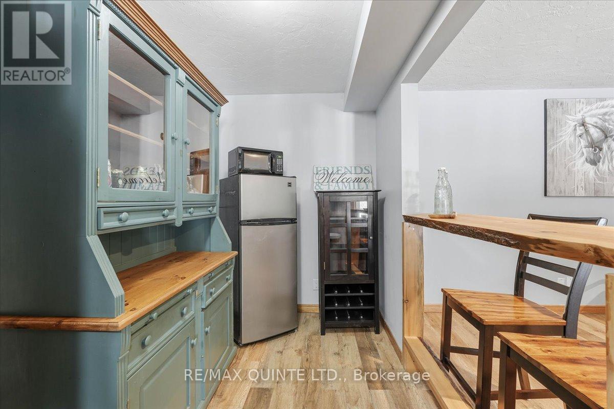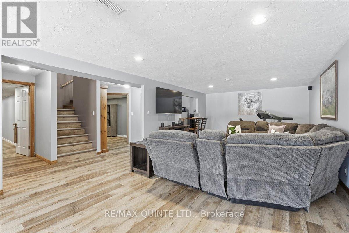 This well-maintained home features 3 bedrooms and 3 bathrooms, with a thoughtful layout ideal for families, professionals working from home, or buyers seeking multi-purpose living space. The main level includes a bright living room, formal dining room, and a welcoming country kitchen anchored by a wood-burning fireplace (not been used by current owners), creating a warm focal point for everyday living and entertaining. The primary bedroom serves as a private retreat, complete with a full ensuite bathroom featuring a soaker tub and separate shower. Additional bedrooms are generously sized and supported by well-appointed bathrooms. Laundry facilities are conveniently located on both the main level and the lower level, offering flexibility for busy or multi-generational households. The fully finished lower level with walkout significantly expands the living space. A spacious recreation room features a propane fireplace and a custom bar with live-edge detail, making it ideal for entertaining or relaxing with family and friends. This level also includes an exercise room, den, and home office, allowing the space to adapt easily to work-from-home needs, hobbies, or guest accommodation. Outside, the property continues to impress with stamped concrete walkways at both the front and back of the home, enhancing curb appeal and outdoor usability. The grounds features a peaceful pond, open green space, an above-ground pool for summer enjoyment, and four sheds providing excellent storage for tools, equipment, or recreational gear. Adding long-term value and efficiency, the home is equipped with owned solar panels installed in 2023, help offset hydro costs, along with an owned hot water tank (2022). All windows and doors were replaced throughout the home in 2023, offering improved energy efficiency, comfort, and peace of mind. Offering space, flexibility, and a tranquil rural setting, the home presents an exceptional opportunity to enjoy country living without compromise. (id:64974)