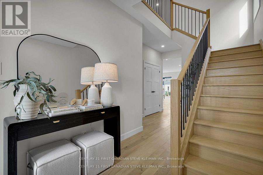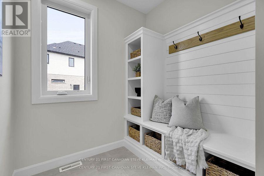 Auburn Homes proudly presents their reimagined 4 bed, 4 bath home located on a quiet street in Northwest London. This modern & timeless design built on a deep pie shaped lot hits every must-have for todays buyer. From the moment you arrive at 1327 Bush Hill, it's clear this is no ordinary builder home. The detailed driveway, light stone with dark mortar, Hardie front elevation, and stunning 8 foot front door with sidelights create a standout exterior. Inside, the foyer opens to a dramatic great room with 9 foot high flat ceilings and 7 foot wide, floor to ceiling black marble tile fireplace accent wall. The kitchen, crafted by Cardinal Cabinetry, features a quartz island with seating for four, deep Blanco sink, ceramic backsplash, valance lighting, & large pantry. A mudroom with bench, hooks, and space for baskets is perfect for families, especially with the new Northwest school about to open. Solid oak stairs lead to a second floor that impresses: 3 linen closets, a laundry room with tub & drain pan, 3 full baths, and 3 walk-in closets. The Jack & Jill bath includes a private water closet room, and all tiled showers have shampoo niches. The spacious primary suite boasts a walk-in closet with Free Slide shelving, a luxurious ensuite with double sinks, free standing soaker tub, walk-in tiled shower with marble base & even a power outlet by the toilet. A side entrance leads to a lower level with ultra high ceilings, 3 massive egress windows, and an insulated storage room ideal for a future legal suite or hobby area. A 200 amp electrical panel for future EV charger. Ceramic and hardwood flooring throughout (no carpet). So much special care was put into this house by all the Auburn staff and trades people. You will feel this the moment you walk in! (id:64974)
