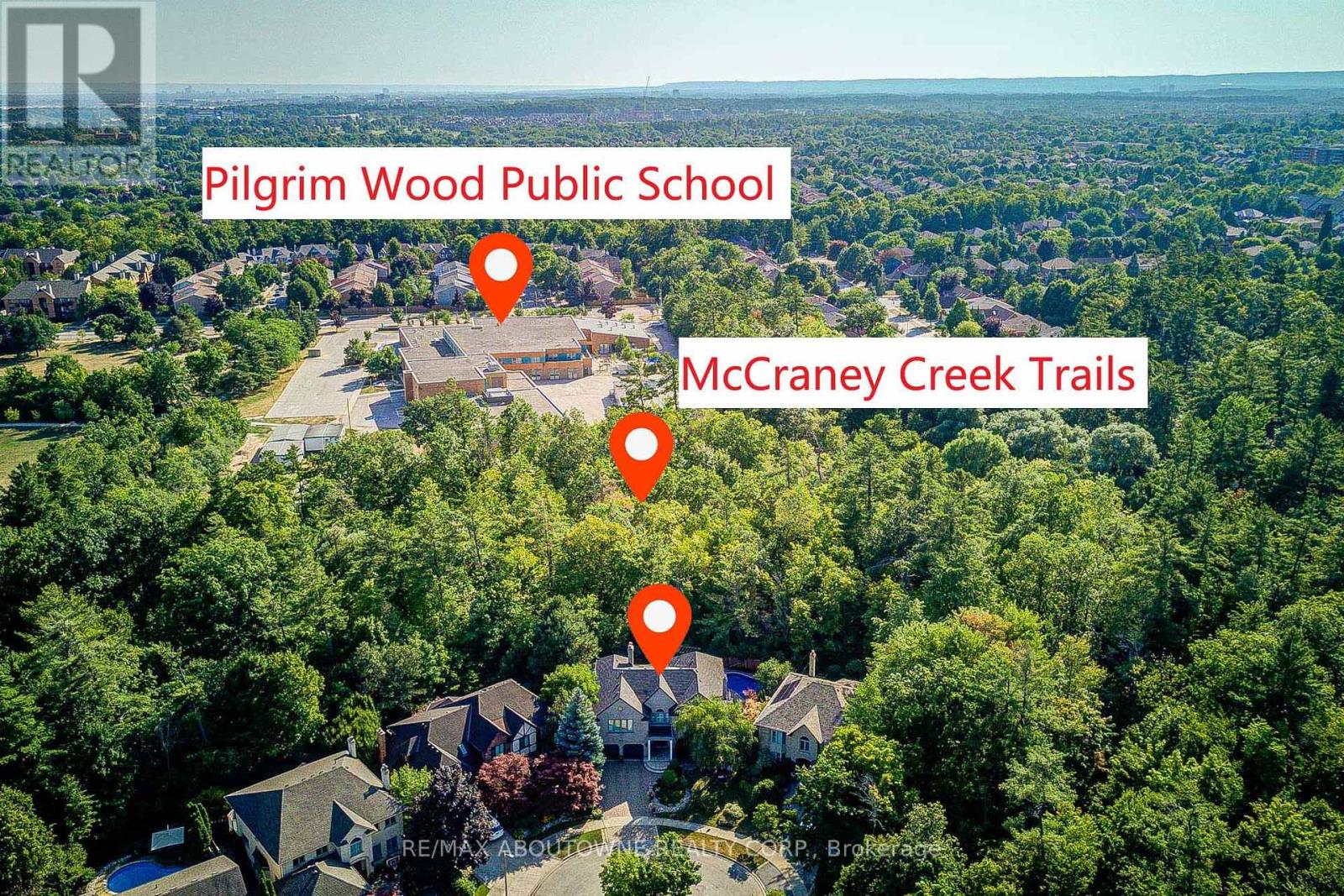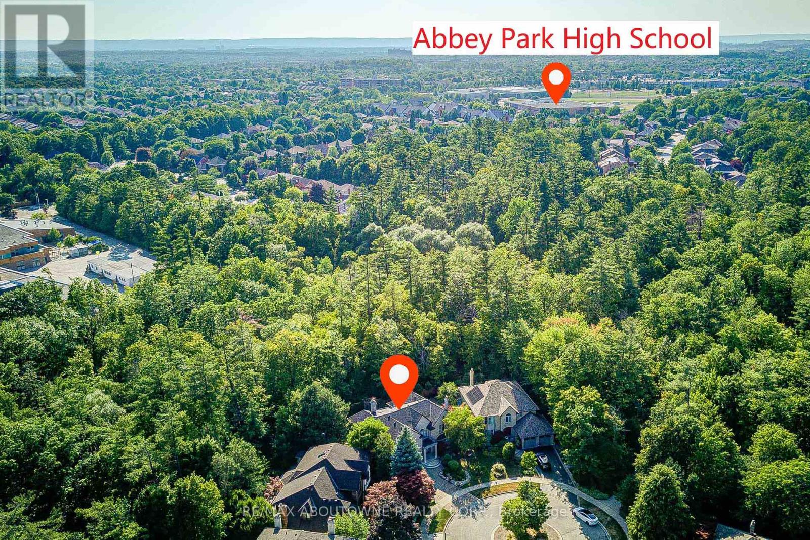 Enclaved in the woods, nestled on a ultra-premium ravine lot in an exclusive four-home cul-de-sac, this custom Dalzotto-built estate offers approximately 4,000 sf above-grade living space, highlighted by a full-stone exterior, professionally interlocked driveway, landscaped backyard, all within walking distance to top-rated schools such as Pilgrim Wood PS &Abbey Park HS. Designed for both entertaining and everyday living, the main floor features a bright foyer leading to formal living and dining rooms, while the impressive family room showcases 17-foot sloped ceilings, five skylights, a dramatic floor-to-ceiling gas fireplace that flows into a sun-filled solarium. The chef's kitchen, renovated in 2016, with custom cabinetry, large center island, premium appliances, including Sub-Zero 36" freezer ,36"fridge set, a Wolf 36" hood w/wall mount blower ,Wolf gas cooktop, a double oven, an Asko dishwasher, a Sharp under-counter microwave. The upper level offers four spacious bedrooms with floor-to-ceiling windows, including a primary suite with a walk-in closet w/ luxurious 5-piece ensuite, two bedrooms connected by a Jack&Jill 5-piece bathroom, a fourth bedroom with its own private 4-piece ensuite. The expansive lower level, with a separate entrance, adds exceptional versatility with a large recreation room, a games room, a fifth bedroom or den with a 4-piece bath, a cold room, ample storage. The private backyard retreat features over 135 feet of ravine frontage a saltwater heated pool with a new liner (21), a 1.5 HP pump (23), an updated sand filter (23), along with additional upgrades such as a new deck ,BBQ (16), backyard fence, two wood sheds (19), back & side triple-pane window replacements (21), owned hot water tank (25). Attic Insulation upgrade (21). An upgraded gas meter supports multiple features simultaneously, including two gas fireplaces, a gas stove, fire pit, BBQ, two furnaces, ensuring this exceptional home delivers luxury , outstanding performance. (id:64974)