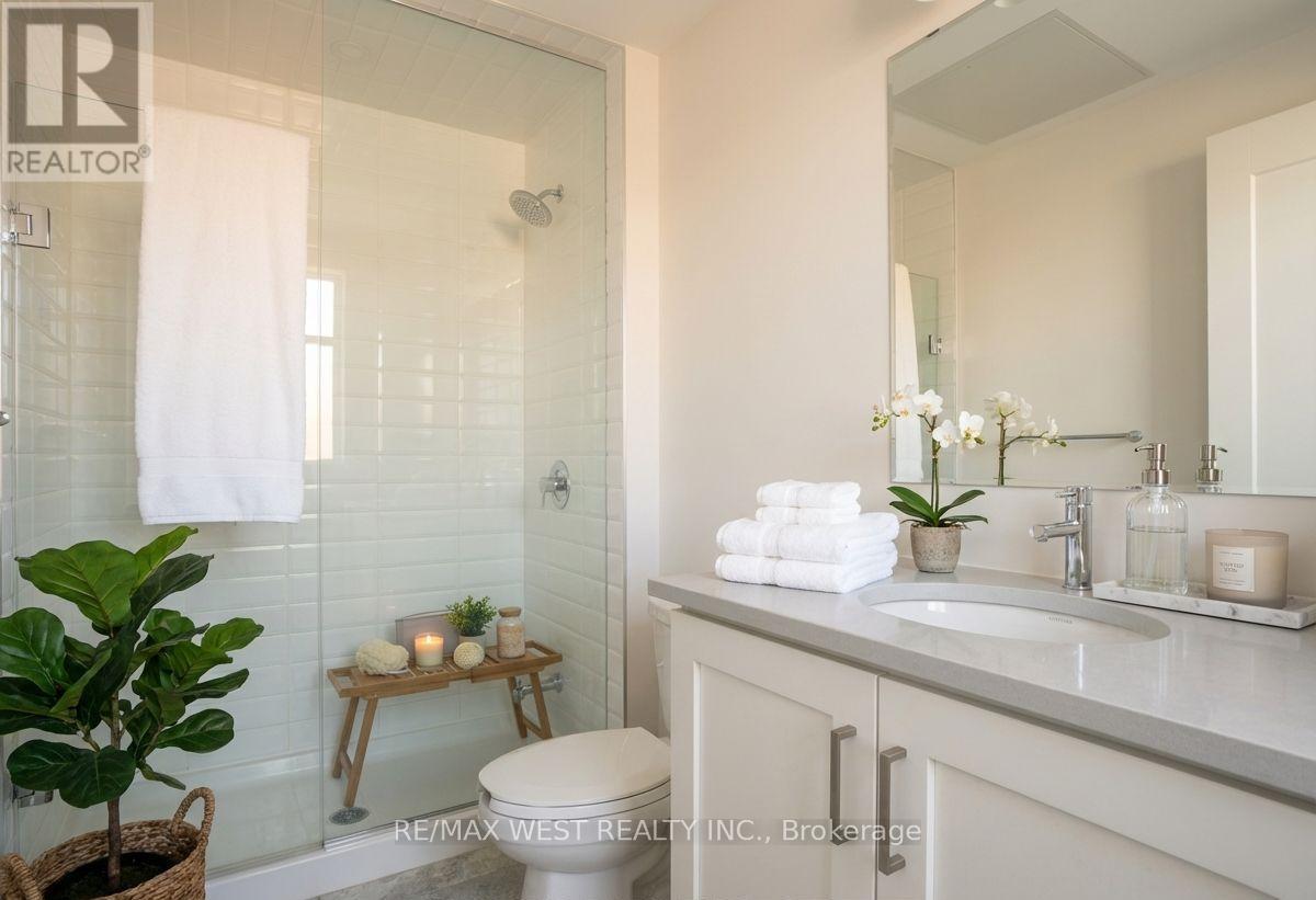 Experience modern comfort and style in this beautifully upgraded, light-filled condo unit located in Oakville's sought-after new district. This thoughtfully designed 1-bedroom + den suite features elegant hardwood floors, a sleek contemporary kitchen with quartz counters and premium stainless-steel appliances, and a tastefully upgraded bathroom for an elevated living experience. Enjoy a vibrant lifestyle with unmatched convenience-just steps to grocery stores, cafés, parks, transit, and minutes from the GO station, Sheridan College, restaurants, trails, and medical services. Offering approx. 596 sq ft of refined living space, this exceptional home blends luxury and practicality in one perfect package. Residents enjoy exceptional building amenities, including a fitness room, stylish party and meeting rooms, visitor parking, and more-offering convenience and lifestyle. (id:64974)