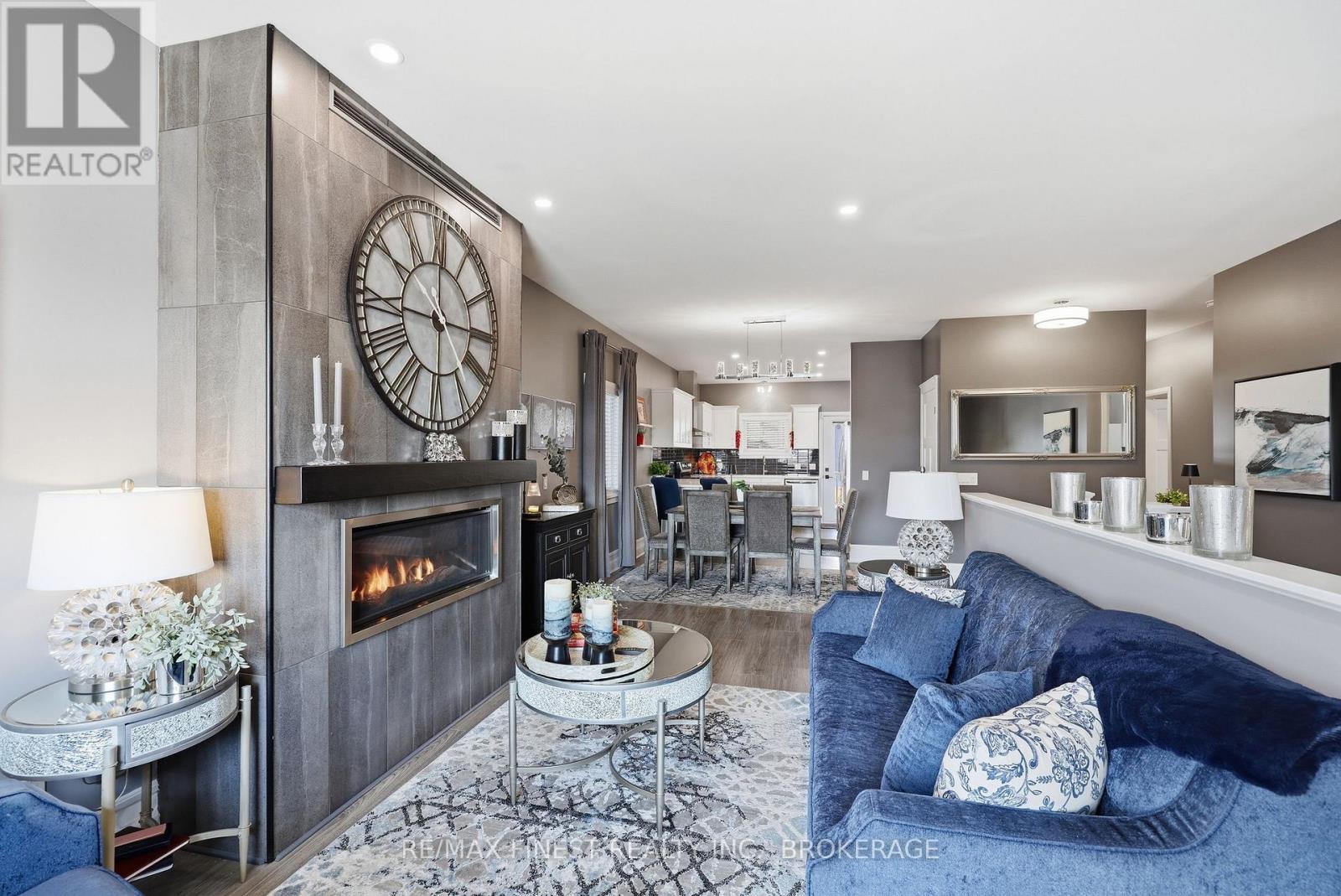 Welcome to this beautifully finished 2-bedroom raised bungalow in Odessa, perfectly situated just minutes from Kingston with quick access to the 401. Located in a fully established neighbourhood, this home combines thoughtful design with quality craftsmanship throughout. The main level offers a bright and inviting living space highlighted by a gas fireplace, convenient main-floor laundry, and all appliances included. The primary bedroom features a 3-piece ensuite and a striking custom stone hearth surrounding an electric fireplace, a true showcase of the owner's attention to detail and craftsmanship. The fully finished lower level impresses with 10-foot ceilings, a spacious recreation room, an additional bedroom, and a full bathroom, ideal for guests, extended family, or added living space. Outside, enjoy a professionally landscaped backyard complete with upper and lower decks, hot tub, gazebo, gas BBQ, solar lighting, and custom stonework, perfect for both entertaining and relaxing. Additional highlights include a garage loft workshop and abundant functional space throughout the property. Move-in ready with unique touches inside and out, this exceptional home offers comfort, style, and practicality in a sought-after location. A must-see property. (id:64974)