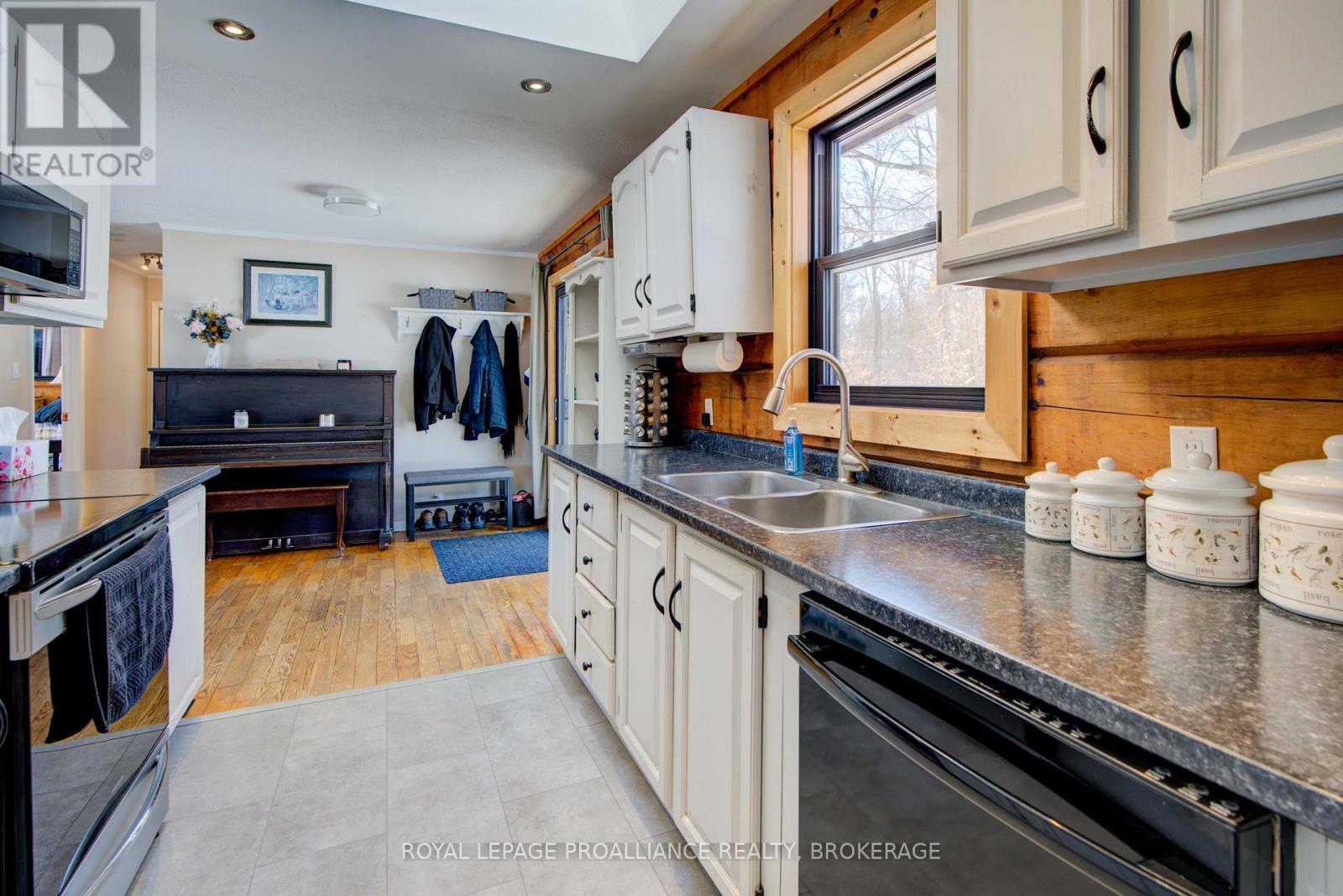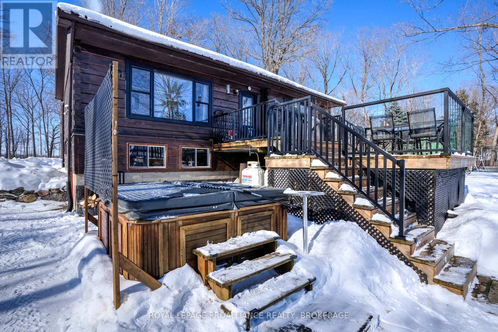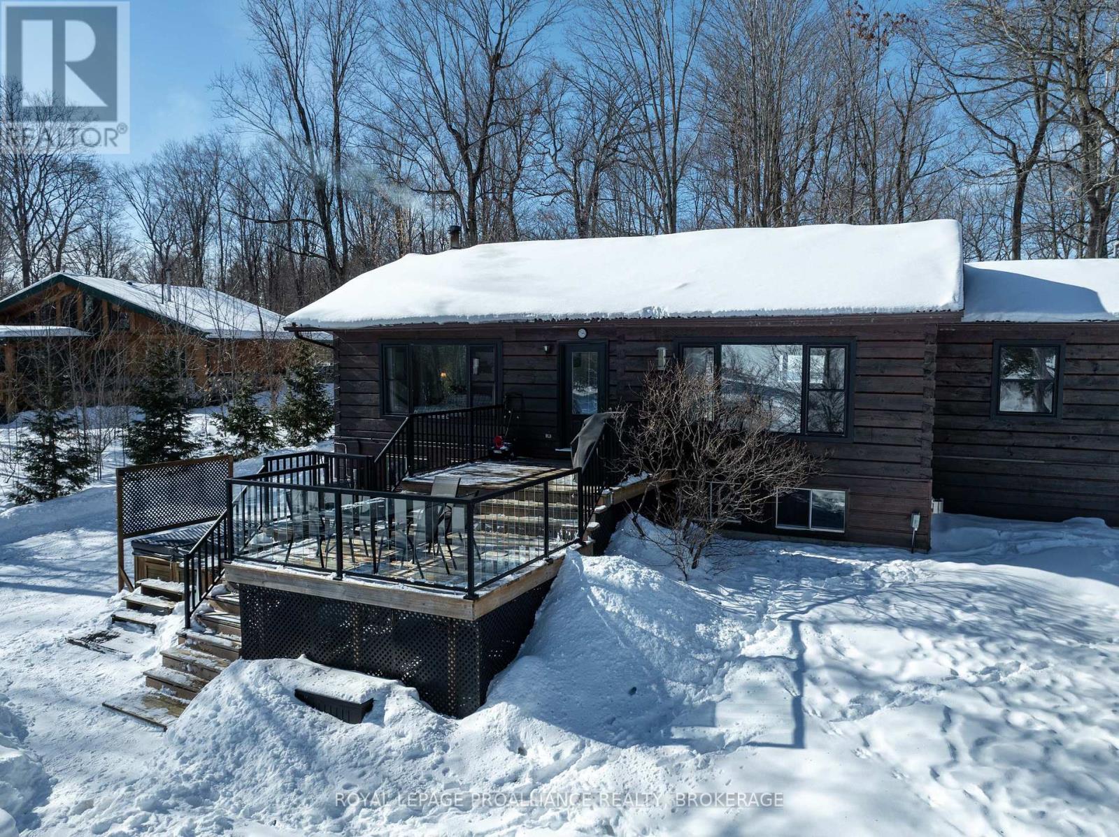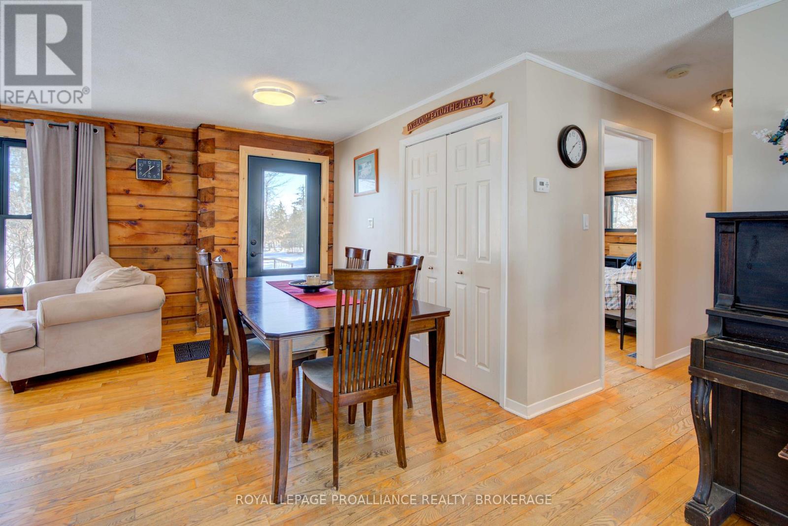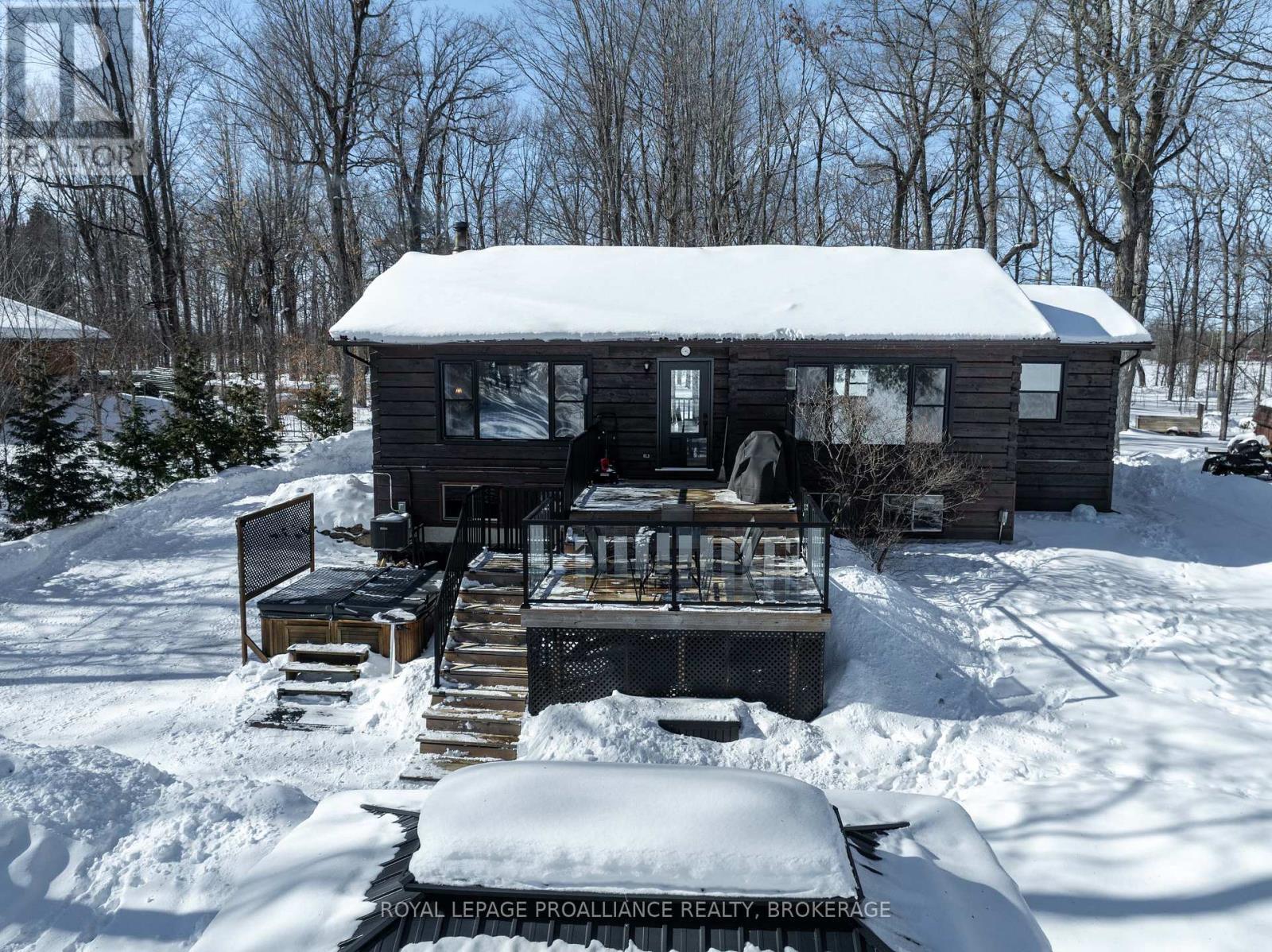 Welcome to this cozy retreat in the heart of lake country, set on an east-facing, over one-acre lot with mature trees and beautiful perennials, just 7 km south of the charming Village of Westport. Full of rustic character that only a true log home can offer, this property features three bedrooms on the main level and an additional bedroom on the lower level. Step inside to find a warm and inviting layout with the kitchen at the rear of the home and a bright living room at the front, perfectly positioned to capture stunning lake views. Down the hall, you'll find the bedrooms and a beautifully updated 4-piece bathroom (2024). Step outside onto the spacious lakeside deck - the perfect place to enjoy your morning coffee while watching the sunrise and listening to the sounds of nature. Just a few steps down, unwind in the hot tub for ultimate relaxation. Imagine spending warm summer days in the lakeside gazebo with a good book and a gentle breeze off Upper Rideau Lake. The walkout lower level offers a cozy recreation room complete with a woodstove, creating a warm and welcoming space to relax or entertain. This level also includes a bedroom, laundry room, and convenient walk-out access to the side yard. Many thoughtful updates have been completed over the years, including the kitchen and main bathroom (2024), dock (2025), furnace (2018), and more. Upper Rideau Lake, one of the larger lakes on the renowned Rideau Canal system, offers endless opportunities for boating and exploring. Spend the day on the water and dock at one of the ports on the Rideau System for dinner, shopping or entertainment. The waterfront features natural shoreline areas and sufficient depth off the aluminum dock for your boat. Located on picturesque Sugarhouse Lane, surrounded by majestic maple trees, this property embraces everything cottage country has to offer - boating, hiking, golfing, snowmobiling, ATV trails, and even the opportunity to tap your own maple trees for syrup. (id:64974)