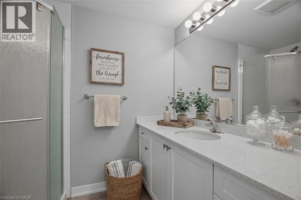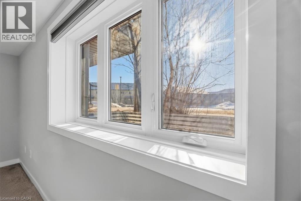 ***Location is unbeatable — directly across from The Boardwalk, one of Waterloo’s most vibrant shopping and lifestyle hubs. Enjoy convenient access to restaurants, entertainment, shopping, MOVATI Athletic, Walmart, and a major transit hub. Just a short distance to both universities, making this an ideal location for professionals, investors, and downsizers alike. The heart of the home is the LARGE MODERN KITCHEN, complete with GRANITE COUNTERTOPS, a SPACIOUS ENTERTAINING ISLAND, and plenty of workspace for cooking and gathering. The kitchen flows seamlessly into a generous DINING AREA and bright living space, enhanced by ELEGANT WAINSCOTING, stylish ACCENT WALLS, and MODERN LIGHT FIXTURES that add warmth and character throughout. PATIO SLIDERS lead to a private porch area, perfect for relaxing or enjoying your morning coffee. This unit features 2 BEDROOMS and 2 FULL BATHROOMS (primary ensuite!), both finished with GRANITE COUNTERTOPS, offering comfort and convenience for owners and guests alike. The bedrooms include LARGE EGRESS WINDOWS allowing for plenty of natural light. Additional highlights include FRESH PAINT THROUGHOUT, MODERN INTERIOR DOORS, IN-SUITE LAUNDRY, and a BONUS STORAGE CLOSET for added functionality. One PARKING SPACE is also included. A truly MOVE-IN READY HOME in a fantastic location close to parks, walking trails, shopping, and all amenities — perfect for professionals, downsizers, or anyone seeking stylish, low-maintenance living. Some photos virtually staged. (id:64974)
