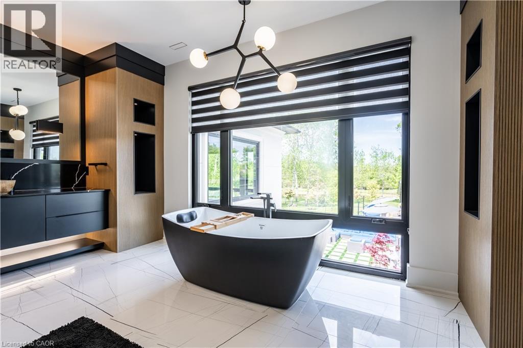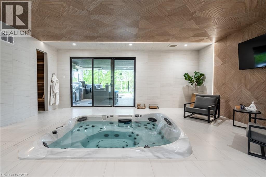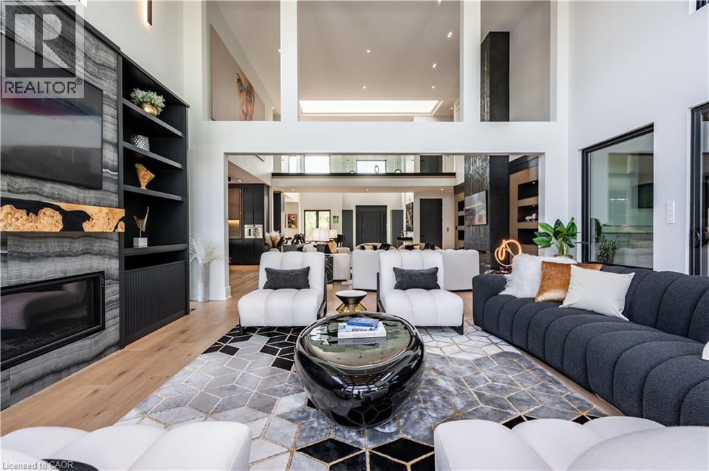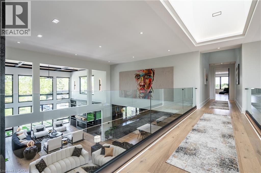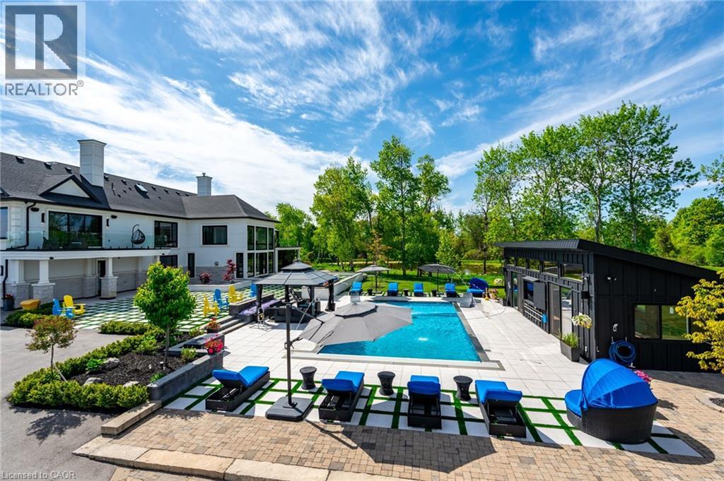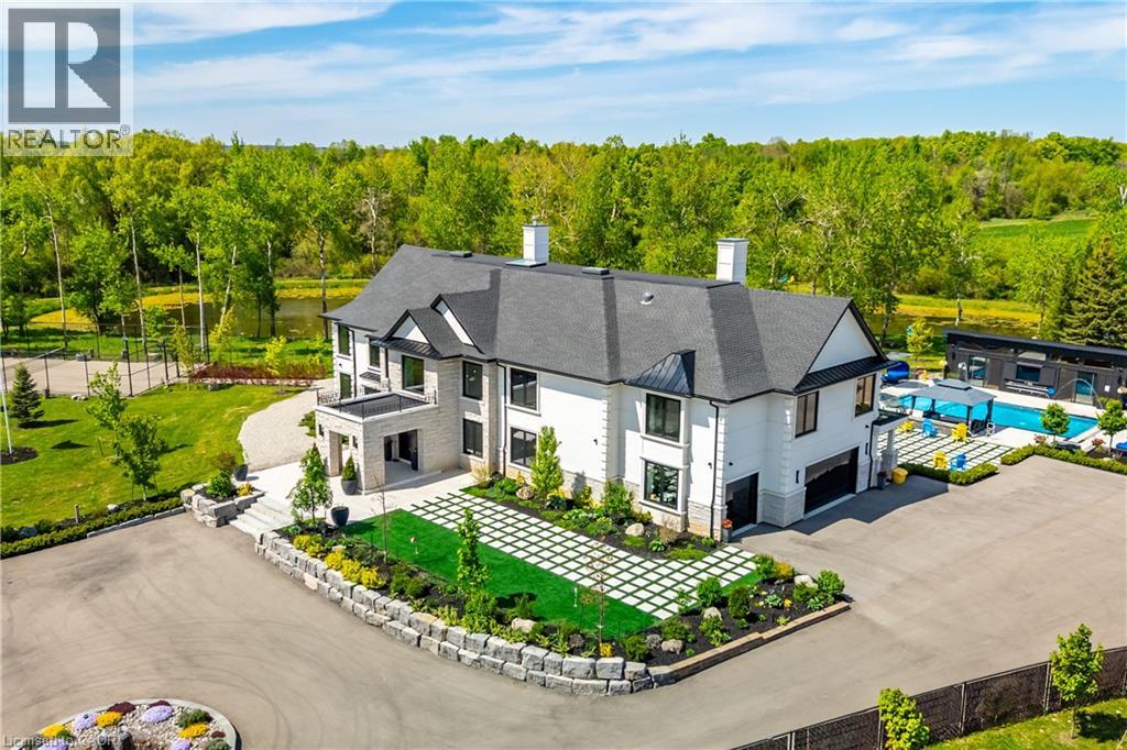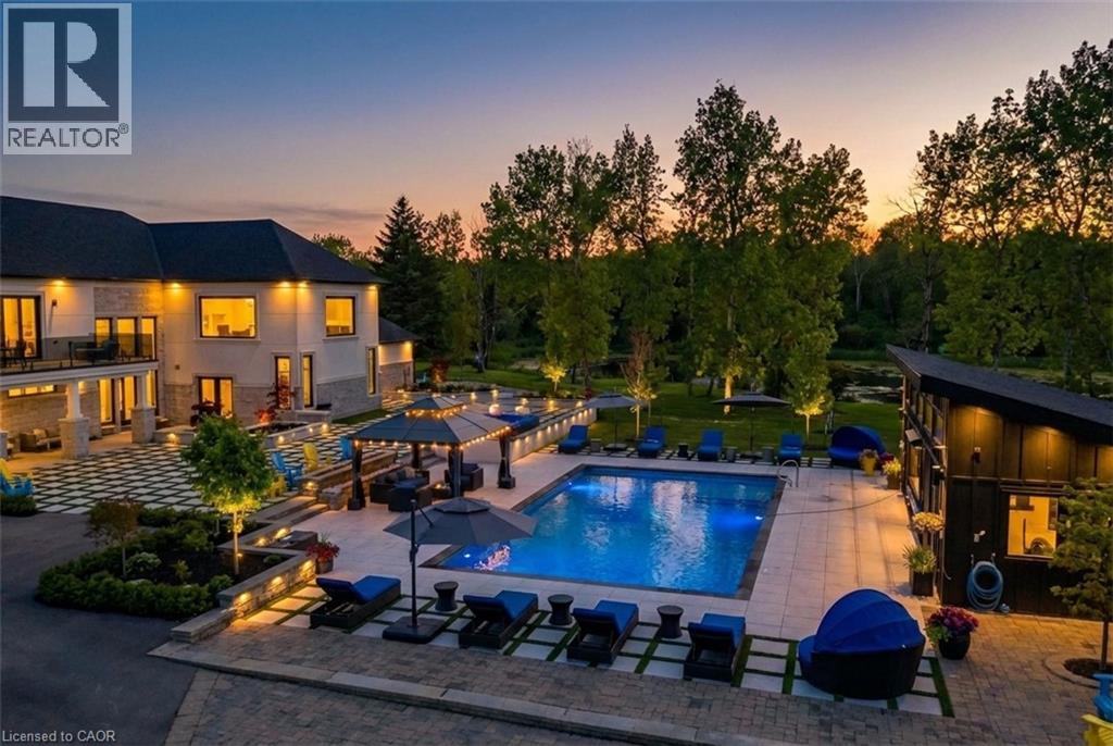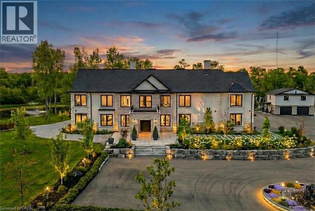 A truly rare offering. Set on 5.76 acres of private, tree-lined grounds, this custom-built estate presents an exceptional opportunity to own a secluded executive retreat minutes from the GTA. Thoughtfully designed and meticulously crafted by its original owners, the residence balances architectural presence with everyday livability, offering space, privacy, & quality that is difficult to replicate. A dramatic 22-foot foyer with a striking floating staircase creates a commanding first impression, while expansive floor-to-ceiling windows frame serene natural views & flood the home with sunshine. The layout is intentionally designed for both grand-scale entertaining and comfortable family living. At the centre of the home is a remarkable chef’s kitchen featuring dual oversized islands with seating for up to fourteen, premium appliances, & seamless flow to the sunroom & outdoor kitchen, ideal for hosting, gatherings, & year-round entertaining. This estate offers an extensive collection of resort-style amenities, including a private spa with a 10-person jacuzzi, steam room, & sauna, plus a fully equipped home theatre, gym, games area, & full bar. A private elevator enhances convenience across all levels. Above the garage, a three-bed guest suite provides flexibility for extended family, guests, or live-in support. The outdoor experience is equally impressive: heated saltwater pool, two fire pit areas, tennis & basketball courts, walking trails surrounding a tranquil private pond, & multiple outdoor spaces designed for relaxation and entertaining, all within complete privacy. The property is equipped with solar & geothermal systems, full smart-home integration, & dual septic systems, reflecting a commitment to sustainability, efficiency, & long-term ownership. A rare legacy estate offering privacy, land, & lifestyle without sacrificing proximity to major urban centres. An exceptional opportunity for the discerning buyer seeking space, discretion, & enduring value. (id:64974)