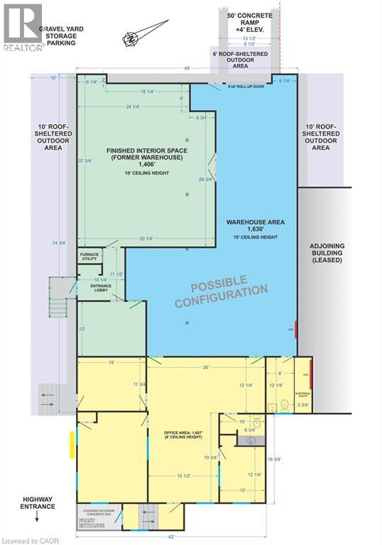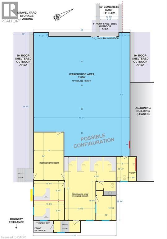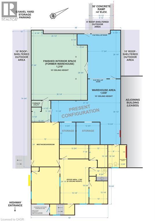 Excellent mix of warehouse and office space. Great busy highway exposure. Service commercial zoning. Lots of parking, and outdoor storage including a roof-sheltered outdoor area. Current configuration offers warehouse and storage space with 10' ceilings, and separate office space including reception area, boardroom and storage, plus covered front entry. Property available January 1st. $10.00 per sq ft plus TMI and utilities. (id:65010)
