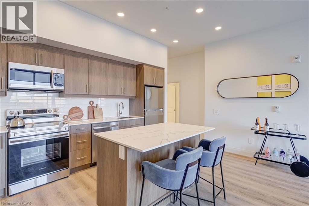 DISCOVER WEBER YARDS — Kitchener’s newest 15-storey condominium! Suite 111 is a bright, modern 2-bedroom + den showstopper offering an impressive 1,316 sq. ft. of beautifully designed living space, featuring a functional layout and elevated finishes throughout. The sleek open-concept kitchen, living, and dining area is made for entertaining, complete with warm designer cabinetry, stunning quartz countertops, a stylish ceramic tiled backsplash, and brand new full-size stainless steel appliances. Luxury vinyl plank flooring flows seamlessly throughout the suite, complemented by soaring ceilings and oversized windows that flood the space with natural light. Both bedrooms are exceptionally spacious, each featuring a walk-in closet and easily fitting a king-size bed. A separate laundry room adds even more convenience with plenty of extra storage. Centrally located in Waterloo Region, you’ll enjoy quick access to Highway 7/8 and the 401, making commuting fast and convenient. Shopping is effortless with Fairview Park Mall just minutes away, and public transit is highly accessible with nearby bus stops. Everyday essentials are within walking distance, including Zehrs, Dollarama, Fit4Less Gym (24/7), Shoppers Drug Mart, Tim Hortons, FreshCo, and The Beer Store. Luxury building amenities include 24/7 concierge, a fitness studio, shared workspace, dog wash station, and an impressive party room complete with a full kitchen, dining area, and lounge. Tenant pays utilities. Excellent credit is required and a full application must be submitted. Book your private tour today! (id:64974)