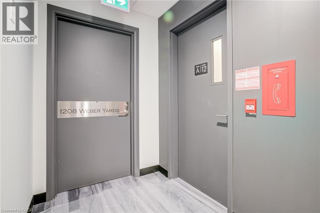 DISCOVER WEBER YARDS — Kitchener’s newest 15-storey condominium, centrally located in Waterloo Region with quick access to Highways 7/8 and 401. Underground parking and storage locker included. Brand-new 1- and 2-bedroom suites available with flexible spring move-in. Minutes to Fairview Park Mall, public transit, and everyday essentials including Zehrs, Dollarama, Shoppers Drug Mart, Tim Hortons, Bulk Barn, FreshCo, and more. Amenities include 24/7 concierge, lobby lounge, fitness studio, co-working space, dog wash station, party room with kitchen, dining area, and lounge, plus underground parking, storage lockers, and bike storage. Suite 1208: Corner 1-bedroom + den with 931 sq. ft. Bright suite with large windows and plenty of natural light. Modern kitchen with warm-tone cabinetry, quartz countertops, ceramic tile backsplash, island with breakfast bar, and new full-size stainless steel appliances. Spacious private balcony. Den works well as an office or small bedroom. Complete with in-suite laundry and custom window coverings/roller shades. Excellent credit and full application required. Tenant responsible for utilities. Book your showing today to explore all available options. (id:64974)