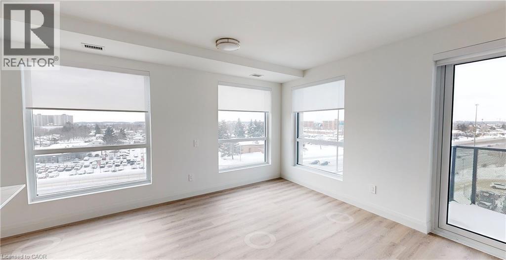 DISCOVER WEBER YARDS — Kitchener’s newest 15-storey condominium, centrally located in Waterloo Region with quick access to Highways 7/8 and 401. Underground parking and storage locker included. Brand-new 1- and 2-bedroom suites available with flexible spring move-in. Minutes to Fairview Park Mall, public transit, and everyday essentials including Zehrs, Dollarama, Shoppers Drug Mart, Tim Hortons, Bulk Barn, FreshCo, and more. Amenities include 24/7 concierge, lobby lounge, fitness studio, co-working space, dog wash station, party room with kitchen, dining area, and lounge, plus underground parking, storage lockers, and bike storage. Suite 707: Bright corner unit with 1034 sq. ft. of interior living space, offering abundant natural light, warm-toned kitchen cabinetry, quartz countertops, ceramic tile backsplash, and an island with breakfast bar. Features brand new stainless steel appliances, in-suite laundry, custom window coverings/roller shades, and a private balcony for additional outdoor living space. Excellent credit and full application required. Tenant responsible for utilities. Book your showing today to explore all available options. (id:64974)