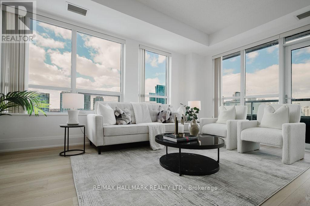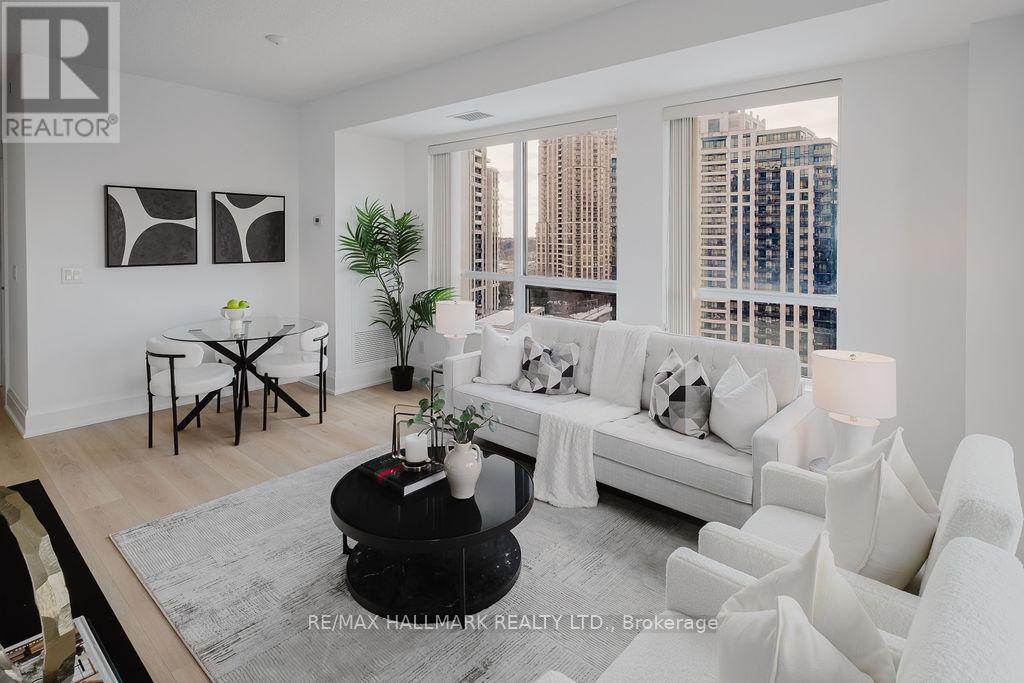 Welcome to Aristo at Avonshire by Tridel, an exceptional residence in the prestigious Harrison Garden community of North York. This stunning renovated top to bottom 2-bedroom suite offers breathtaking park views and refined finishes throughout - a rare opportunity to experience sophisticated urban living. Featuring 2 spacious bedroom, the suite is enhanced by soaring 9-foot ceilings, brand new laminate flooring throughout (except washrooms), and expansive windows that flood the space with natural light. Walkouts from the living room lead to a generous size private balcony. New modern chef's kitchen is appointed with mostly brand new stainless steel appliances, upgraded cabinetry, and elegant countertops, combining functionality with refined design. The suite also includes a full size stacked front-load washer and dryer, one parking space and one locker. Residents of Aristo enjoy access to an array of world-class amenities, including fully equipped fitness centre, sauna, party and entertainment rooms, meeting room, BBQ terrace and theatre. Ideally situated just minutes from Hwy 401, 404, 400, subway station, restaurants, shops, and schools, this residence also offers easy access to downtown Toronto. This is a rare opportunity to own or live in one of North York's most desirable communities - combining luxury, comfort, and convenience in one exceptional address. (id:64974)