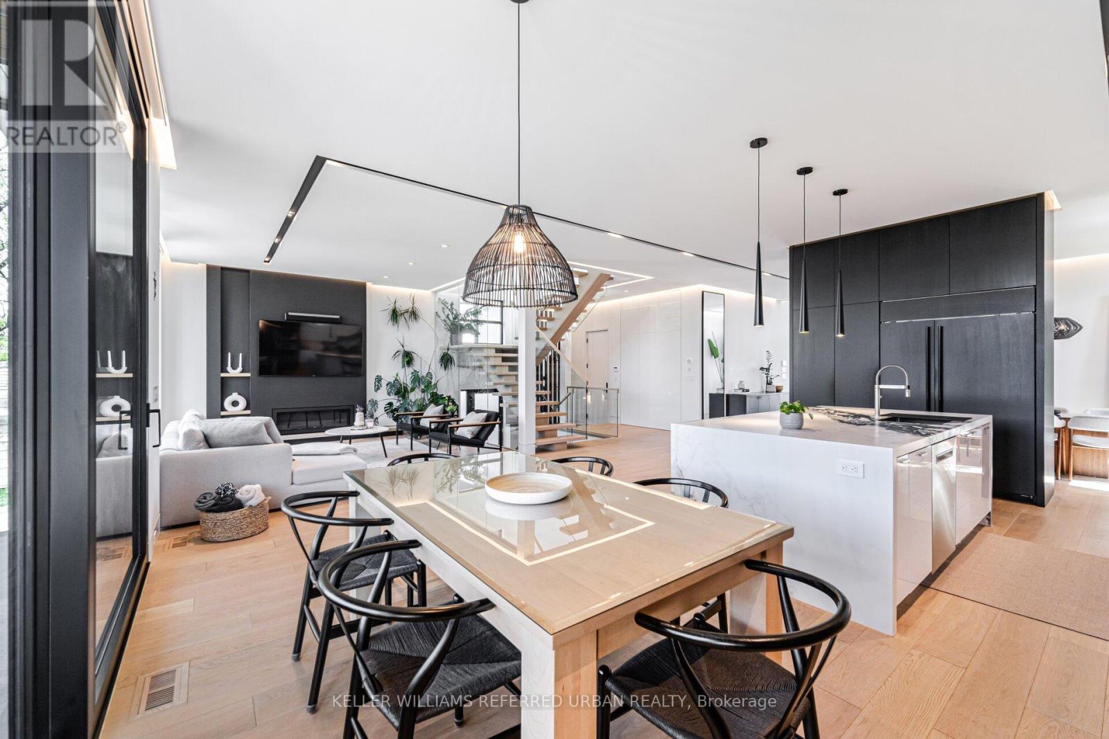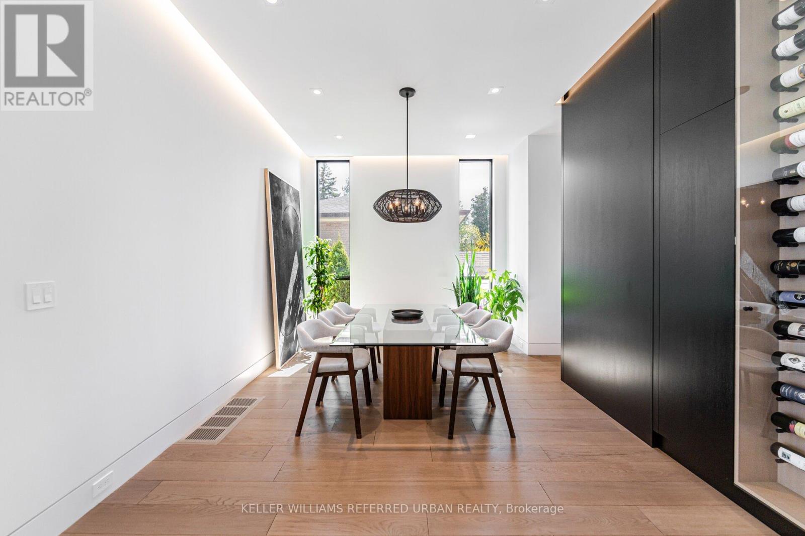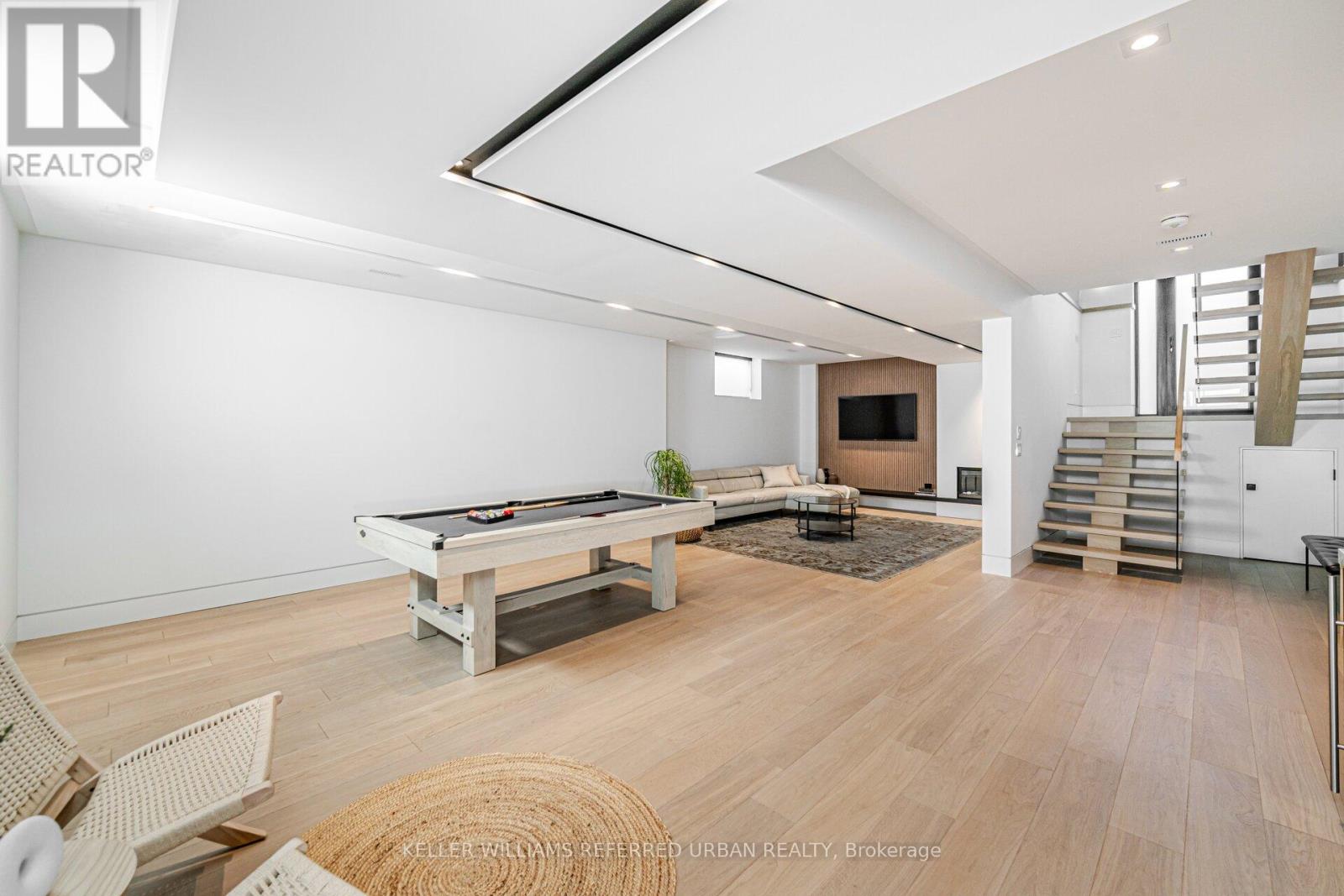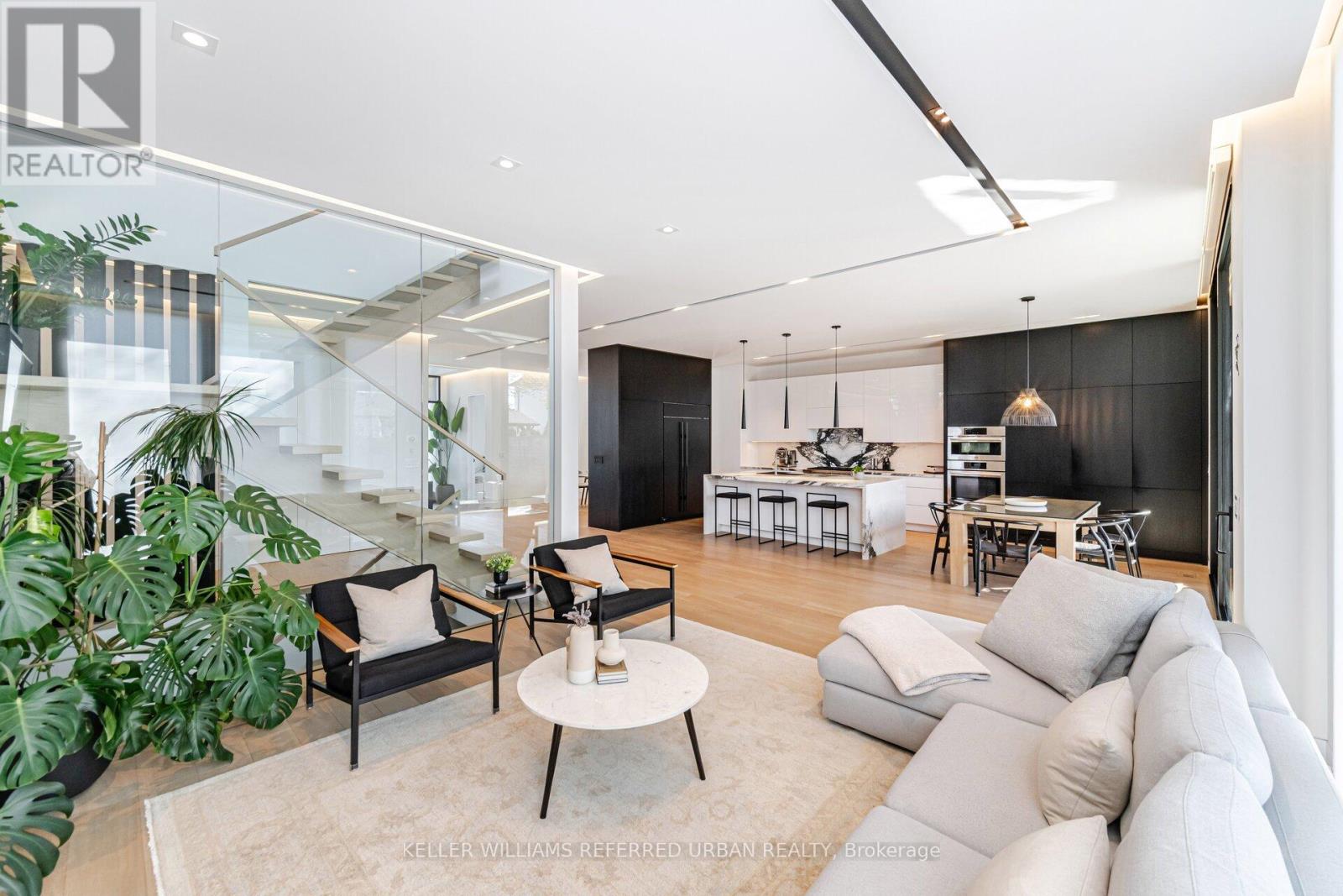 Step into the pinnacle of modern elegance with this stunning custom-built executive home, nestled in the highly sought-after heart of Southeast Oakville. Offering a seamless blend of sophisticated design, premium finishes, and an abundance of natural light. From the moment you enter, you'll be captivated by the open and intelligently configured interior layout, soaring 10' floating ceilings with cove lighting, and floor-to-ceiling windows that fill the space with sunlight. Every detail has been meticulously crafted, from the European white oak engineered hardwood floors to the 8' solid core doors, flush trim, and hidden anchored glass railings that exude contemporary sophistication. The heart of the home is the designer kitchen, featuring an oversized island, 10' cabinetry, and top-of-the-line appliances, perfect for entertaining or enjoying quiet family moments. The main floor flows effortlessly into a spacious living area, complete with a gas fireplace, built-in surround sound, and motorized blinds for ultimate convenience. Upstairs, natural light continues to shine through skylights and oversized windows, illuminating four generously sized bedrooms, each with its own ensuite bathroom and custom-built walk-in closets. The bespoke laundry room, with floor-to-ceiling cabinetry, adds a touch of practicality and style. The finished basement offers additional living space, ideal for a home theatre, gym, or playroom, while the mono-stringer staircase and glass railings create a striking visual statement from top to bottom. This home is more than just a residence; it's a lifestyle. With its unparalleled craftsmanship, high-end finishes, and prime location in one of Oakville's most desirable neighbourhoods, this property is truly Luxury at Its Finest. Don't miss the opportunity to experience the intricate quality and modern elegance of this exceptional home. (id:64974)