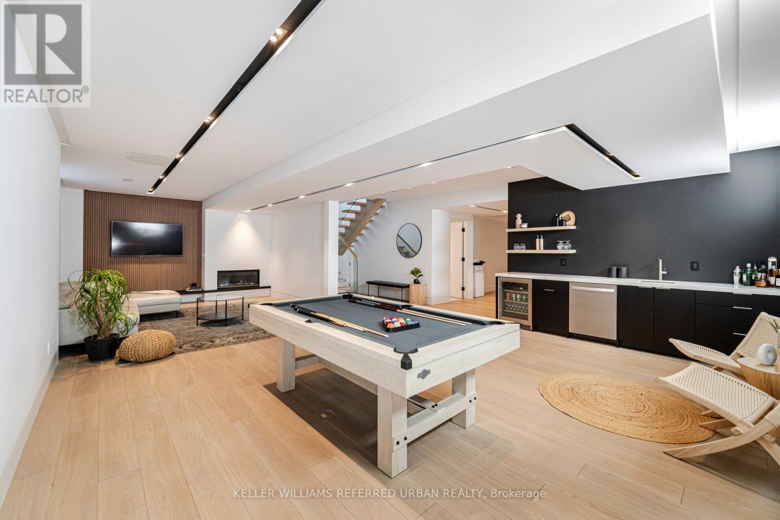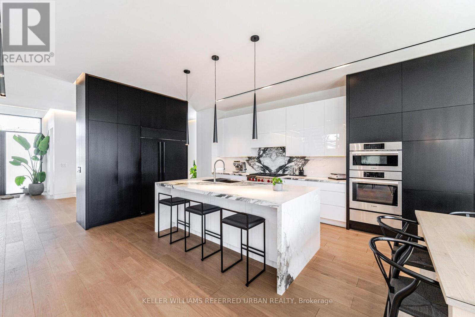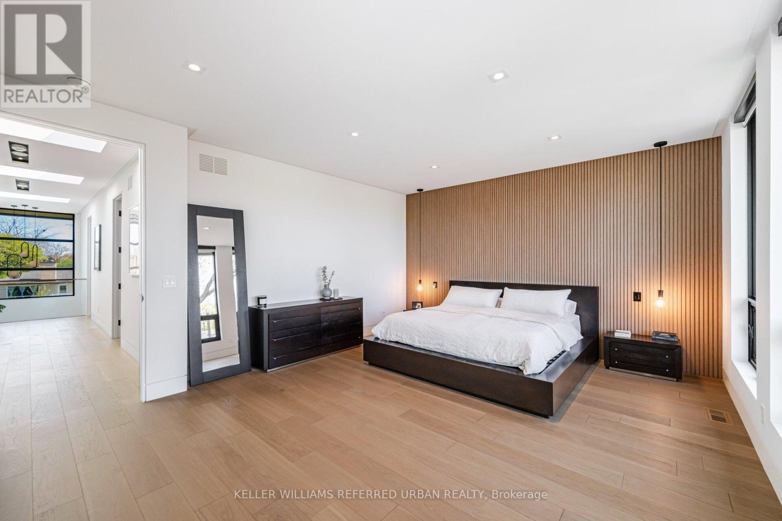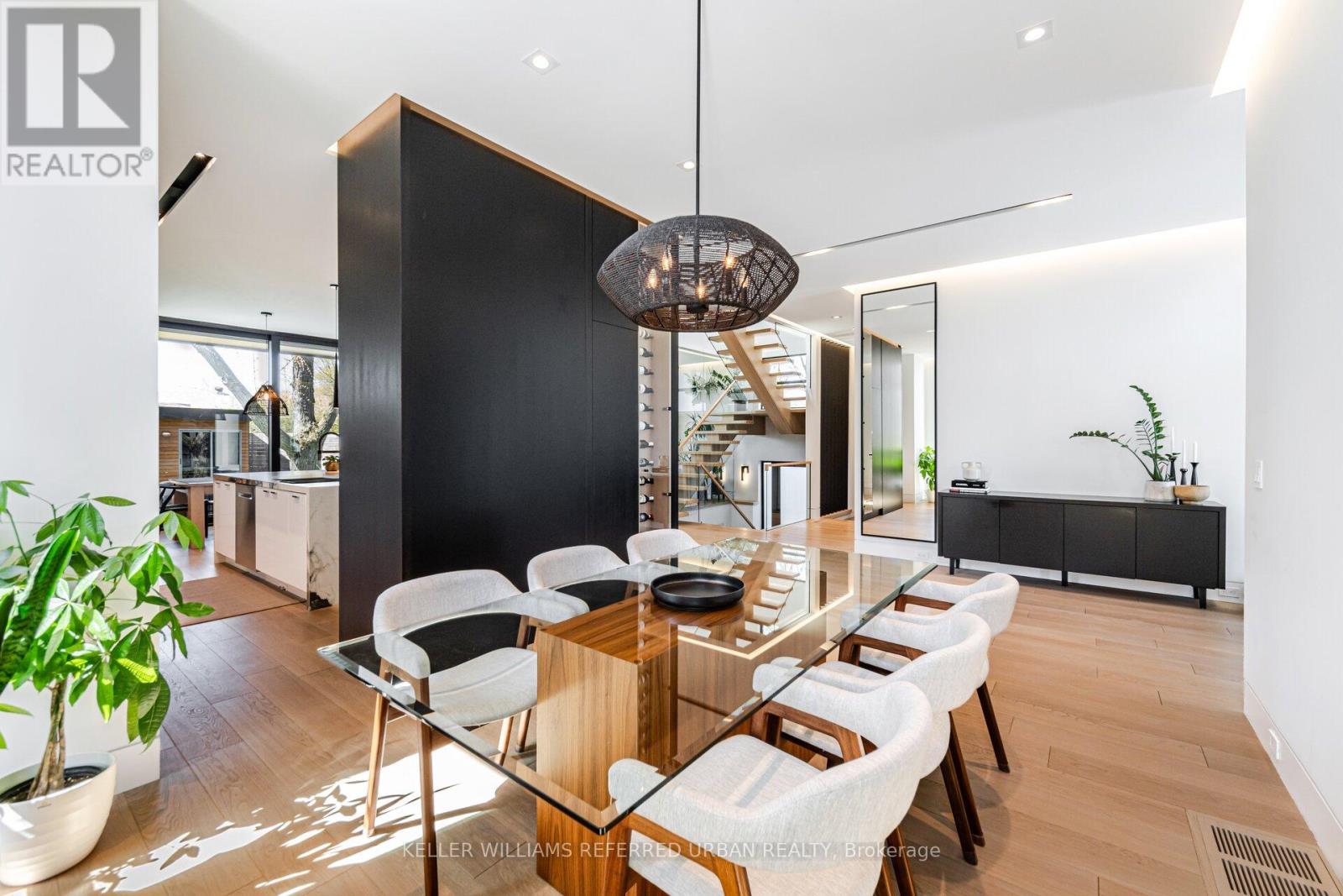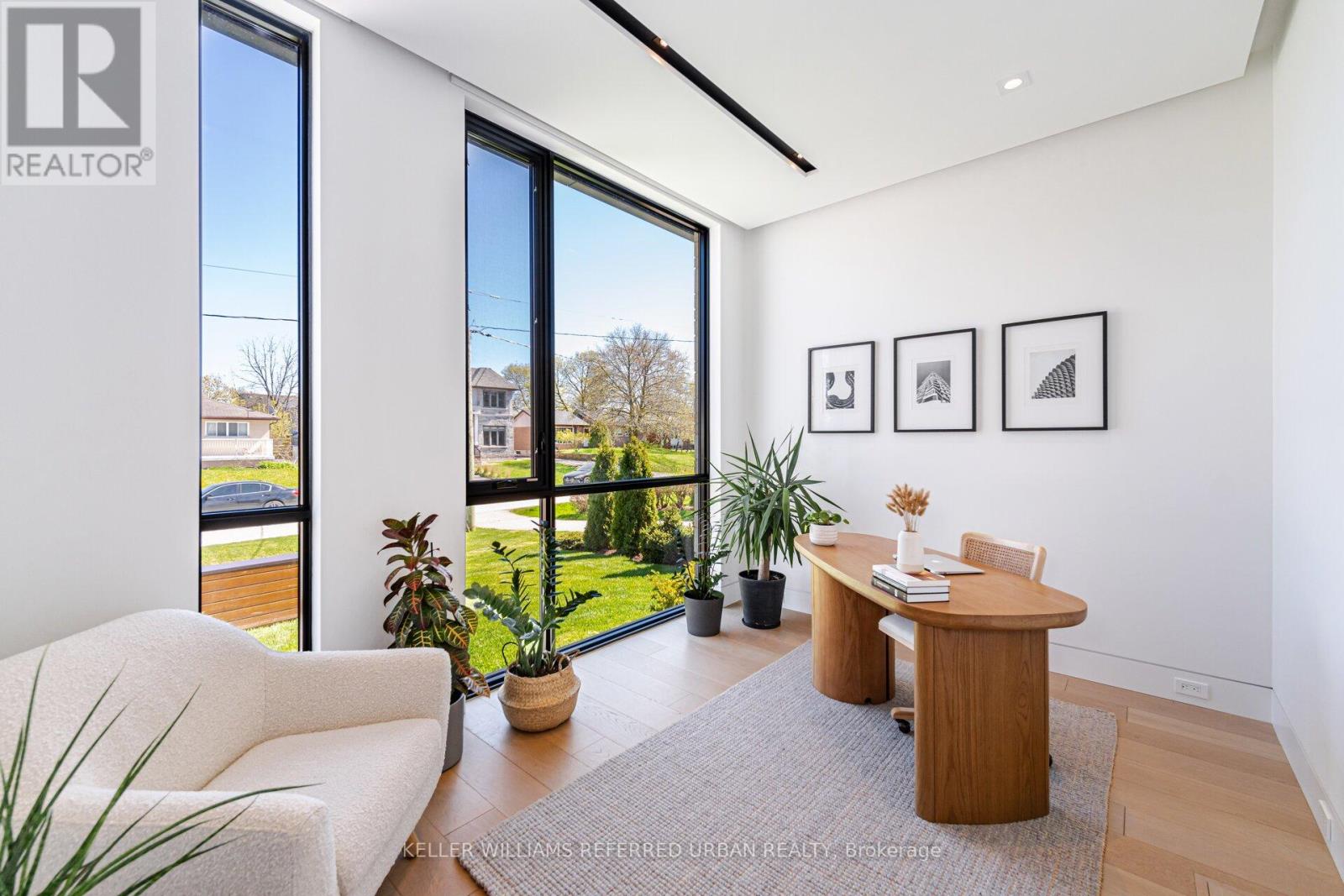 Step into the pinnacle of modern elegance with this stunning custom-built executive home, nestled in the highly sought-after heart of Southeast Oakville. Offering a seamless blend of sophisticated design, premium finishes, and an abundance of natural light. From the moment you enter, you'll be captivated by the open and intelligently configured interior layout, soaring 10' floating ceilings with cove lighting, and floor-to-ceiling windows that fill the space with sunlight. Every detail has been meticulously crafted, from the European white oak engineered hardwood floors to the 8' solid core doors, flush trim, and hidden anchored glass railings that exude contemporary sophistication. The heart of the home is the designer kitchen, featuring an oversized island, 10' cabinetry, and top-of-the-line appliances, perfect for entertaining or enjoying quiet family moments. The main floor flows effortlessly into a spacious living area, complete with a gas fireplace, built-in surround sound, and motorized blinds for ultimate convenience. Upstairs, natural light continues to shine through skylights and oversized windows, illuminating four generously sized bedrooms, each with its own ensuite bathroom and custom-built walk-in closets. The bespoke laundry room, with floor-to-ceiling cabinetry, adds a touch of practicality and style. The finished basement offers additional living space, ideal for a home theatre, gym, or playroom, while the mono-stringer staircase and glass railings create a striking visual statement from top to bottom. This home is more than just a residence; it's a lifestyle. With its unparalleled craftsmanship, high-end finishes, and prime location in one of Oakville's most desirable neighbourhoods, this property is truly Luxury at Its Finest. Don't miss the opportunity to experience the intricate quality and modern elegance of this exceptional home. (id:64974)
