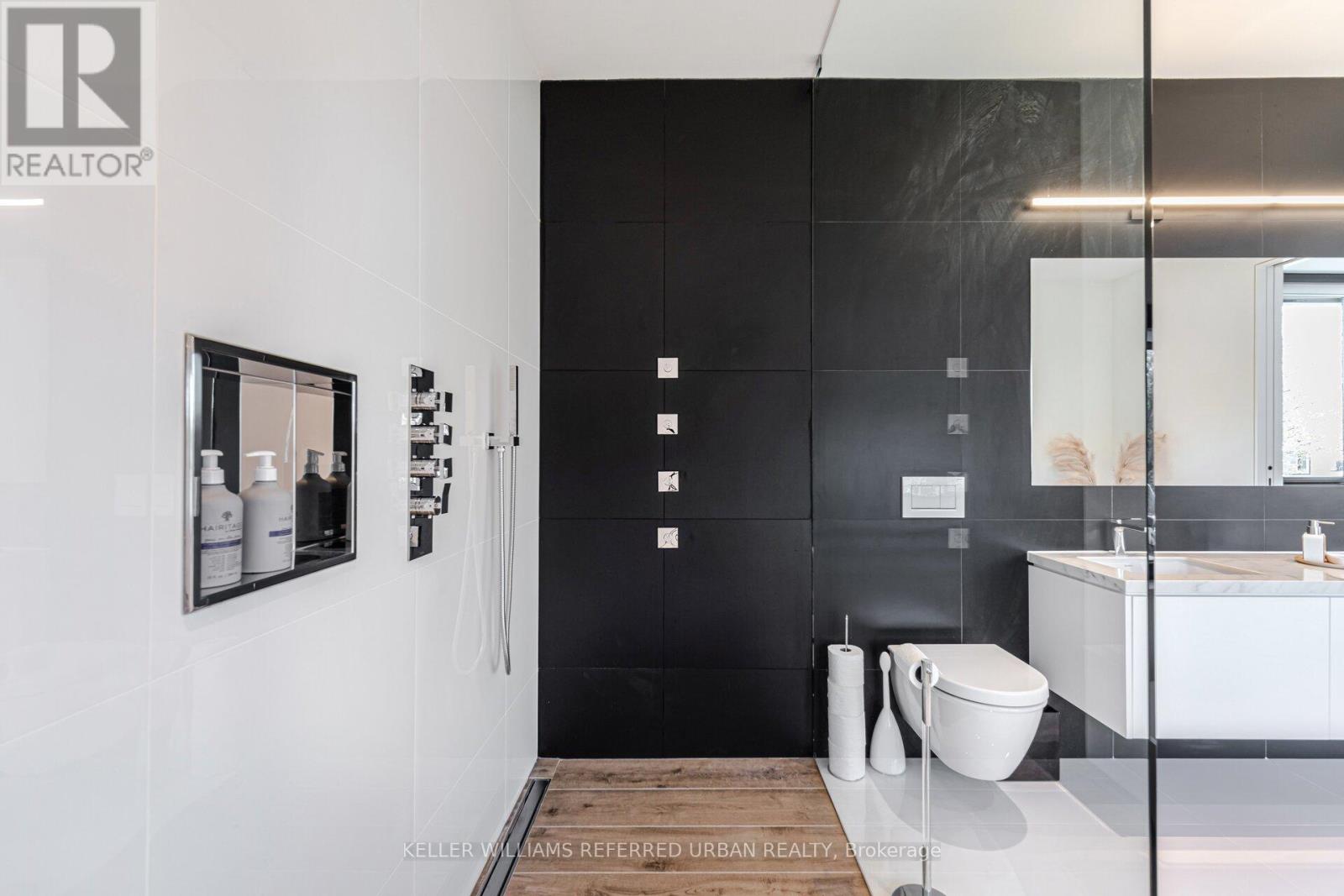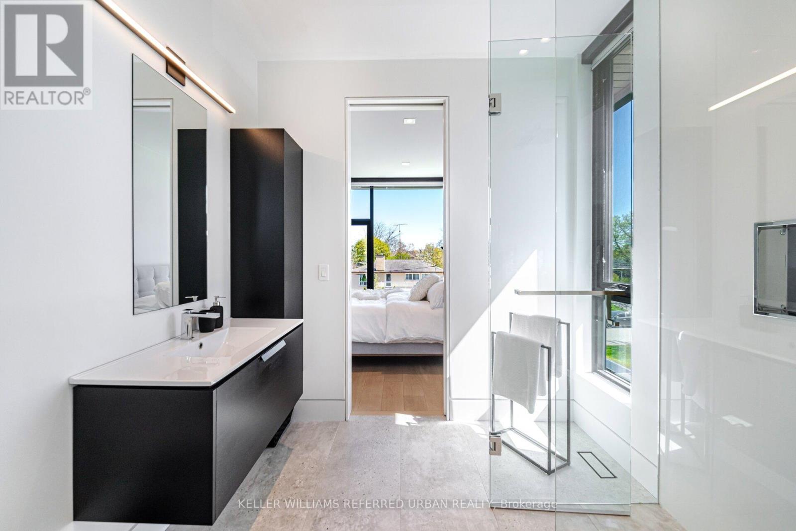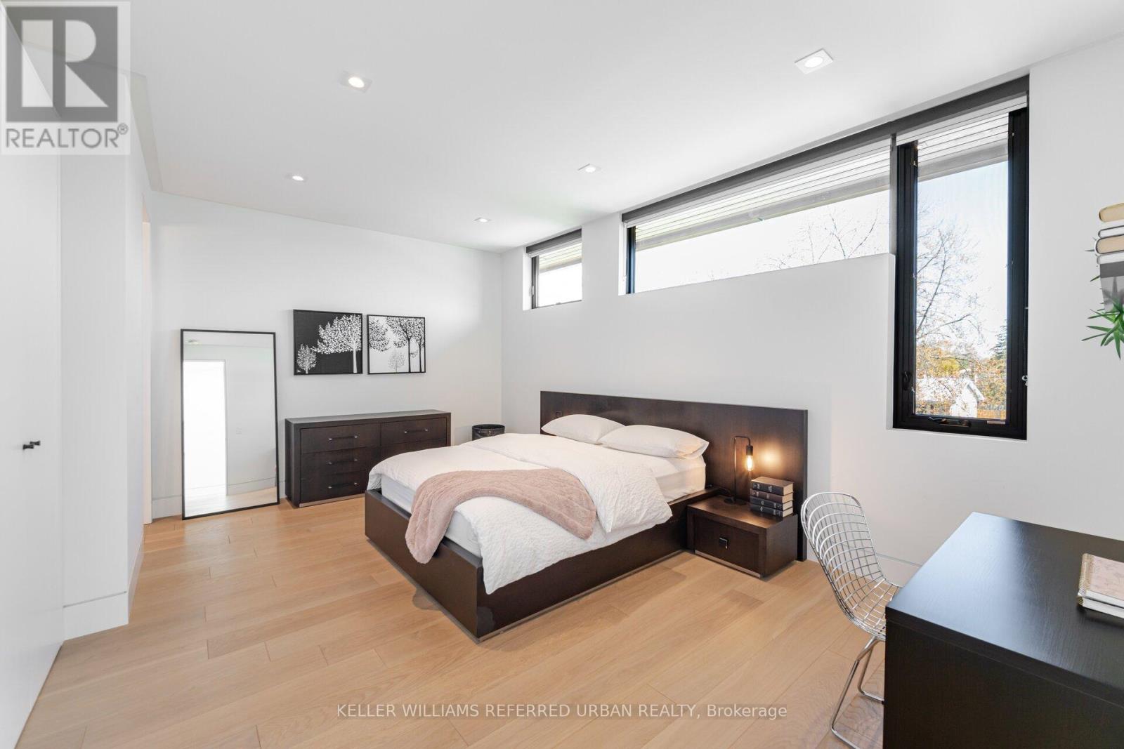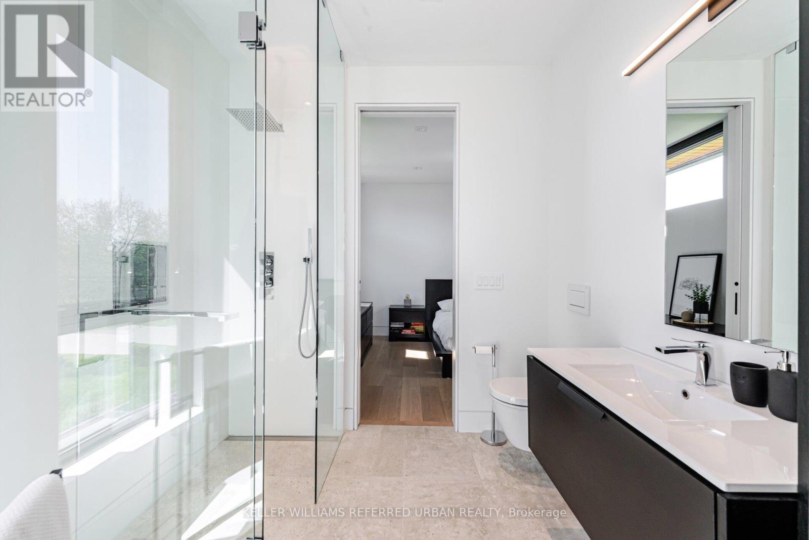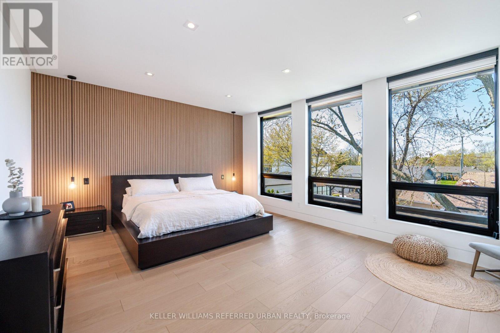 Step into the pinnacle of modern elegance with this stunning custom-built executive home, nestled in the highly sought-after heart of Southeast Oakville. Offering a seamless blend of sophisticated design, premium finishes, and an abundance of natural light. From the moment you enter, you'll be captivated by the open and intelligently configured interior layout, soaring 10' floating ceilings with cove lighting, and floor-to-ceiling windows that fill the space with sunlight. Every detail has been meticulously crafted, from the European white oak engineered hardwood floors to the 8' solid core doors, flush trim, and hidden anchored glass railings that exude contemporary sophistication. The heart of the home is the designer kitchen, featuring an oversized island, 10' cabinetry, and top-of-the-line appliances, perfect for entertaining or enjoying quiet family moments. The main floor flows effortlessly into a spacious living area, complete with a gas fireplace, built-in surround sound, and motorized blinds for ultimate convenience. Upstairs, natural light continues to shine through skylights and oversized windows, illuminating four generously sized bedrooms, each with its own ensuite bathroom and custom-built walk-in closets. The bespoke laundry room, with floor-to-ceiling cabinetry, adds a touch of practicality and style. The finished basement offers additional living space, ideal for a home theatre, gym, or playroom, while the mono-stringer staircase and glass railings create a striking visual statement from top to bottom. This home is more than just a residence; it's a lifestyle. With its unparalleled craftsmanship, high-end finishes, and prime location in one of Oakville's most desirable neighbourhoods, this property is truly Luxury at Its Finest. Don't miss the opportunity to experience the intricate quality and modern elegance of this exceptional home. (id:64974)