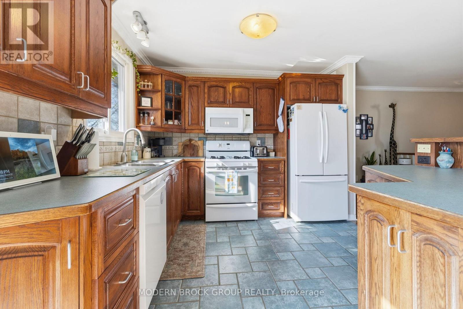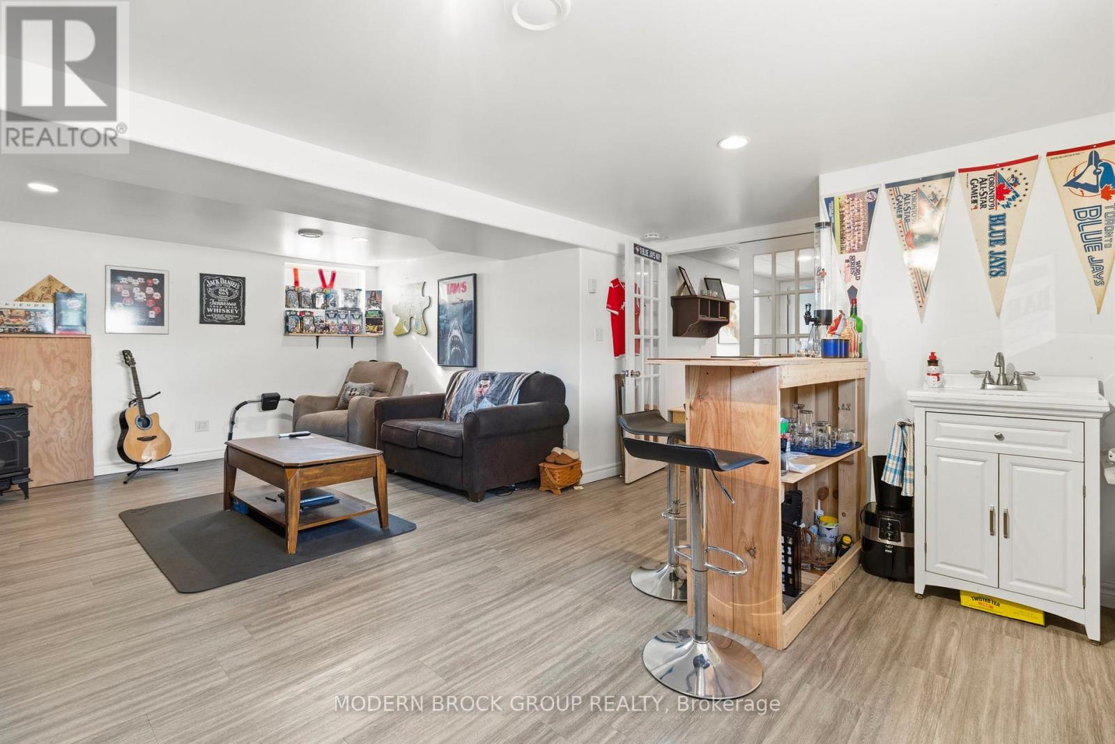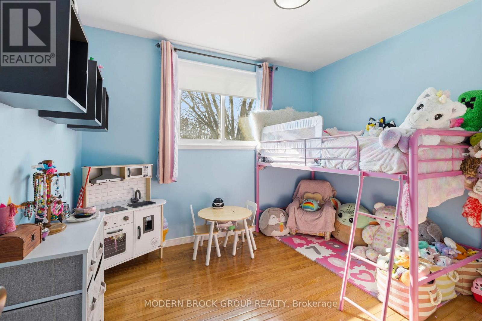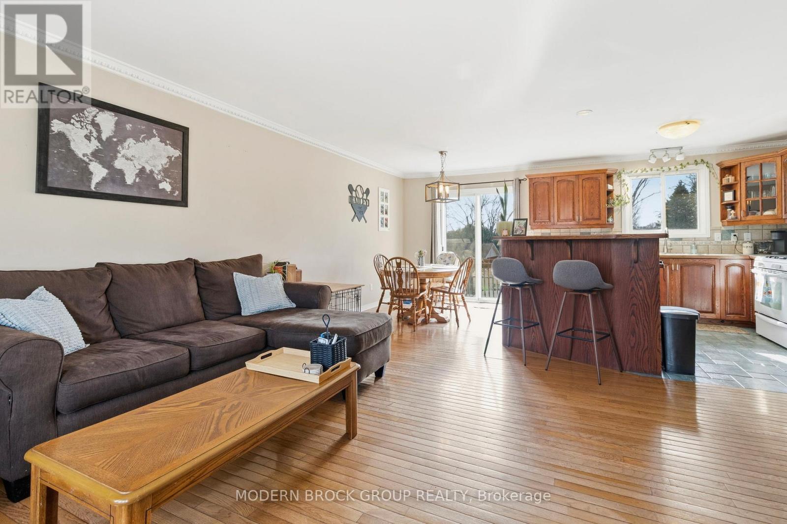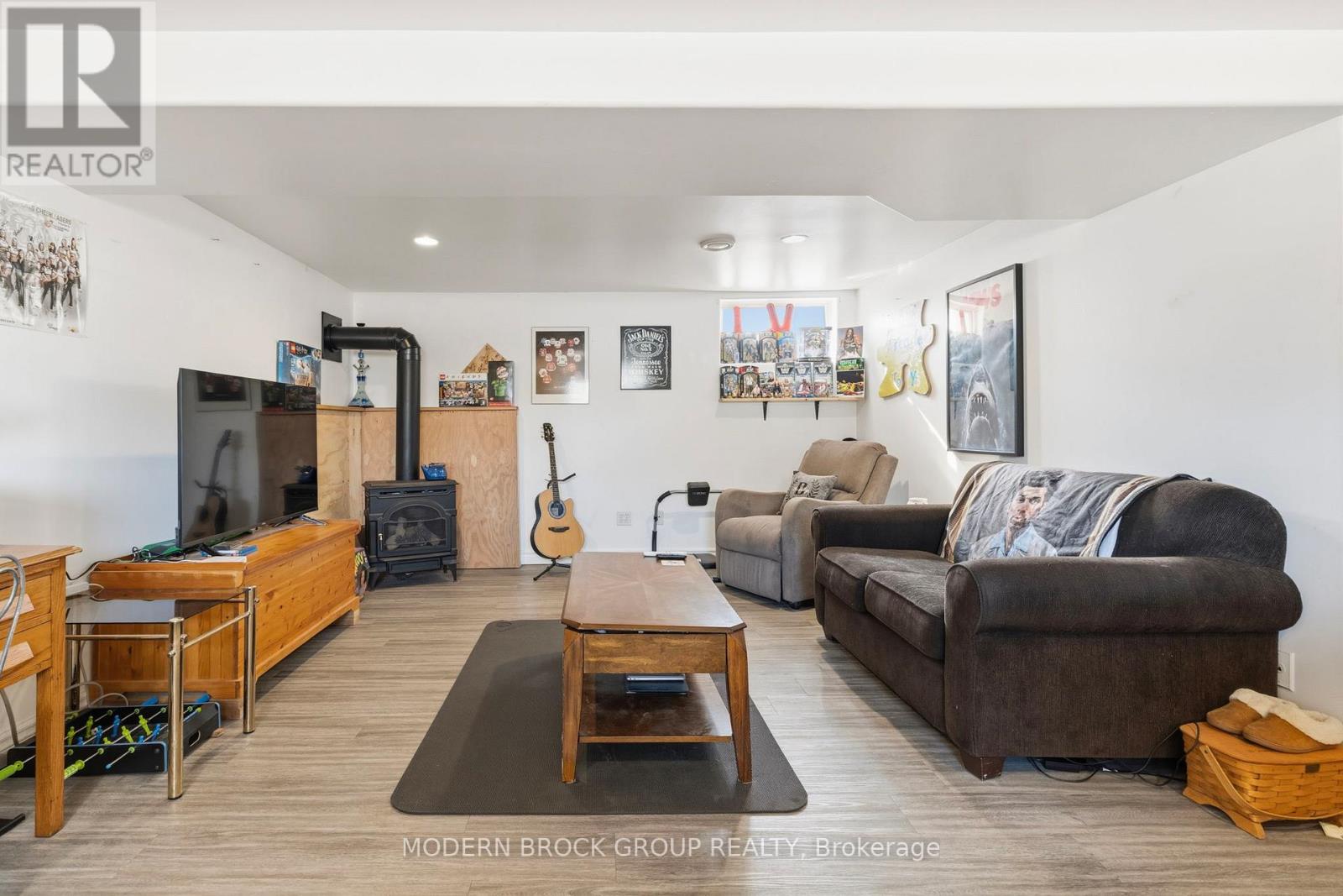 Welcome to this well-maintained 3+1 bedroom, 2 full bathroom raised bungalow located on a quiet crescent in Brockville's desirable north end. With bright living spaces, thoughtful updates, and a fully finished lower level, this home offers flexibility for families, entertaining, or multi-purpose living. The main floor features a spacious open-concept living and dining area filled with natural light from the large front window and complemented by hardwood flooring and crown moulding. The kitchen offers ample cabinetry, functional workspace, and easy flow to the dining area-perfect for everyday living or hosting friends and family. Three comfortable bedrooms and an updated main bathroom featuring both a separate shower and a soaker tub with heated floors complete the upper level. Downstairs you'll find a large finished recreation room with gas fireplace, ideal for movie nights, a games area, or a home gym. The lower level also includes a fourth bedroom, full bathroom, laundry room, and additional storage, offering great flexibility for guests, teens, or a home office. Step outside to enjoy the fenced backyard featuring a deck and above-ground pool, creating a great space for summer gatherings and outdoor relaxation. Recent improvements include eavestroughs with leaf guards (2024), pool deck (2024), sand filter for pool (2024), gas hot water tank (2025), bar with sink (2023), roof shingles (2016), and two updated bathrooms. Conveniently located close to parks, schools, shopping, and Brockville amenities, this move-in ready home offers comfort, space, and a fantastic neighbourhood setting. (id:64974)
