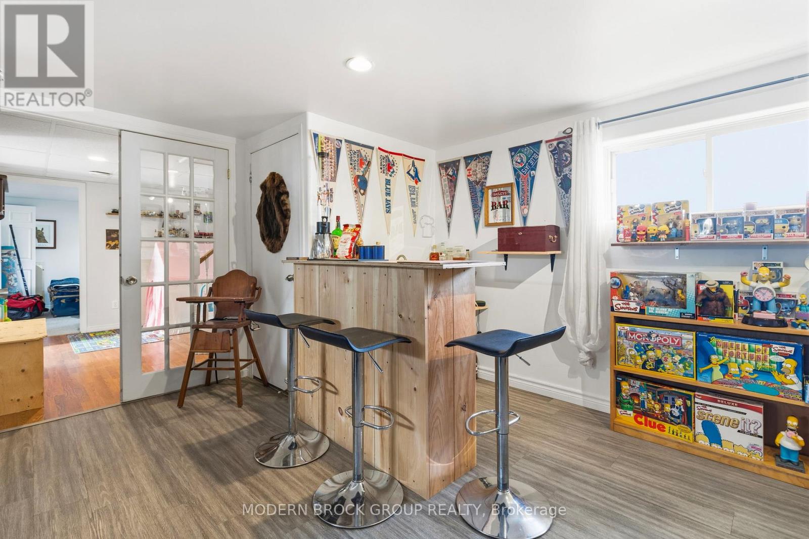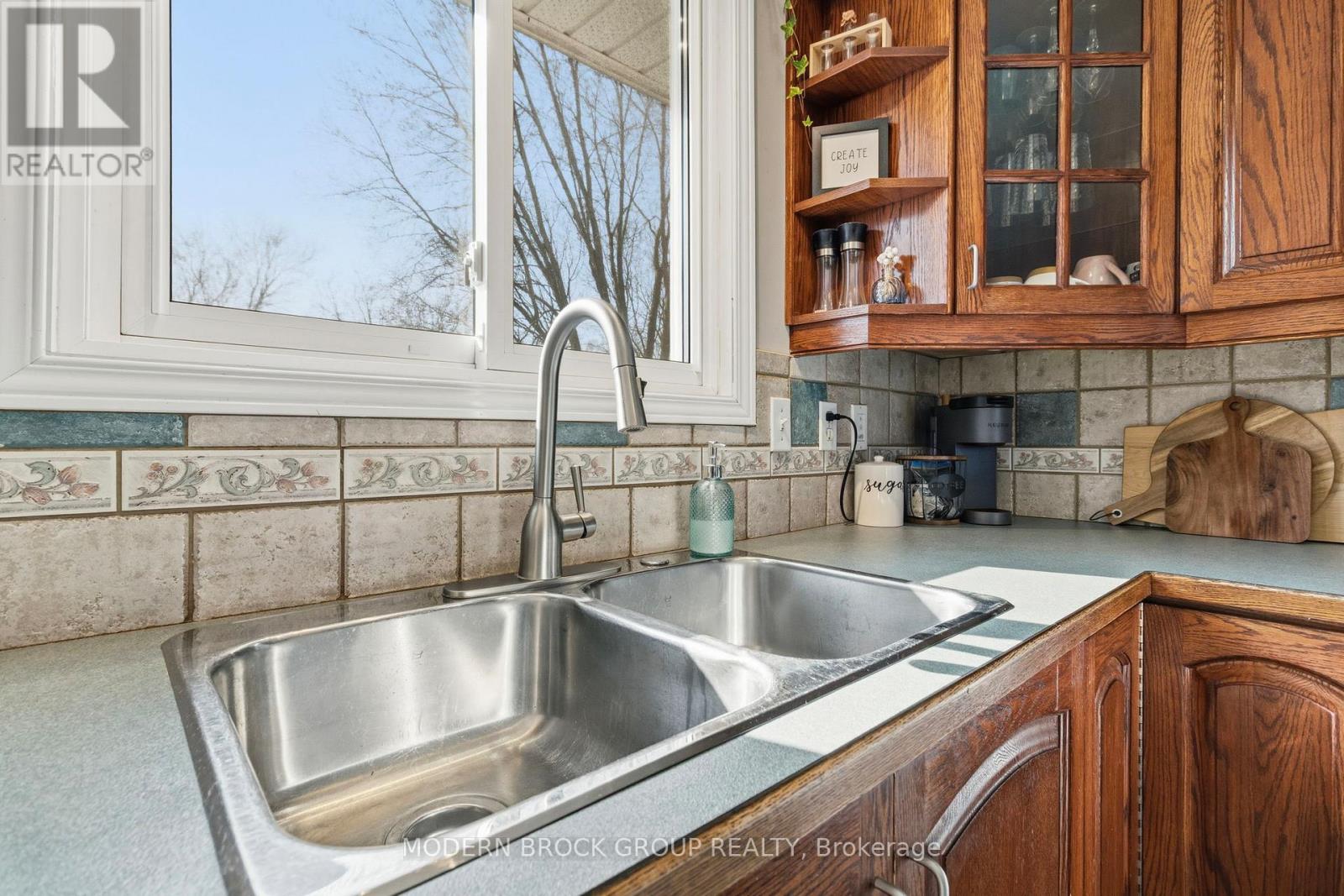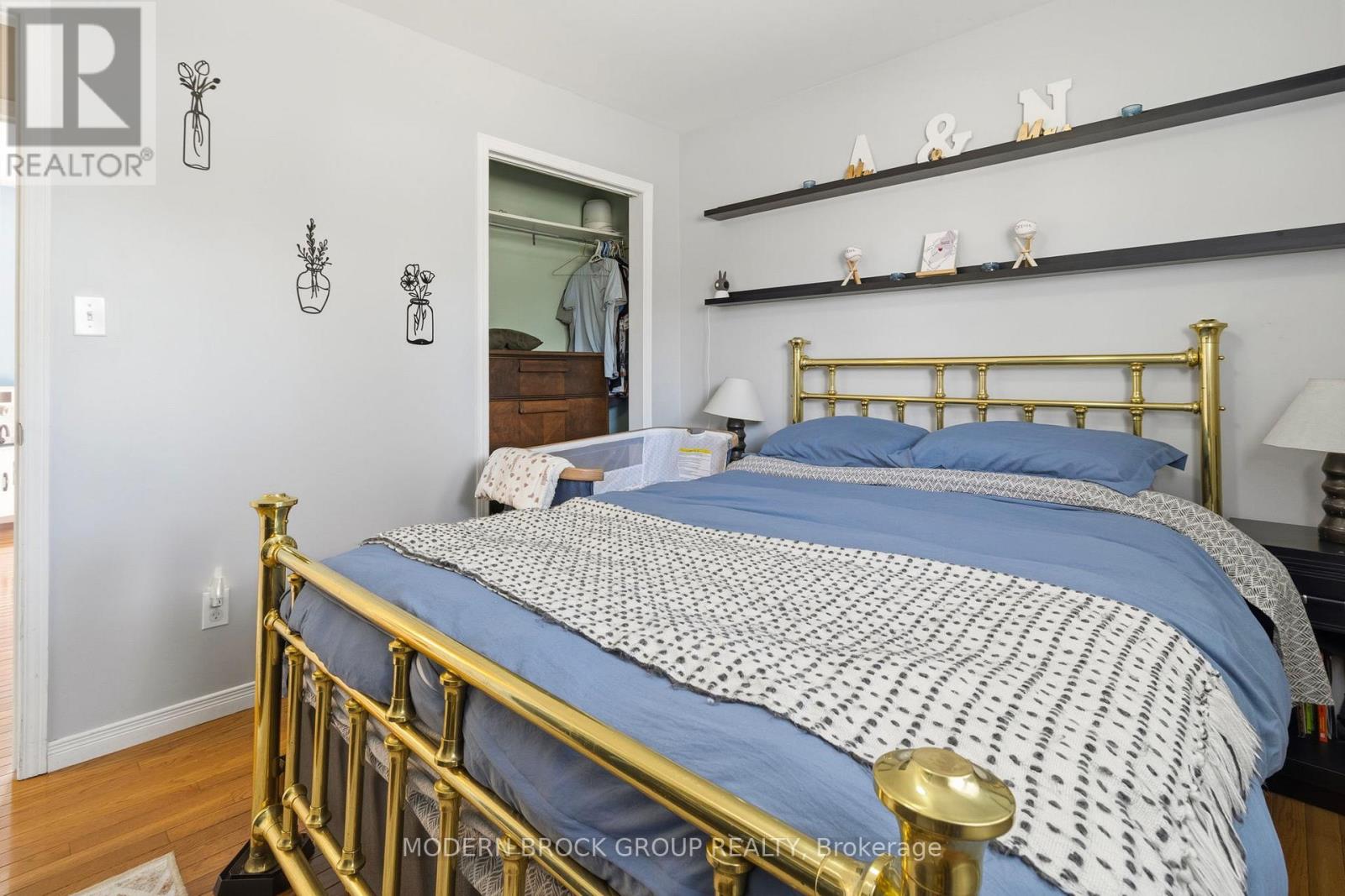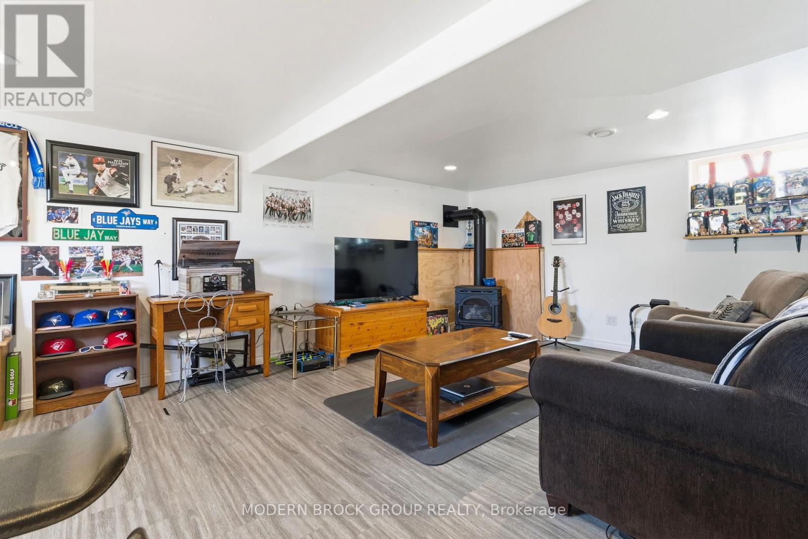 Welcome to this well-maintained 3+1 bedroom, 2 full bathroom raised bungalow located on a quiet crescent in Brockville's desirable north end. With bright living spaces, thoughtful updates, and a fully finished lower level, this home offers flexibility for families, entertaining, or multi-purpose living. The main floor features a spacious open-concept living and dining area filled with natural light from the large front window and complemented by hardwood flooring and crown moulding. The kitchen offers ample cabinetry, functional workspace, and easy flow to the dining area-perfect for everyday living or hosting friends and family. Three comfortable bedrooms and an updated main bathroom featuring both a separate shower and a soaker tub with heated floors complete the upper level. Downstairs you'll find a large finished recreation room with gas fireplace, ideal for movie nights, a games area, or a home gym. The lower level also includes a fourth bedroom, full bathroom, laundry room, and additional storage, offering great flexibility for guests, teens, or a home office. Step outside to enjoy the fenced backyard featuring a deck and above-ground pool, creating a great space for summer gatherings and outdoor relaxation. Recent improvements include eavestroughs with leaf guards (2024), pool deck (2024), sand filter for pool (2024), gas hot water tank (2025), bar with sink (2023), roof shingles (2016), and two updated bathrooms. Conveniently located close to parks, schools, shopping, and Brockville amenities, this move-in ready home offers comfort, space, and a fantastic neighbourhood setting. (id:64974)