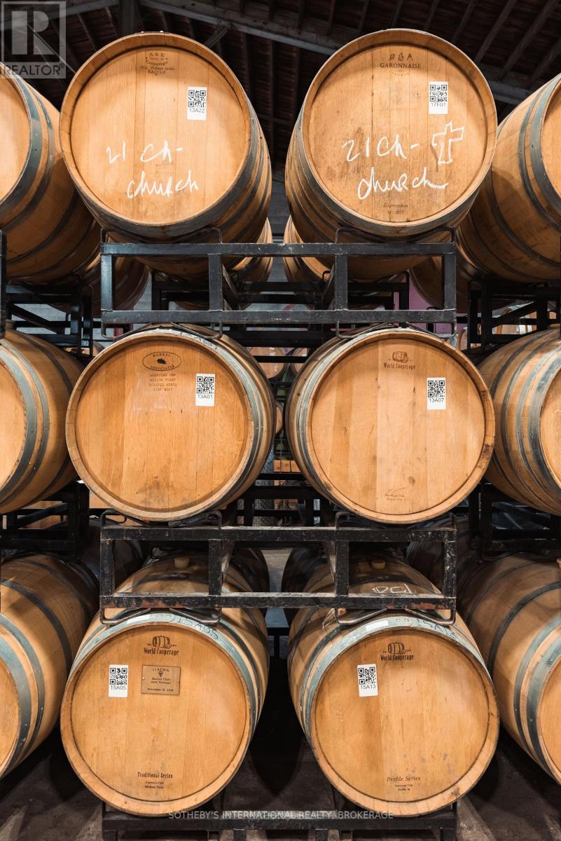 Located minutes from historic Niagara-on-the-Lake, this picturesque piece of land exudes tranquility. Home to Strewn Winery, the Ten Acre property located at 1339 Lakeshore Road has tremendous value as a revenue generator. The property includes a range of guest experiences as it houses the iconic winery, four distinct tasting experience locations (including the outdoor patio with views of the vineyards and scenic Four-Mile Creek tasting room), retail space, a restaurant, a cooking school, production facility and an attached four bedroom with four bathroom (ensuite) home with private courtyard which provides great potential as an Airbnb. In addition, a separate building currently used for onsite space could be utilized as a distillery or brewery. For over two decades, Strewn Winery has produced premium wines. The Company owns and operates a 30,000-square foot winery with complete production and winemaking facilities. Along with its additional 22 acres of vineyard at 916 Line 1, its total of 27 acres under vine yield exceptional red and white wines. Strewn's wines have won hundreds of awards in international competitions, generating strong brand awareness and loyalty. 1339 Lakeshore Road is one of the area's three major wine routes and is within minutes of Historic Niagara on the Lake, a major tourism destination as well as restaurants and accommodations. There are very few available parcels of land with such a desirable, high-profile location and all existing vineyards. With a soothing landscape, it's difficult not to be lulled away by the beauty of time experienced here. It is an ideal opportunity for innovative and inspirational growth. Leases are in place for the cooking school and restaurant, which ultimately allows for multiple revenue streams. The restaurant patio, covered by a permanent roof, overlooks the serene waters of Four Mile Creek. (id:64974)