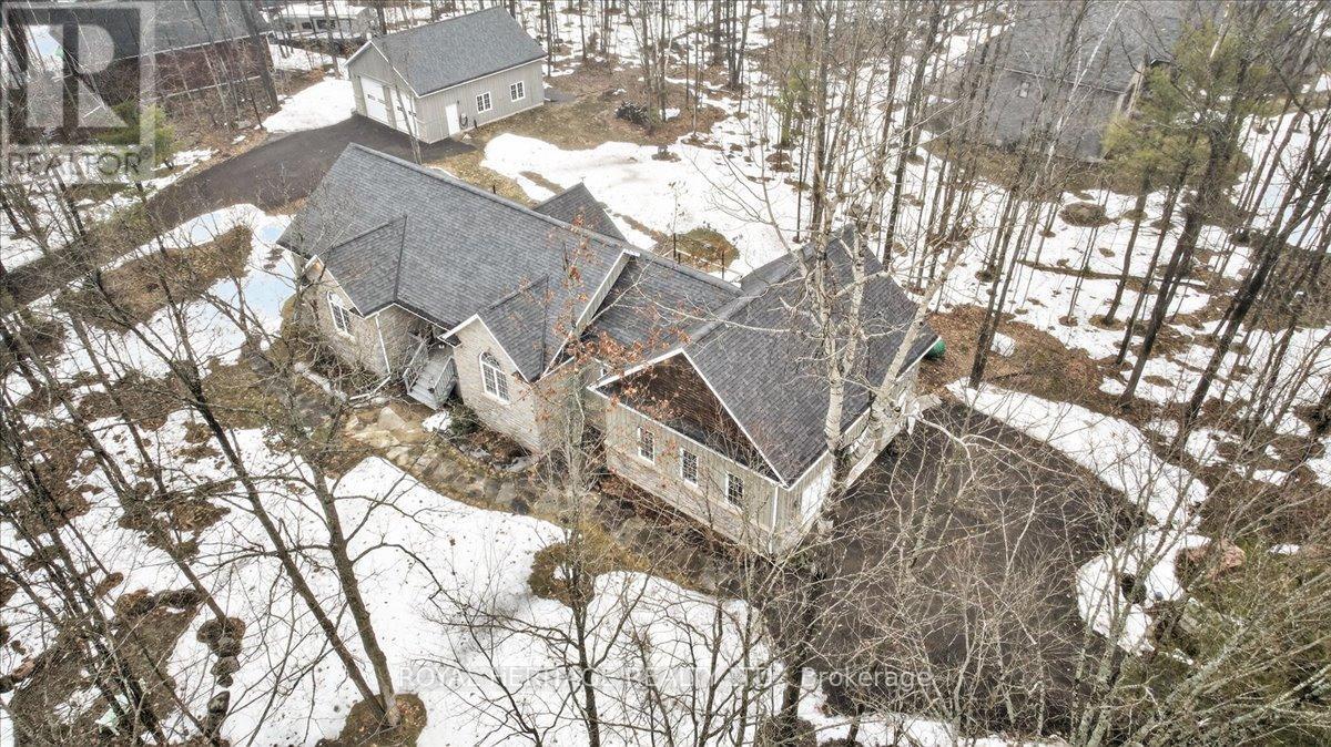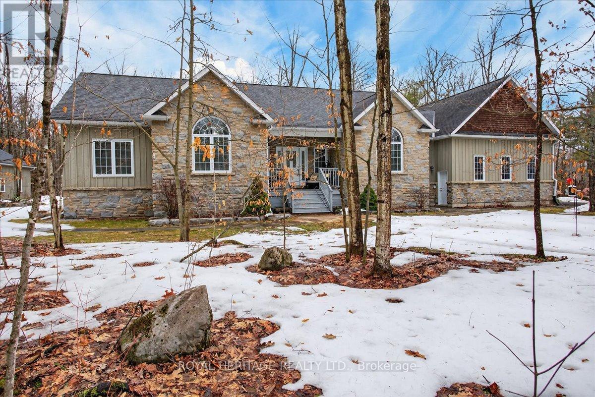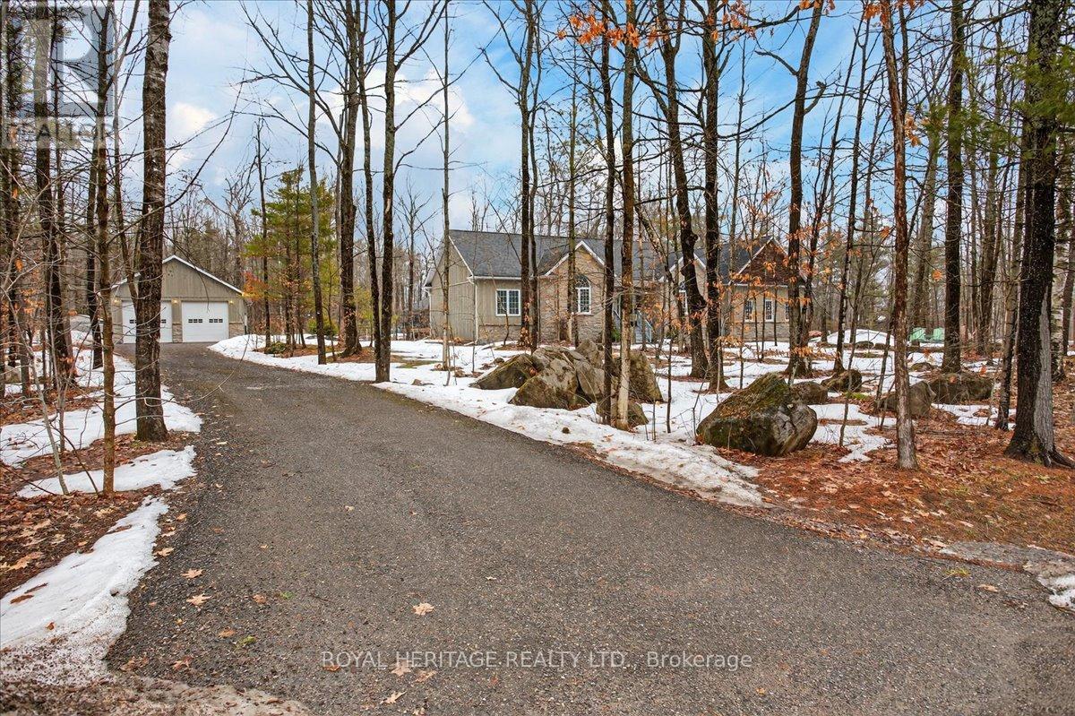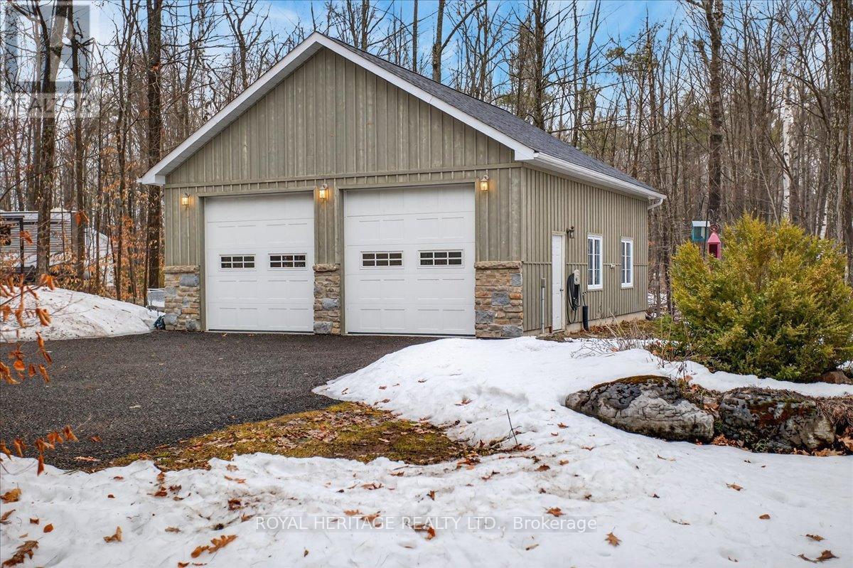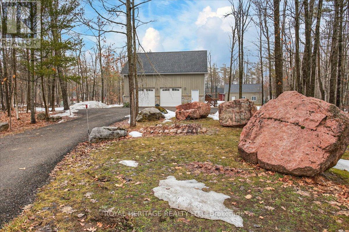 Welcome to Granite Ridge Estates, an exclusive collection of 48 executive homes thoughtfully designed to blend natural beauty with everyday comfort. Located in the charming community of Buckhorn, you'll enjoy convenient access to local amenities, nearby lakes for year-round recreation, an active community centre and an elementary school minutes away. Plus, all the shopping and services of Peterborough are a short 25-minute drive. This enchanting country home offers 4 spacious bedrooms, 3 full bathrooms and custom-designed interiors that combine style and function. Features include gleaming hardwood floors, granite countertops, cork flooring in the kitchen, and durable tile in high-traffic areas, everything you need for comfortable, modern living. A welcoming front porch leads into a bright foyer that opens to a stunning great room and a dine-in kitchen with walkout access to a rear barbecue deck perfect for entertaining. The M/F also includes a formal dining room, a primary bedroom w/4-piece ensuite and walk-in closet, two additional bedrooms, a full 4 pc. bath, and the laundry/mudroom with secure access from the garage. Vaulted ceilings and abundant natural light create an airy, inviting atmosphere throughout. Outdoors, the private rear deck is surrounded by mature trees, limestone pathways, and beautifully landscaped perennial gardens that bloom throughout the seasons. For hobbyists or collectors, a second driveway leads to an impressive insulated/heated shop with 14-foot ceilings, 10-foot truck doors, separate hydro panel and vehicle hoist. A Generac backup system ensures peace of mind in any weather. This exceptional property offers ample space for vehicles, tools, recreational equipment, it's truly a haven for those seeking both lifestyle and functionality. If you've been dreaming of country living without compromise, Granite Ridge Estates in Buckhorn offers the perfect blend of luxury, community, and natural beauty right in the heart of cottage country. (id:64974)
