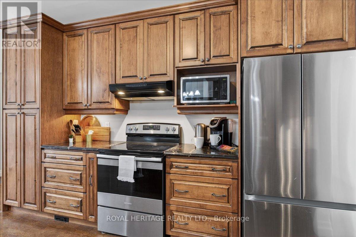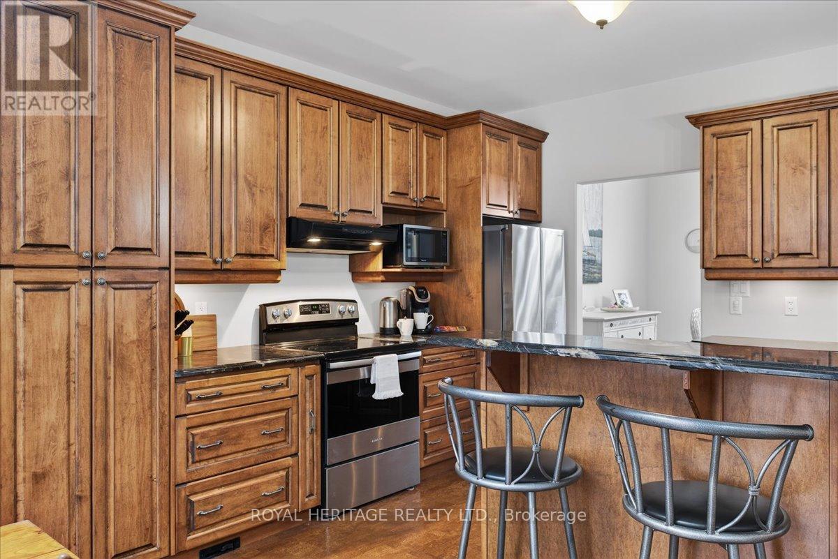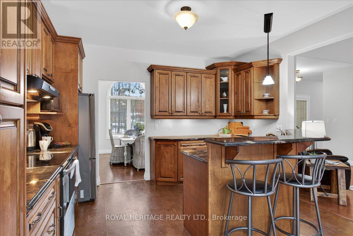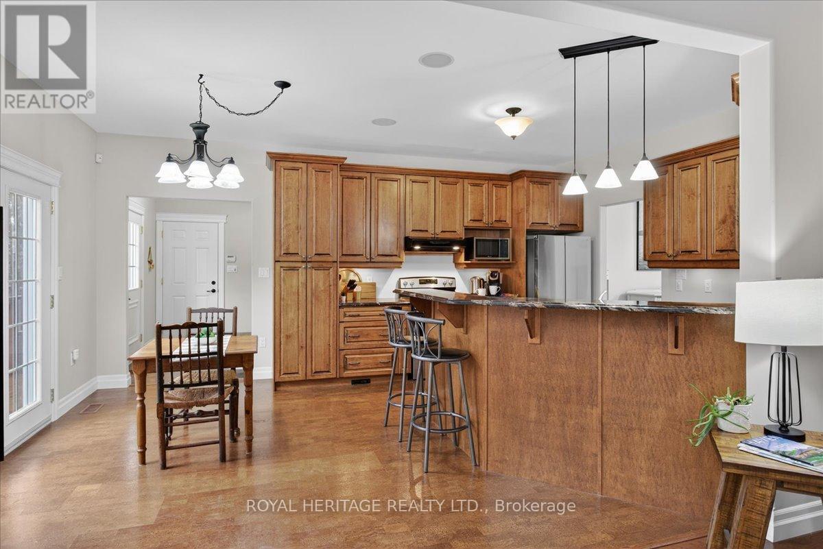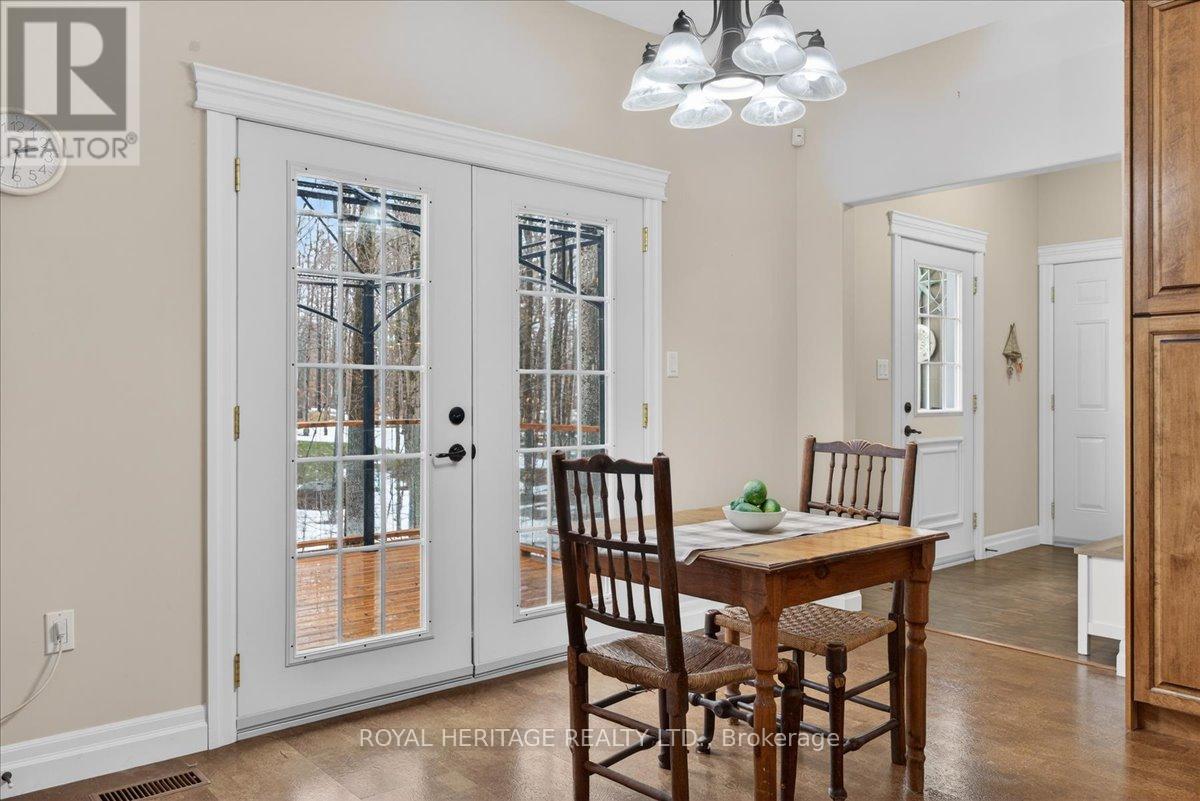 Welcome to Granite Ridge Estates, an exclusive collection of 48 executive homes thoughtfully designed to blend natural beauty with everyday comfort. Located in the charming community of Buckhorn, you'll enjoy convenient access to local amenities, nearby lakes for year-round recreation, an active community centre and an elementary school minutes away. Plus, all the shopping and services of Peterborough are a short 25-minute drive. This enchanting country home offers 4 spacious bedrooms, 3 full bathrooms and custom-designed interiors that combine style and function. Features include gleaming hardwood floors, granite countertops, cork flooring in the kitchen, and durable tile in high-traffic areas, everything you need for comfortable, modern living. A welcoming front porch leads into a bright foyer that opens to a stunning great room and a dine-in kitchen with walkout access to a rear barbecue deck perfect for entertaining. The M/F also includes a formal dining room, a primary bedroom w/4-piece ensuite and walk-in closet, two additional bedrooms, a full 4 pc. bath, and the laundry/mudroom with secure access from the garage. Vaulted ceilings and abundant natural light create an airy, inviting atmosphere throughout. Outdoors, the private rear deck is surrounded by mature trees, limestone pathways, and beautifully landscaped perennial gardens that bloom throughout the seasons. For hobbyists or collectors, a second driveway leads to an impressive insulated/heated shop with 14-foot ceilings, 10-foot truck doors, separate hydro panel and vehicle hoist. A Generac backup system ensures peace of mind in any weather. This exceptional property offers ample space for vehicles, tools, recreational equipment, it's truly a haven for those seeking both lifestyle and functionality. If you've been dreaming of country living without compromise, Granite Ridge Estates in Buckhorn offers the perfect blend of luxury, community, and natural beauty right in the heart of cottage country. (id:64974)