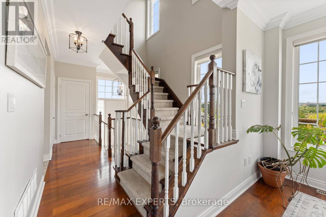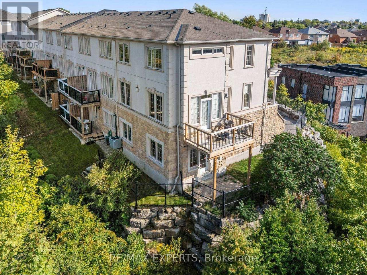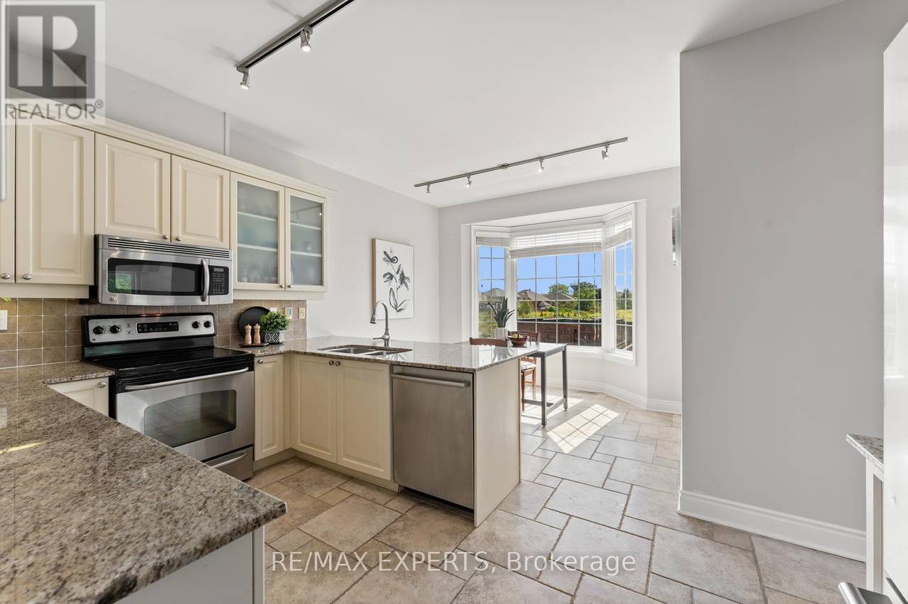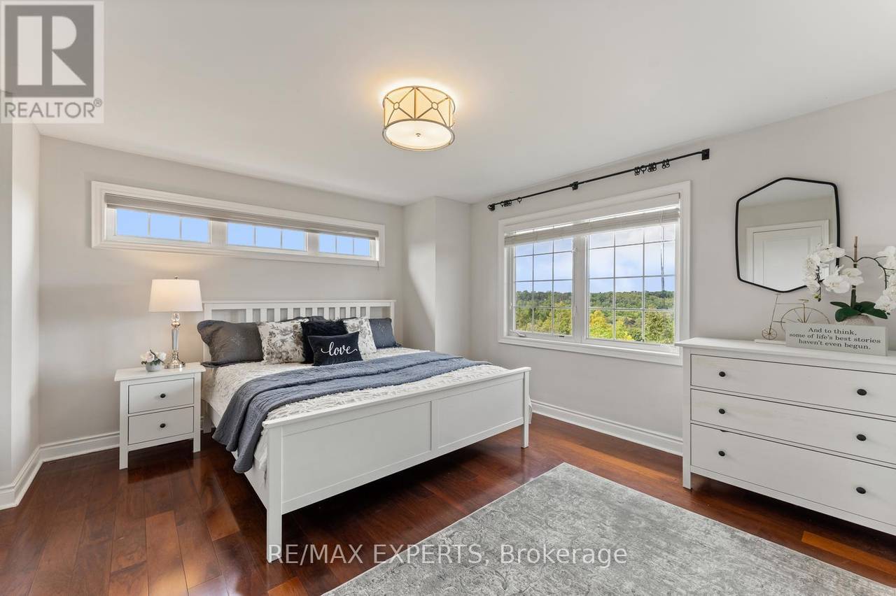 Welcome to 134 Rolling Hills Lane in the exclusive Stoneridge Estates. This 1,950 sq. ft. end-unit freehold townhome sits on a premium ravine lot, offering privacy, stunning sunsets, and the feel of a detached home. The main floor showcases a spacious great room with hardwood floors, crown moulding, and French doors leading to a private balcony with tranquil ravine views. The family-sized kitchen is designed for both everyday living and entertaining, featuring granite counters, stainless steel appliances, a pantry, and ample cabinetry. Upstairs, two generously sized bedrooms each feature their own ensuite bath, plus a convenient second-floor laundry room. The ground-level family room (or optional 3rd bedroom/home office) provides additional living space and direct access to the outdoors. Oversized windows on every level fill the home with natural light, while 9-foot ceilings create an open, airy atmosphere. With a 2-car garage and 2-car driveway, this home perfectly combines luxury and function in one of Caledon's most desirable neighbourhoods.A rare opportunity end units with ravine views like this are hard to find! (id:64974)