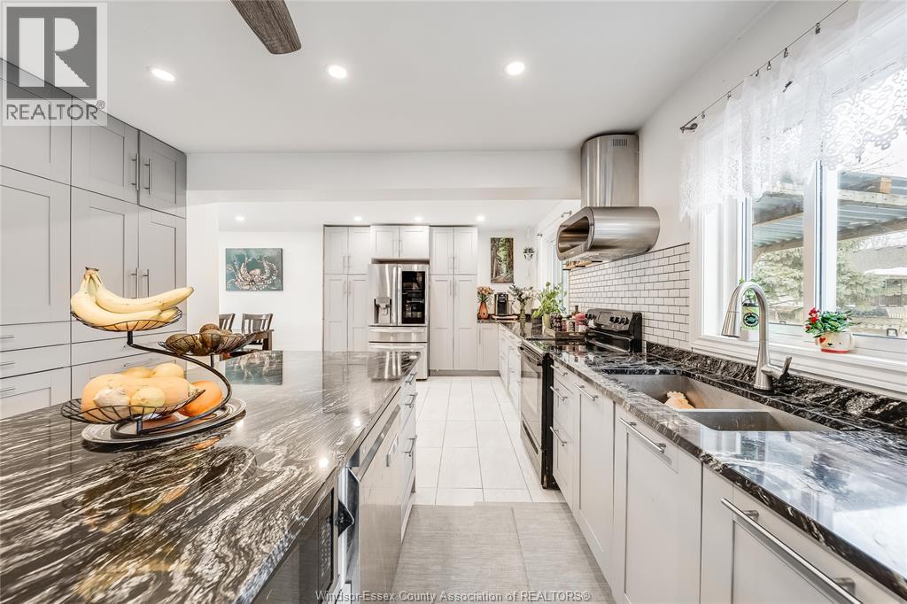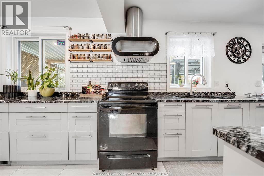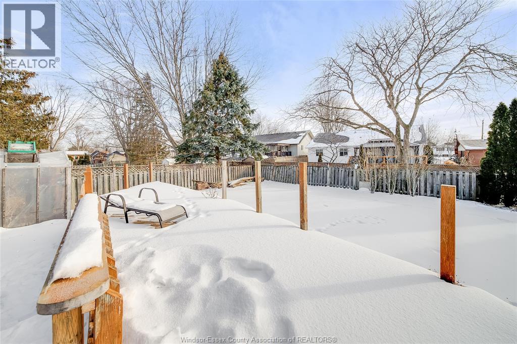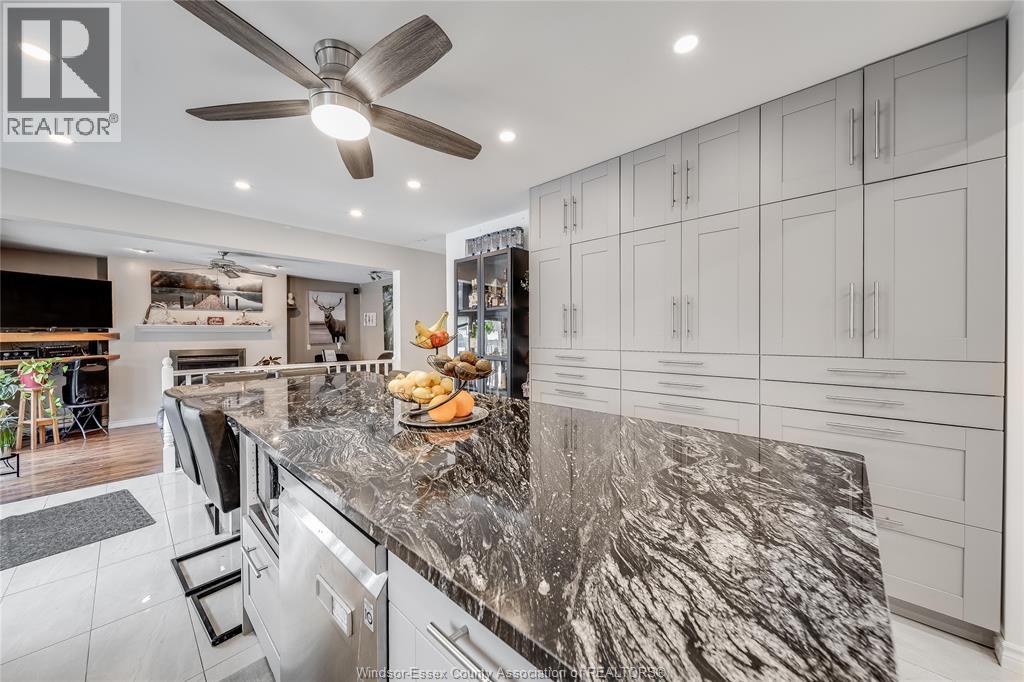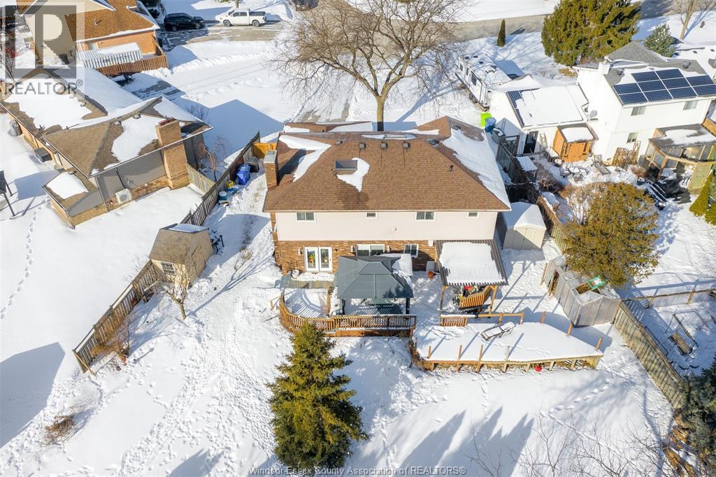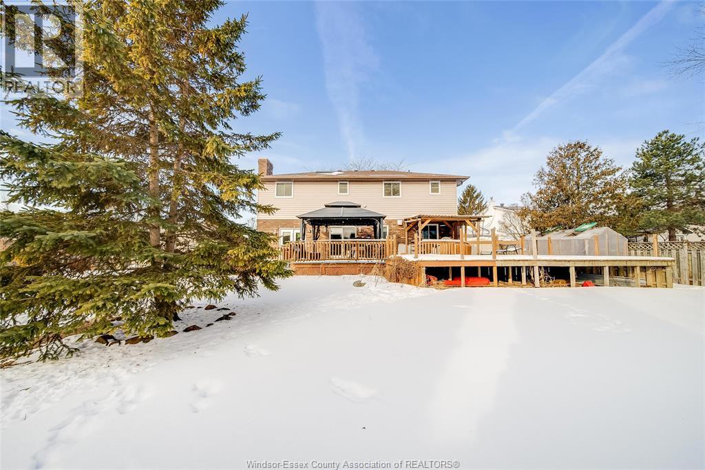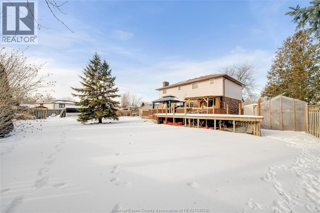 Welcome to this well-located family home on an oversized pie-shaped lot in one of Belle River’s quiet, tree-lined crescents. One of the larger lots on the street, offering added space and privacy. This 4+1 bedroom home features a spacious primary bedroom with ensuite and bright living areas enhanced by skylights and natural light. The kitchen and dining area were remodeled in 2019 and showcase an oversized granite island with seating for six, granite countertops, and porcelain flooring throughout the main floor. The sunken family room is open to the kitchen and provides two patio walk-outs, creating a functional layout for everyday living and entertaining. The second-floor bathroom has been recently renovated and includes convenient laundry. A generous backyard provides ample space for outdoor living and entertaining, complemented by a front yard sprinkler system for easy maintenance. Located in a family-friendly neighbourhood close to schools, restaurants, parks, and the marina — a solid opportunity in a desirable Belle River location. (id:64974)
