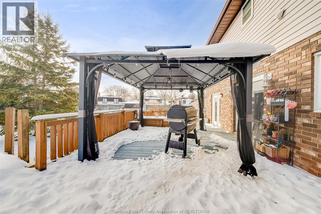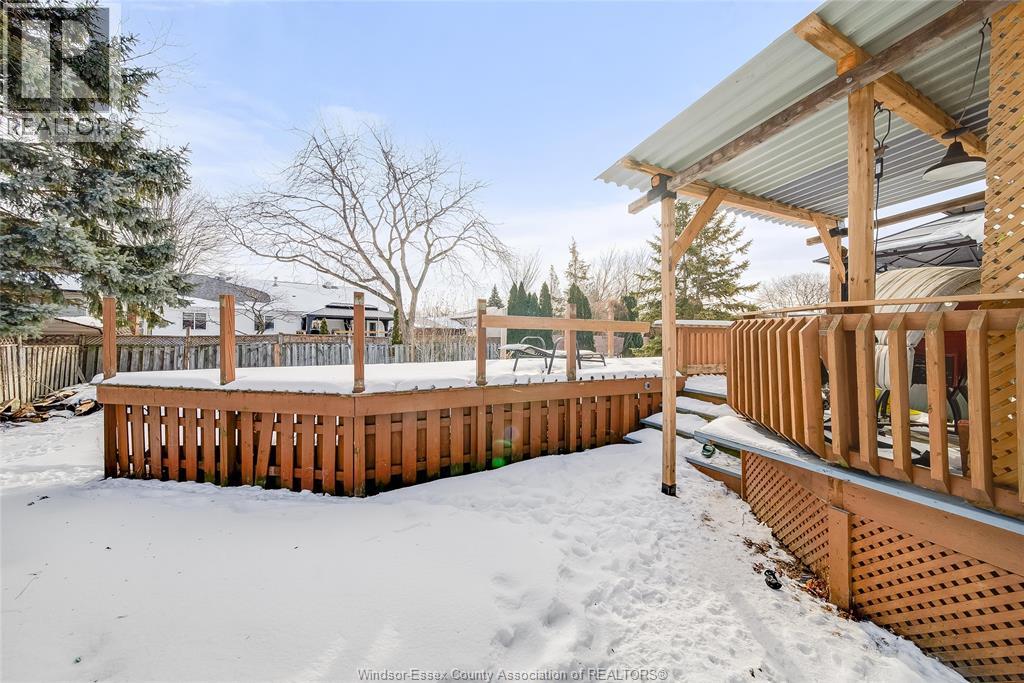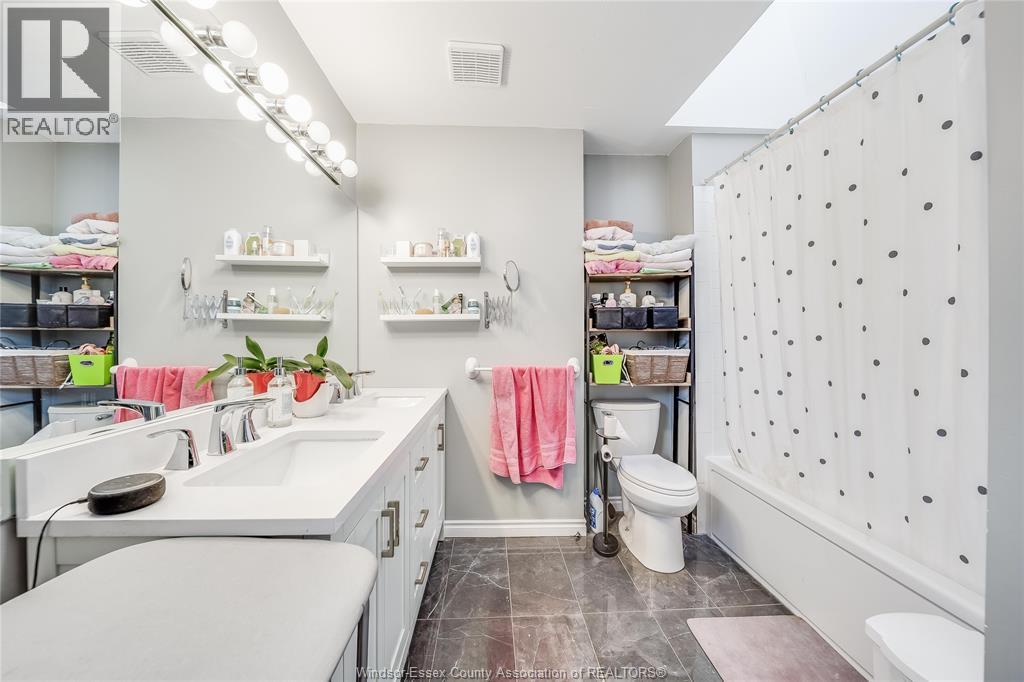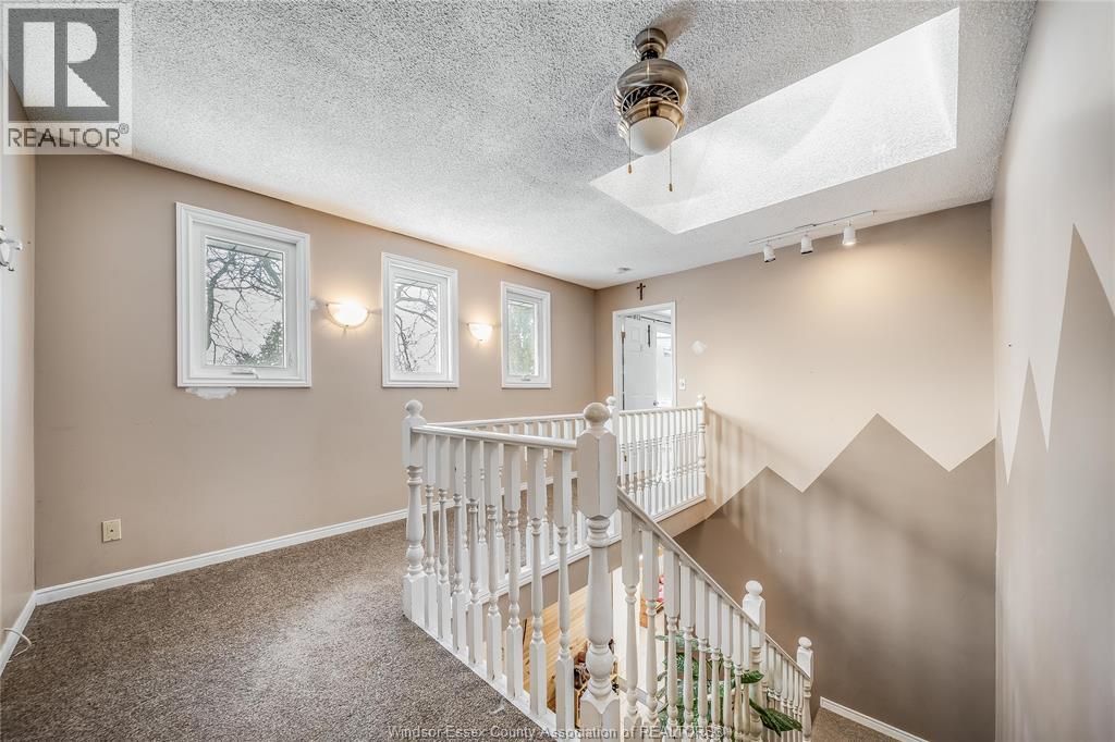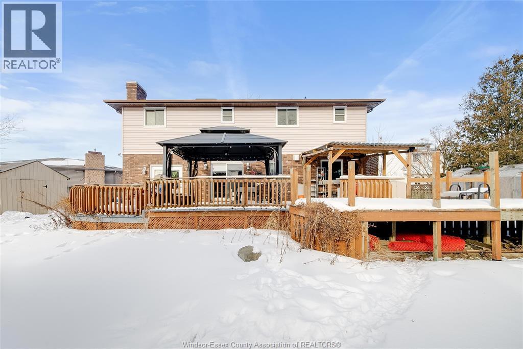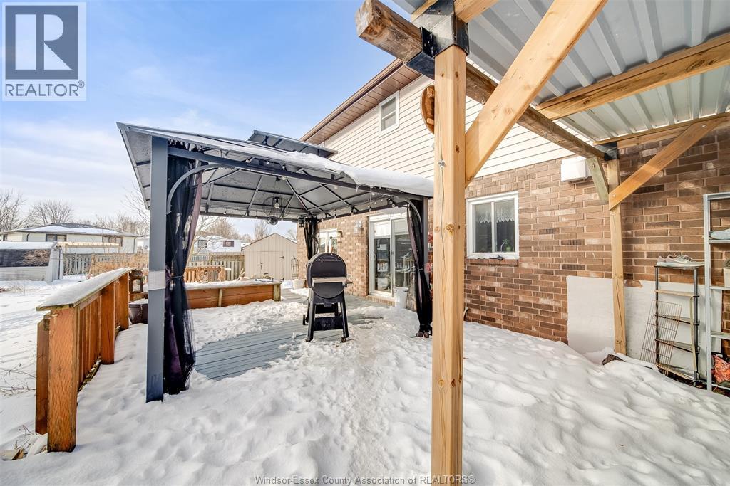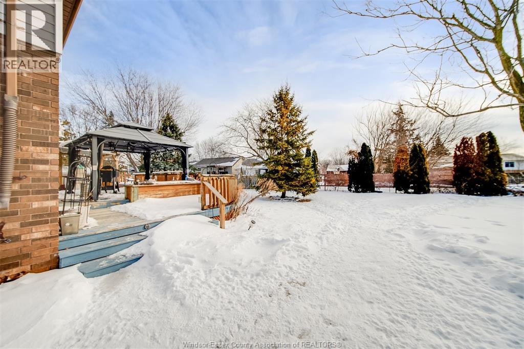 Welcome to this well-located family home on an oversized pie-shaped lot in one of Belle River’s quiet, tree-lined crescents. One of the larger lots on the street, offering added space and privacy. This 4+1 bedroom home features a spacious primary bedroom with ensuite and bright living areas enhanced by skylights and natural light. The kitchen and dining area were remodeled in 2019 and showcase an oversized granite island with seating for six, granite countertops, and porcelain flooring throughout the main floor. The sunken family room is open to the kitchen and provides two patio walk-outs, creating a functional layout for everyday living and entertaining. The second-floor bathroom has been recently renovated and includes convenient laundry. A generous backyard provides ample space for outdoor living and entertaining, complemented by a front yard sprinkler system for easy maintenance. Located in a family-friendly neighbourhood close to schools, restaurants, parks, and the marina — a solid opportunity in a desirable Belle River location. (id:64974)