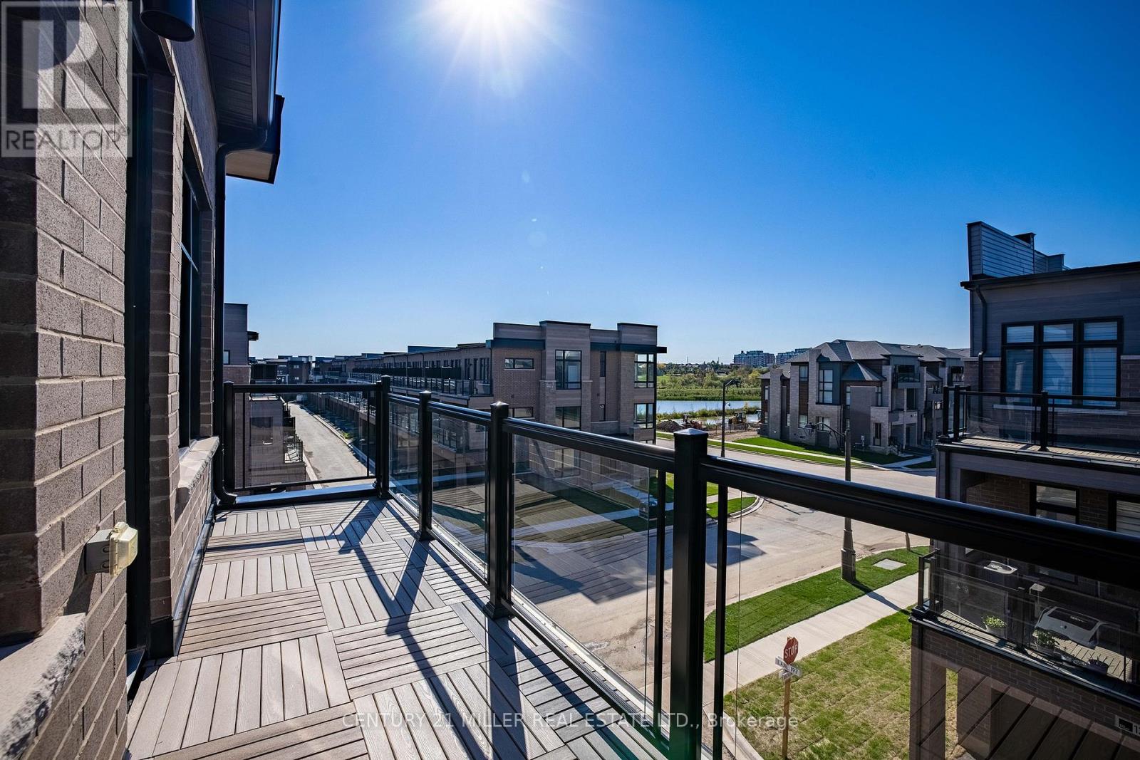 Welcome to Upper Joshua Creek. This modern end unit townhome offers 5 bedrooms, 4 full and 1 half baths, and 2,560 sq ft of finished living space. The ground level opens to a welcoming foyer with a laundry room that has direct garage access, plus a bright corner bedroom with its own three piece ensuite. Hardwood and ceramic tile run throughout the home. The second floor is light filled with an open concept kitchen, dining, and living area under 10 ft ceilings. The kitchen features stainless steel appliances, a centre island, and generous storage. The dining room has a walkout to the balcony for easy indoor to outdoor entertaining, and a powder room completes the level. The primary bedroom includes a private balcony and a 5 piece ensuite with a freestanding deep soaker tub, seamless glass shower, and a double vanity with undermount sinks. Three additional bedrooms and two 4 piece baths provide flexible space for family, guests, or a home office. Minutes to 403, QEW, and 407, and close to parks, trails, shops, and well regarded schools. (id:64974)