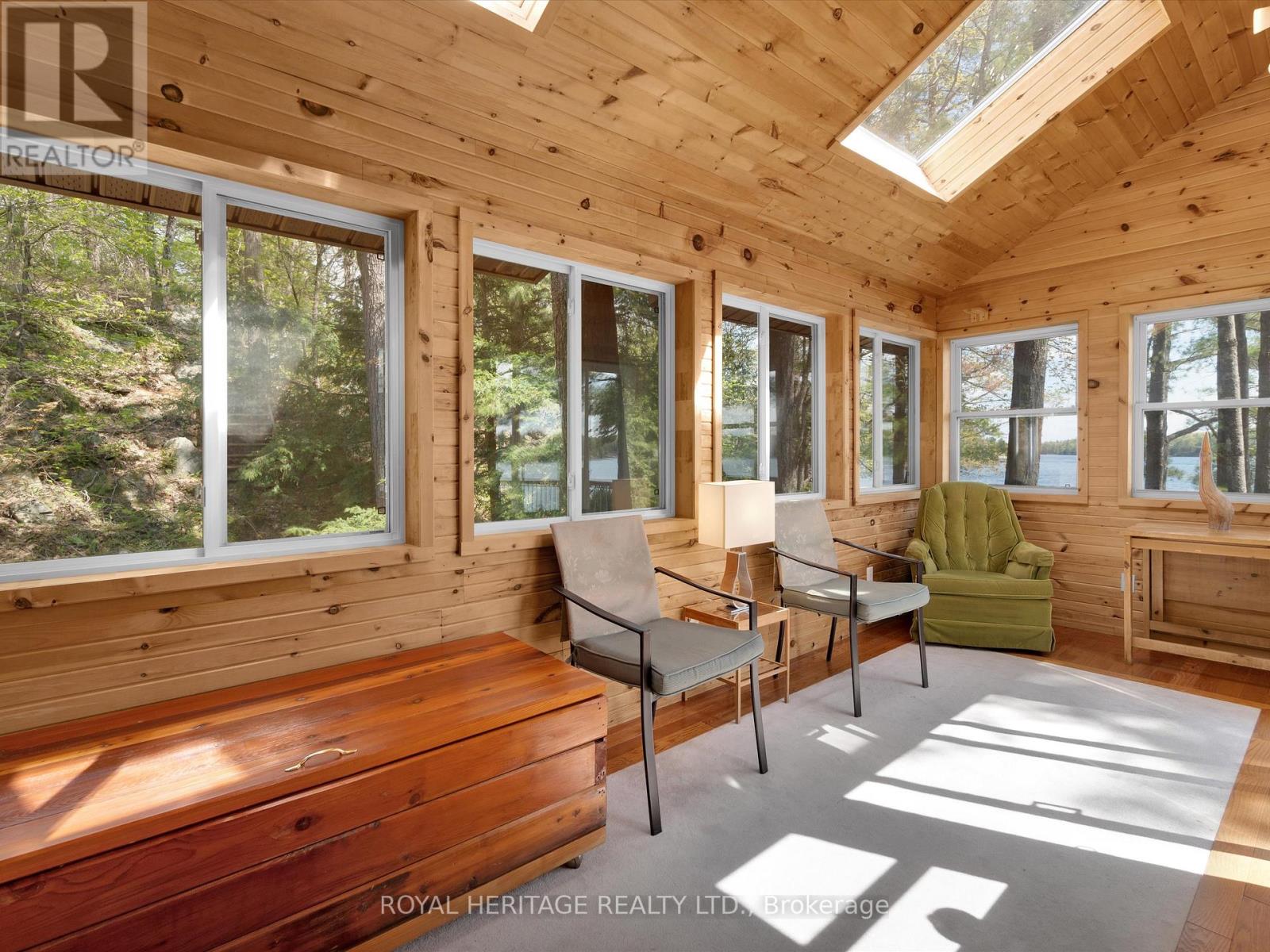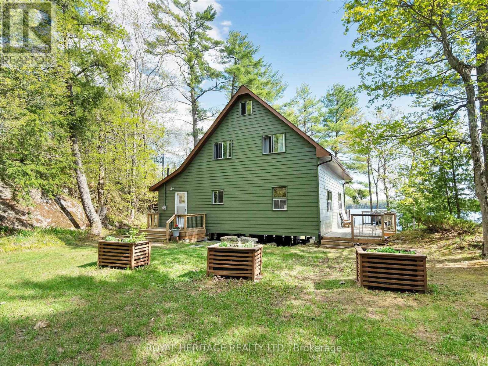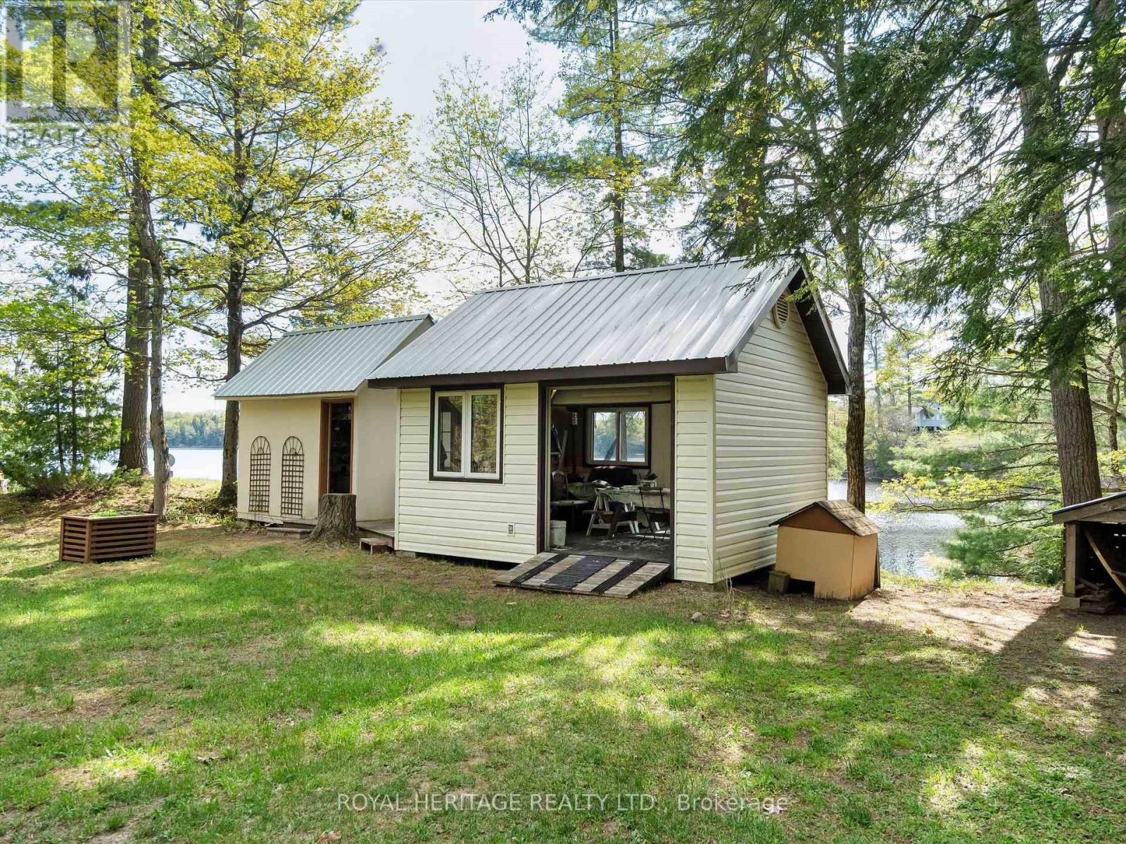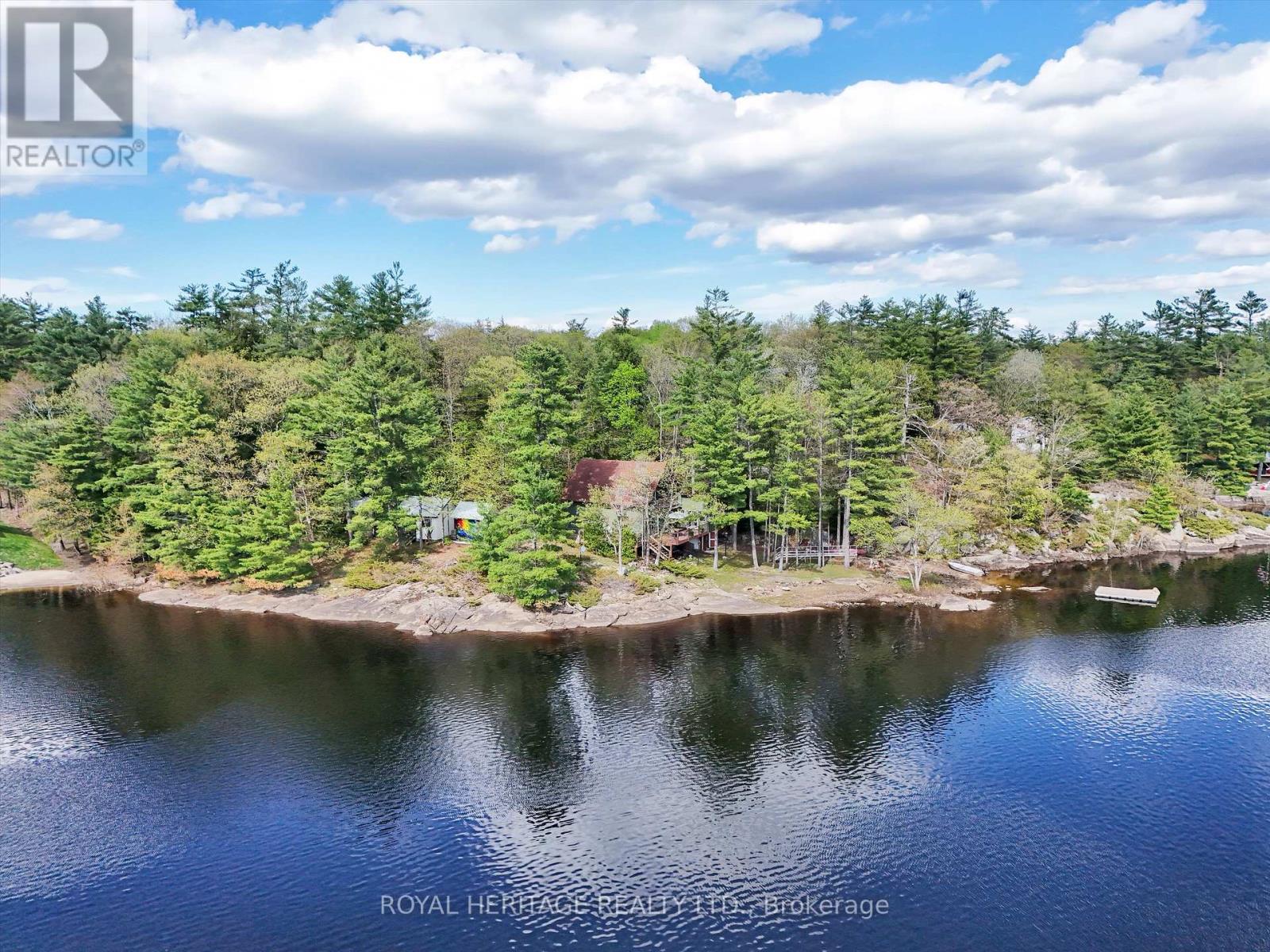 Get ready for an exciting new chapter on this beautiful lake in Muskoka. Just steps from the water's edge, this fabulous 2-storey cottage offers 3-season living with over 300 ft. of spectacular south-west facing shoreline. Sitting in its own bay on over an acre of leased land, the property boasts privacy, sandy beach, and water surrounds. Gather on the dock for swimming, fishing and boating activities or lounge on any of the multiple decks. With 4 sets of sliding doors, 5 skylights and south western exposure, natural light fills the bright interior. The cottage features 1436 sq. ft. of fully furnished airy living space, including 3 bedrooms, 2 baths, a spacious second floor, and classic Muskoka sunroom. The fully equipped kitchen has water and forest views and ample space to prepare summer meals. The large and inviting open concept living space boasts double sliding doors, a roomy deck overlooking the lake, and a wood-burning stove. The sunroom beckons for morning coffee, card games, or reading. A curved wooden staircase leads to the upper floor, with a king bedroom and a second bedroom ideal for guests or a home office, and another elevated deck with spectacular lake views. The attic offers great potential for a spacious loft retreat. A bright modern new second bathroom has an operable skylight to bring the outdoors in. Outside, there are 3 accessory buildings. One is presently a workshop/pumphouse/utility room, another a discreet outhouse. The third could be an ATV garage, art studio, recording studio, childrens playhouse, or private office. The double garage doors open towards the yard and the lake. Lots of storage areas both inside and outside the cottage plus a boat storage room to hold canoe, kayaks, and water toys. Just 2 hours from Toronto, you're a short drive off Hwy 400 and 15 min to beautiful Bala. This cottage has been extensively upgraded over the past few years and is ready for the next owner to move in this summer. (id:64974)
