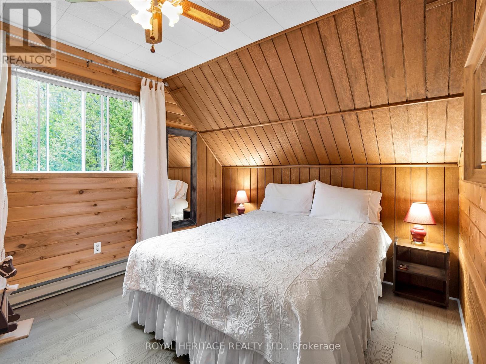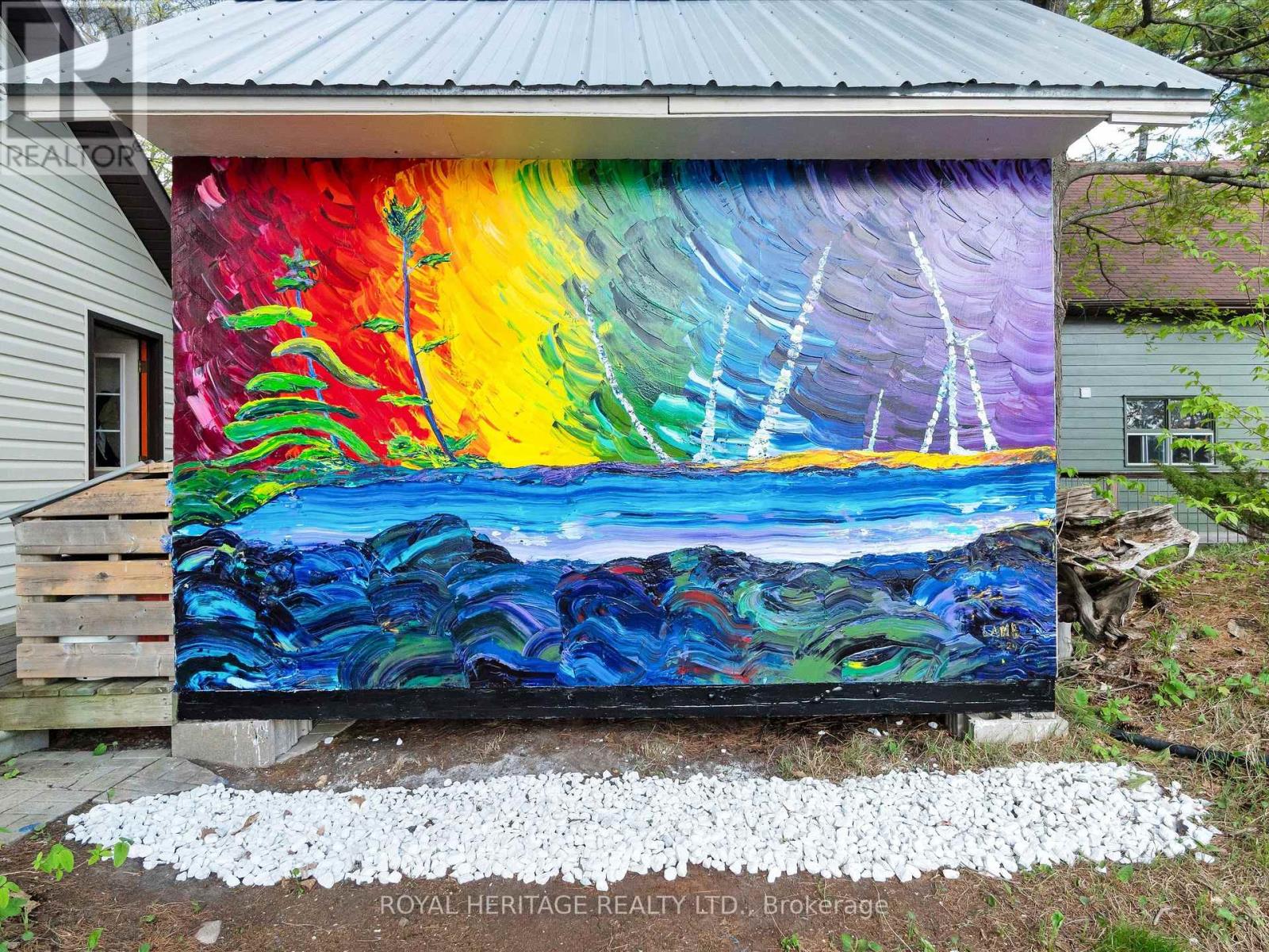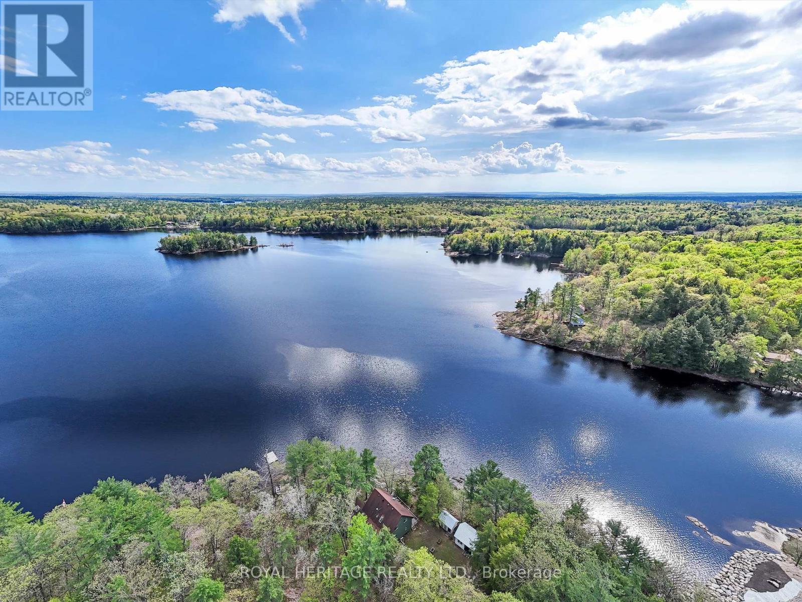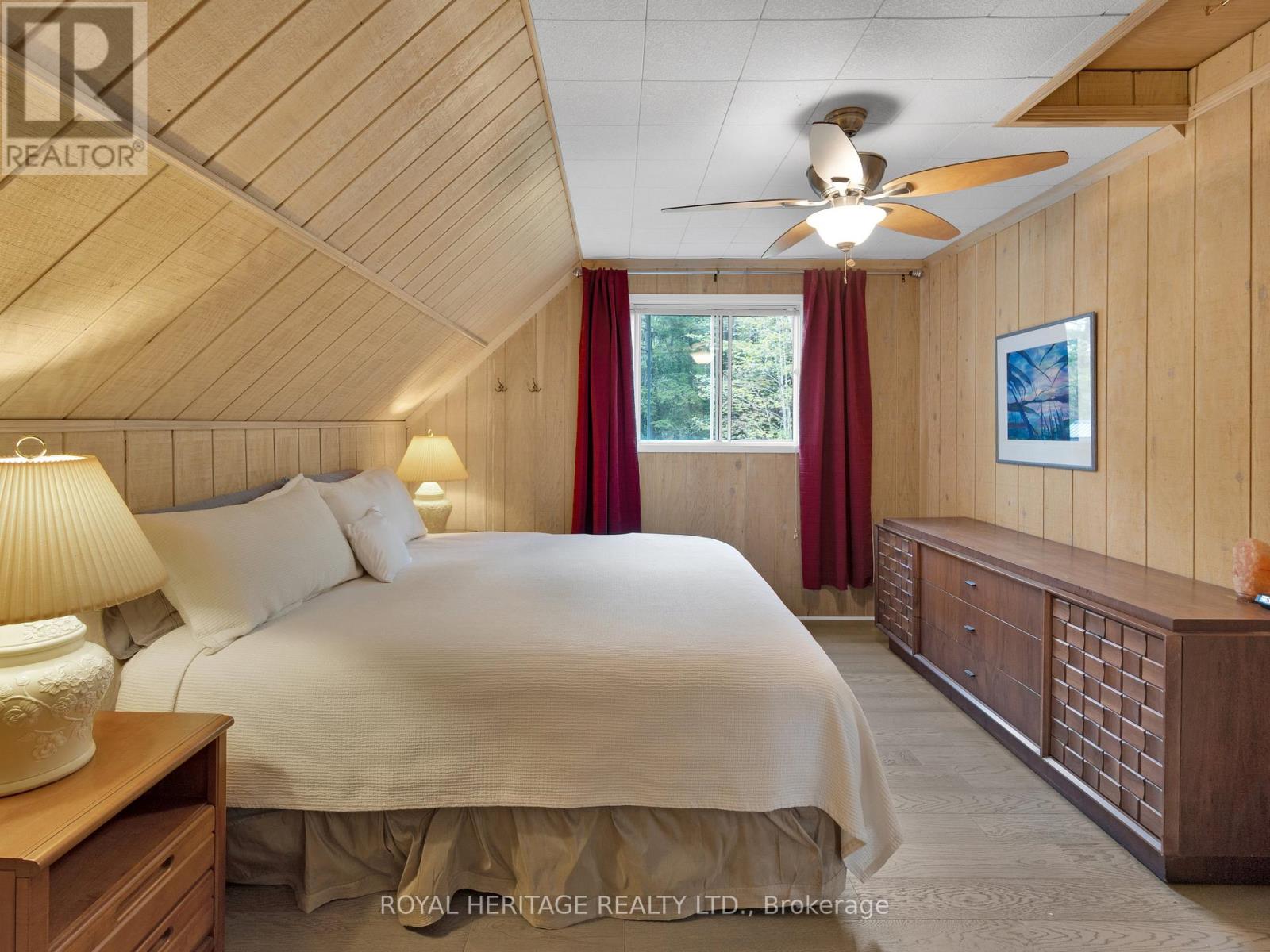 Get ready for an exciting new chapter on this beautiful lake in Muskoka. Just steps from the water's edge, this fabulous 2-storey cottage offers 3-season living with over 300 ft. of spectacular south-west facing shoreline. Sitting in its own bay on over an acre of leased land, the property boasts privacy, sandy beach, and water surrounds. Gather on the dock for swimming, fishing and boating activities or lounge on any of the multiple decks. With 4 sets of sliding doors, 5 skylights and south western exposure, natural light fills the bright interior. The cottage features 1436 sq. ft. of fully furnished airy living space, including 3 bedrooms, 2 baths, a spacious second floor, and classic Muskoka sunroom. The fully equipped kitchen has water and forest views and ample space to prepare summer meals. The large and inviting open concept living space boasts double sliding doors, a roomy deck overlooking the lake, and a wood-burning stove. The sunroom beckons for morning coffee, card games, or reading. A curved wooden staircase leads to the upper floor, with a king bedroom and a second bedroom ideal for guests or a home office, and another elevated deck with spectacular lake views. The attic offers great potential for a spacious loft retreat. A bright modern new second bathroom has an operable skylight to bring the outdoors in. Outside, there are 3 accessory buildings. One is presently a workshop/pumphouse/utility room, another a discreet outhouse. The third could be an ATV garage, art studio, recording studio, childrens playhouse, or private office. The double garage doors open towards the yard and the lake. Lots of storage areas both inside and outside the cottage plus a boat storage room to hold canoe, kayaks, and water toys. Just 2 hours from Toronto, you're a short drive off Hwy 400 and 15 min to beautiful Bala. This cottage has been extensively upgraded over the past few years and is ready for the next owner to move in this summer. (id:64974)