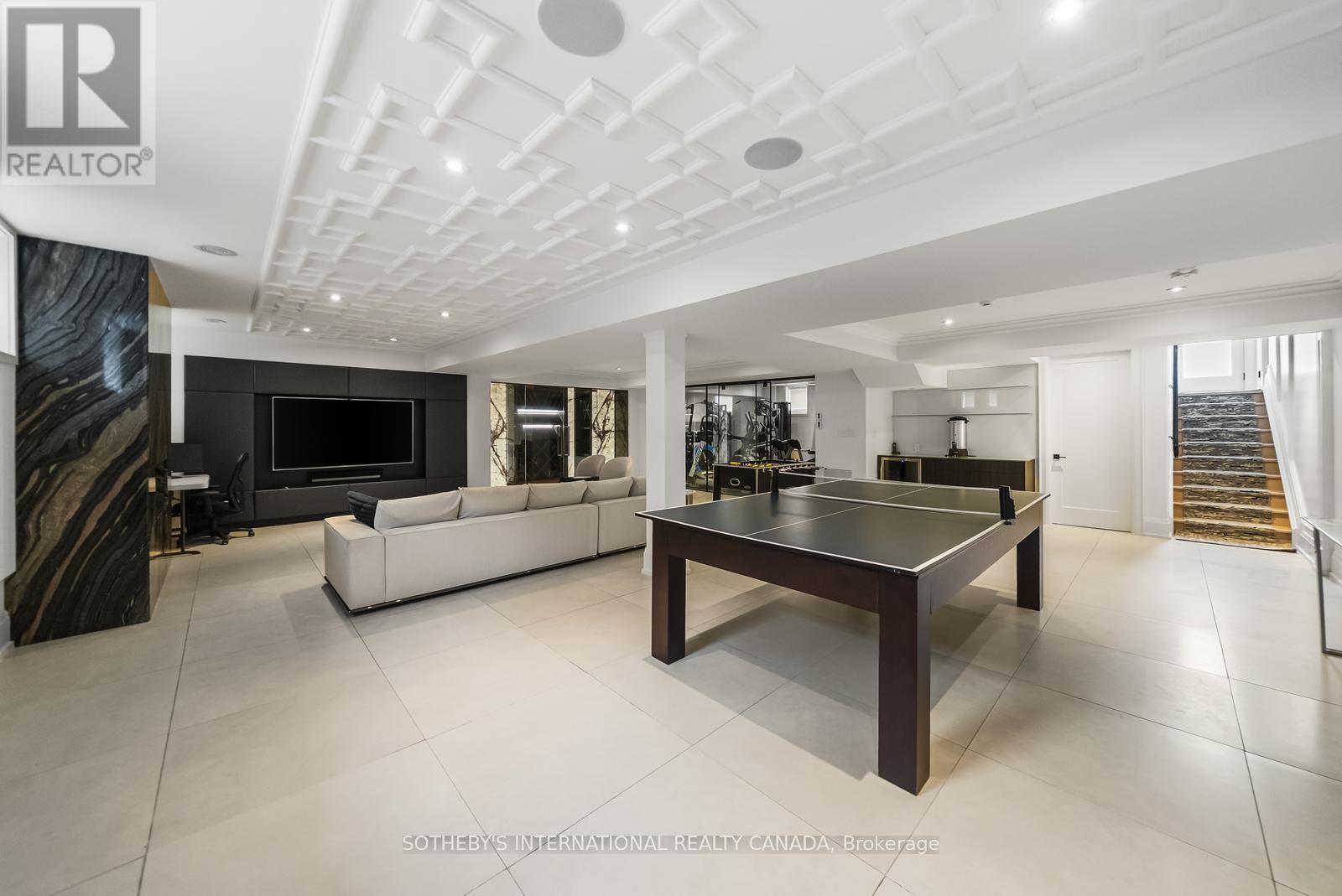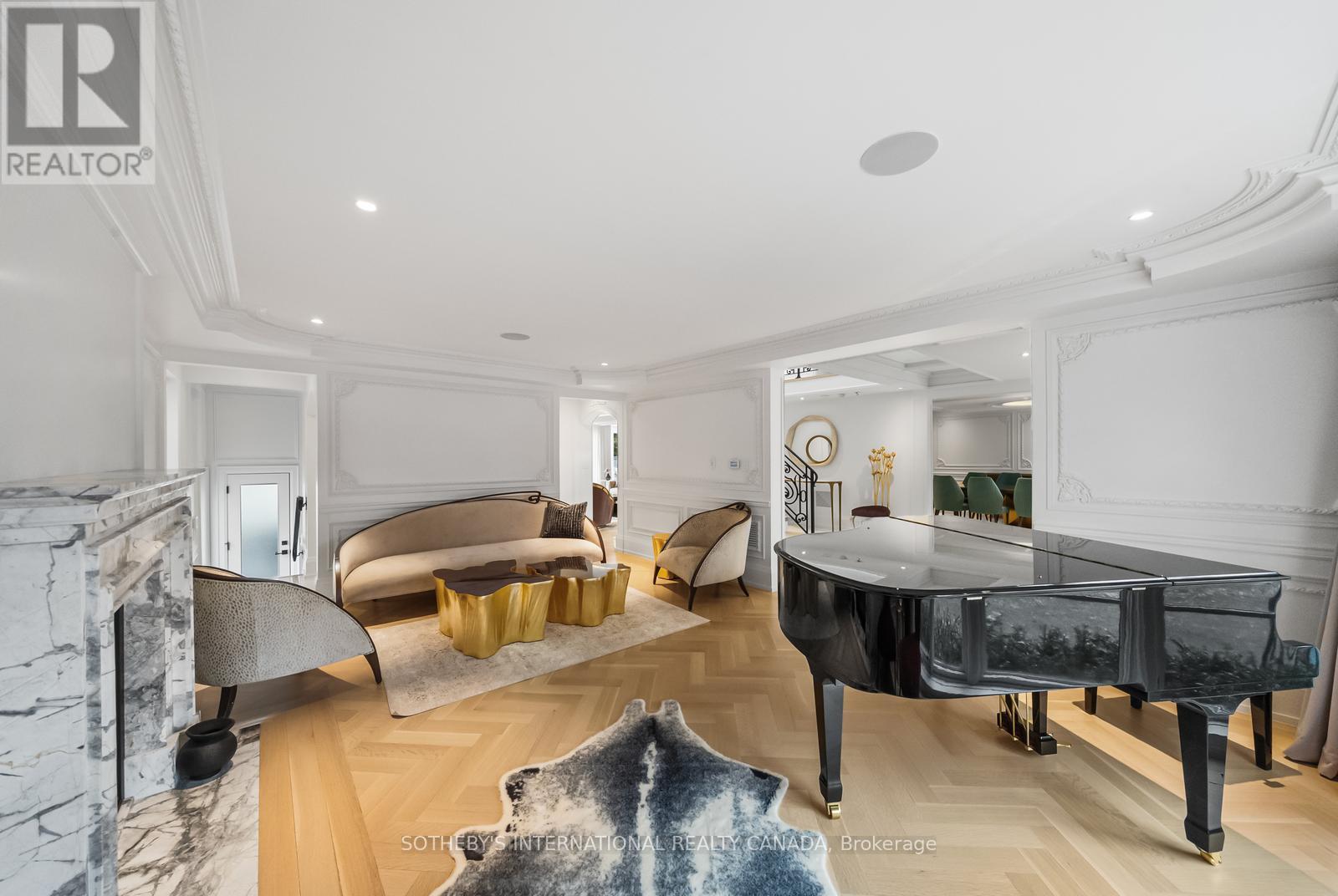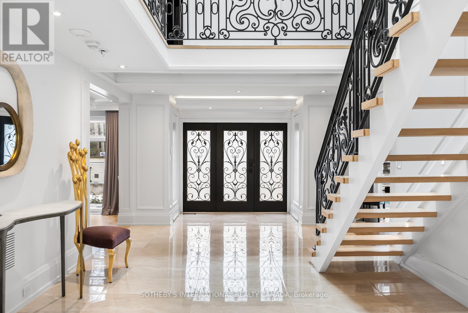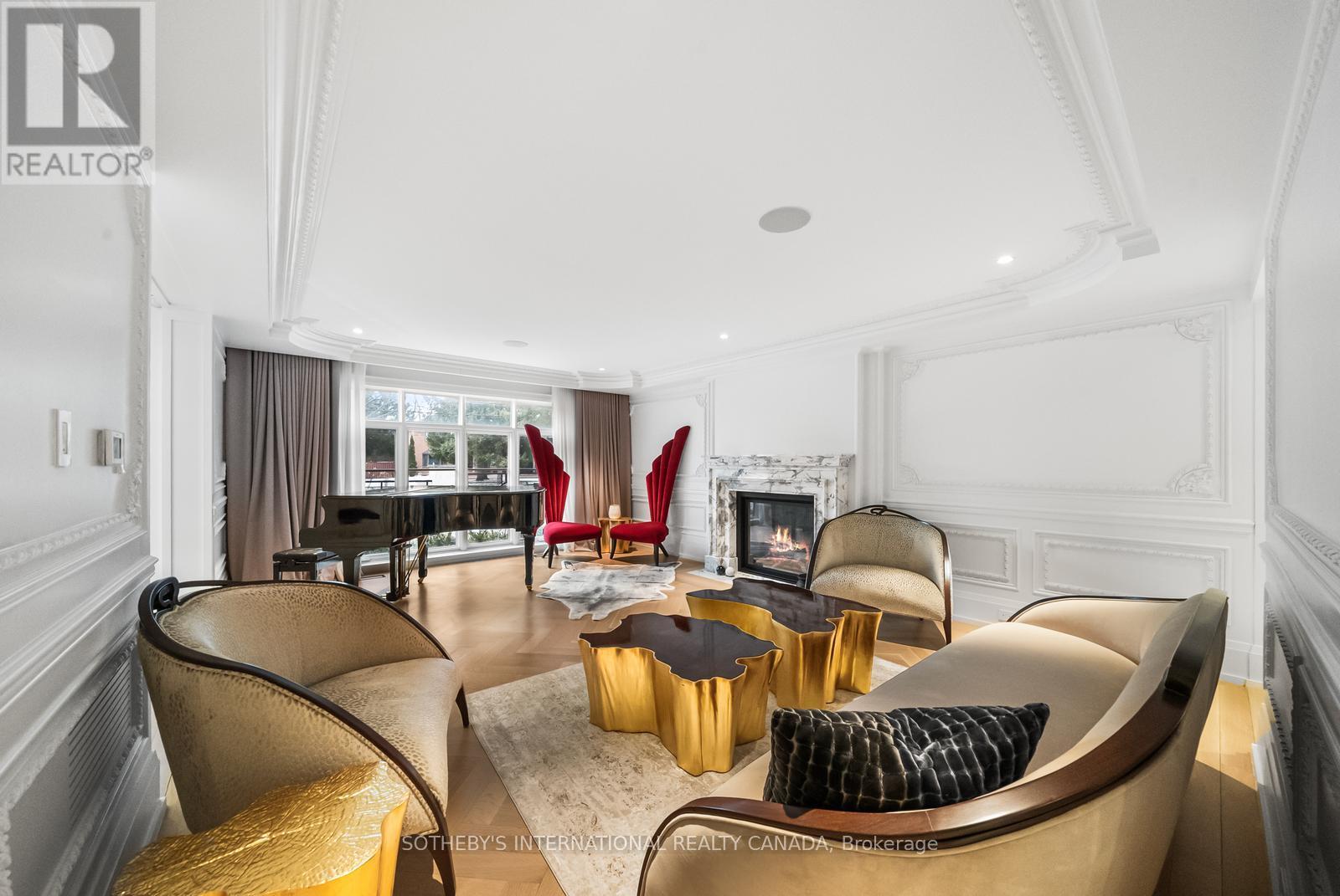 Welcome to this 'exceptional' home. A one-of-a-kind custom-build of the highest standard. The interior rooms are large, bright and spacious with the most 'exquisite' finishes throughout. Every detail to every aspect of every room has been meticulously designed creating an atmosphere of shear luxury and elegance. The large windows, skylights, open-concept, creative lighting and Smart Home System sets an atmosphere of living an upscale lifestyle. The stunning home sits on an expansive lot with a double garage, security gates, circular driveway and fountain as you enter the front yard on a heated stone entry. The private back yard has a heated stone patio and outdoor fireplace and is big enough to accommodate both a swimming pool and tennis court -a rare find! This beautiful home features 3-indoor and 2-outdoor gas fireplaces, gorgeous white oak flooring in the main rooms with heated porcelain floors on all 3 floors, hand-crafted, intricately designed molding are on ceilings and walls throughout; 2 skylights adorn the breakfast room as well as in the tower ceiling in the impressive center foyer. The gourmet kitchen is top of the line with built-in top-of-the line appliances. The primary bedroom hosts an anti-room that can be used as an office or private sitting room, gas fireplace, his-her walk-in closets, exquisite 5-piece ensuite and a walk-out to a private terrace with a fireplace and hot tub overlooking the backyard. There is a 2nd floor office/bedroom and 2 more bedrooms with ensuites. The lower level has a 5th bedroom with ensuite bath, a recreation and games room, fireplace, walk-in, temperature controlled wine closet with built-in cabinetry, a glassed-in exercise room big enough to hold a lot of work out equipment, heated porcelain flooring. There are 2 laundry rooms - one on the 2nd floor and one on the lower level. This home is for a buyer who appreciate exquisite design and looking for a luxurious and comfortable lifestyle. Don't miss it it's the best! (id:64974)