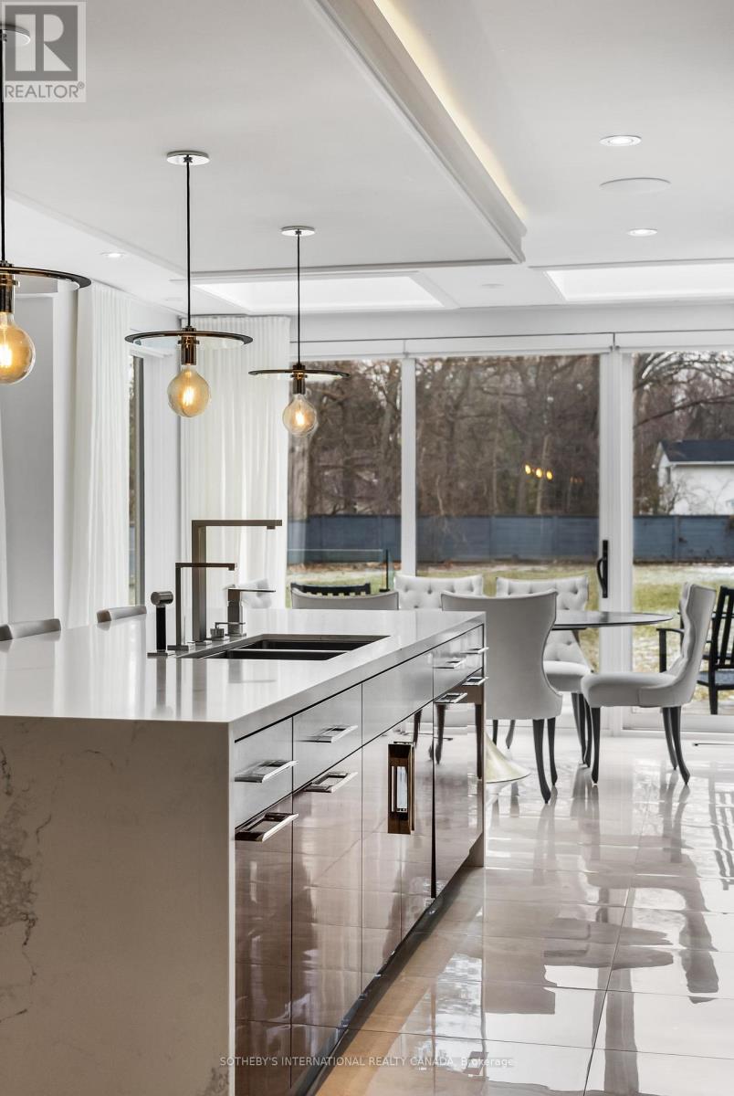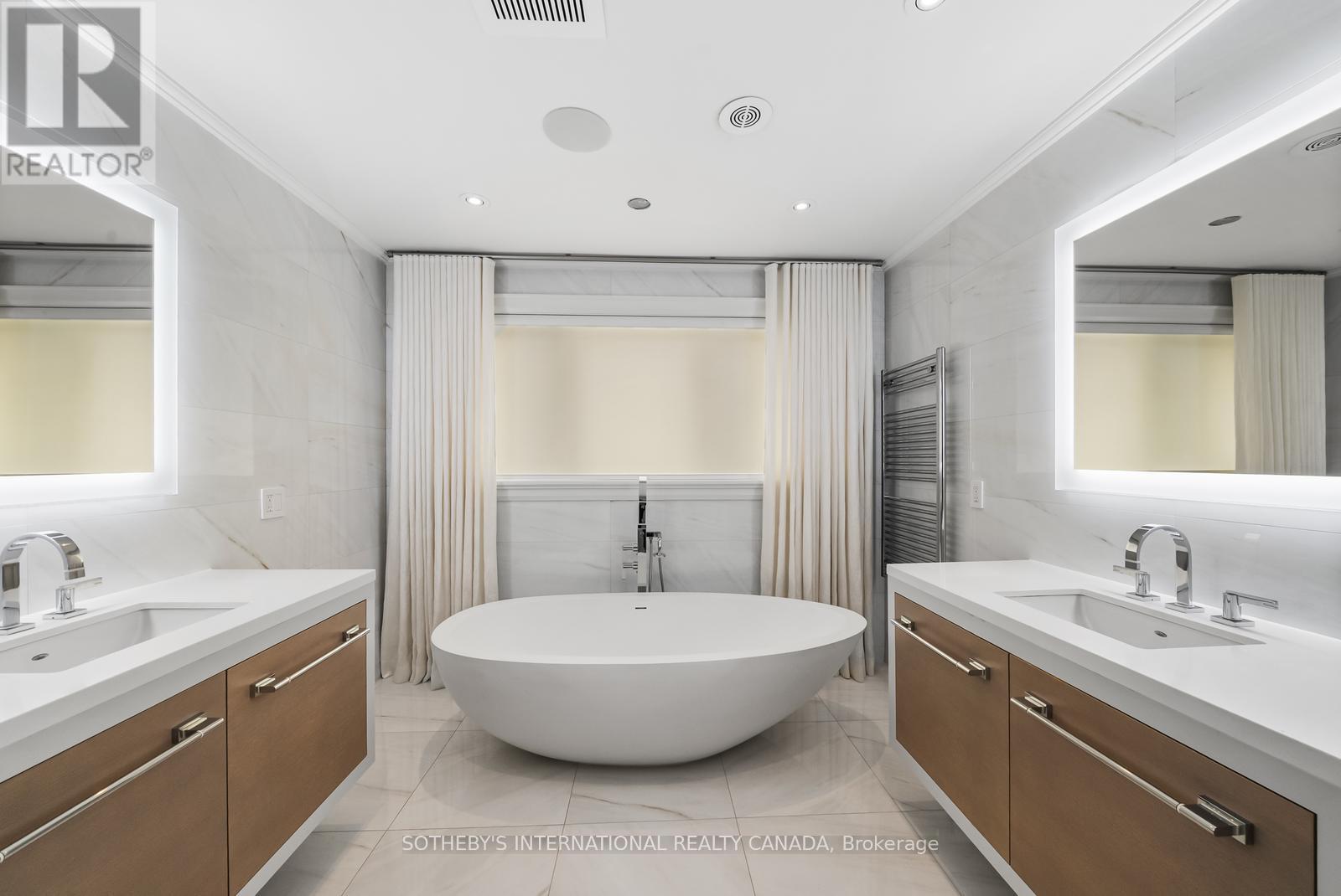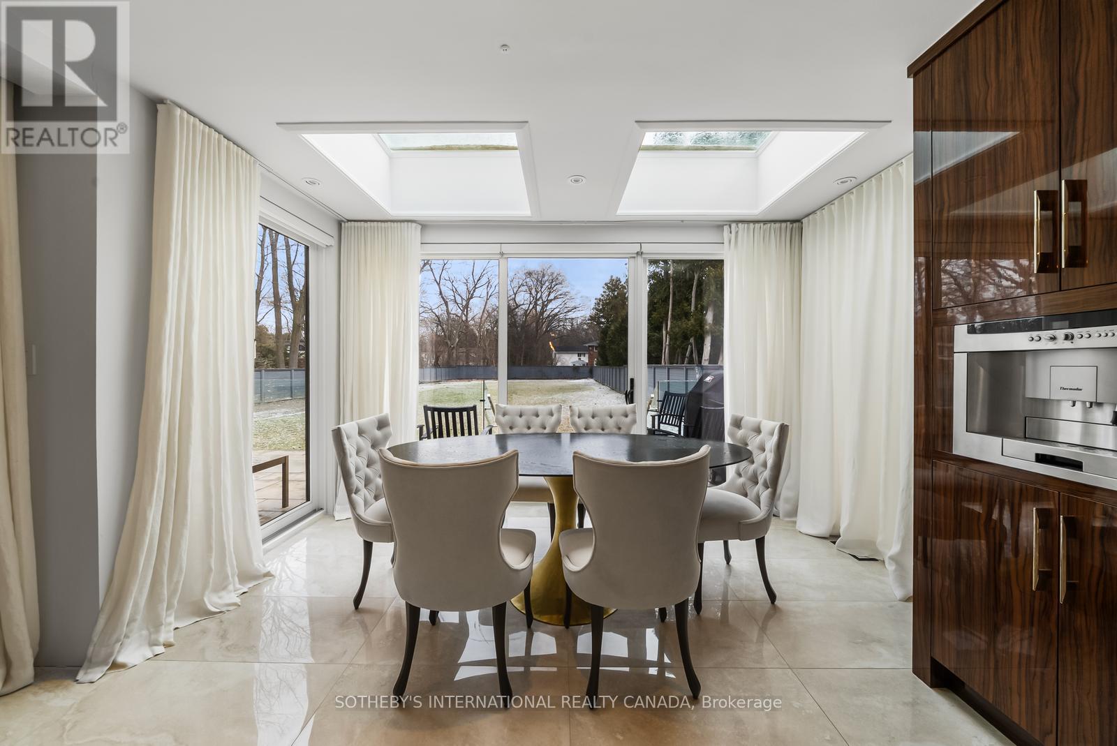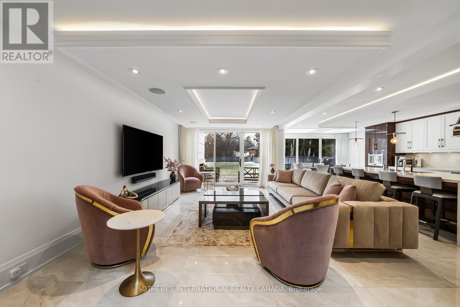 Welcome to this 'exceptional' home. A one-of-a-kind custom-build of the highest standard. The interior rooms are large, bright and spacious with the most 'exquisite' finishes throughout. Every detail to every aspect of every room has been meticulously designed creating an atmosphere of shear luxury and elegance. The large windows, skylights, open-concept, creative lighting and Smart Home System sets an atmosphere of living an upscale lifestyle. The stunning home sits on an expansive lot with a double garage, security gates, circular driveway and fountain as you enter the front yard on a heated stone entry. The private back yard has a heated stone patio and outdoor fireplace and is big enough to accommodate both a swimming pool and tennis court -a rare find! This beautiful home features 3-indoor and 2-outdoor gas fireplaces, gorgeous white oak flooring in the main rooms with heated porcelain floors on all 3 floors, hand-crafted, intricately designed molding are on ceilings and walls throughout; 2 skylights adorn the breakfast room as well as in the tower ceiling in the impressive center foyer. The gourmet kitchen is top of the line with built-in top-of-the line appliances. The primary bedroom hosts an anti-room that can be used as an office or private sitting room, gas fireplace, his-her walk-in closets, exquisite 5-piece ensuite and a walk-out to a private terrace with a fireplace and hot tub overlooking the backyard. There is a 2nd floor office/bedroom and 2 more bedrooms with ensuites. The lower level has a 5th bedroom with ensuite bath, a recreation and games room, fireplace, walk-in, temperature controlled wine closet with built-in cabinetry, a glassed-in exercise room big enough to hold a lot of work out equipment, heated porcelain flooring. There are 2 laundry rooms - one on the 2nd floor and one on the lower level. This home is for a buyer who appreciate exquisite design and looking for a luxurious and comfortable lifestyle. Don't miss it it's the best! (id:64974)