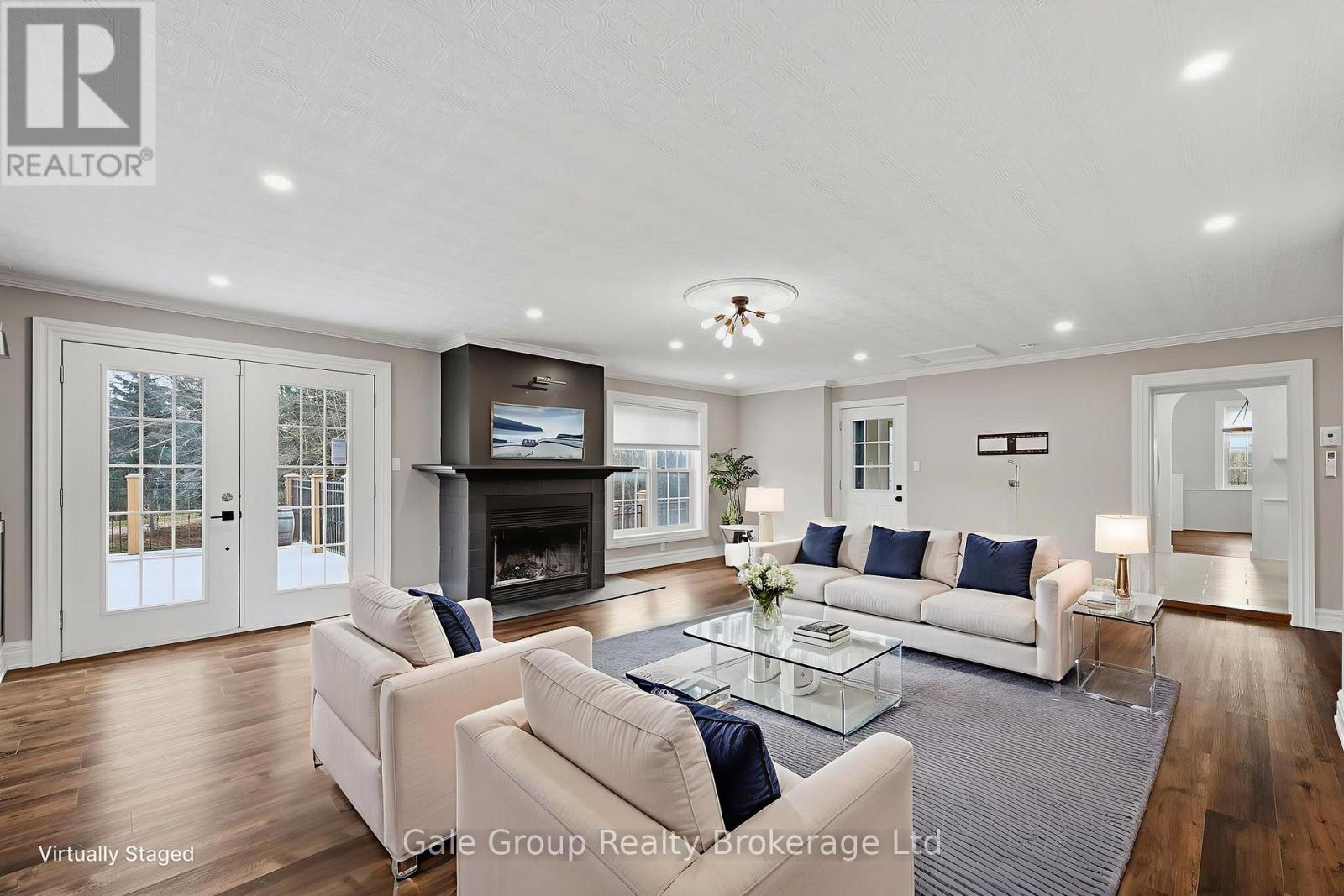 Discover the perfect blend of historic charm and modern luxury in this beautifully renovated home on 12 acres just steps from serene Alder Lake in New Dundee. Sun-filled, spacious rooms offer comfort and elegance, while the gourmet kitchen with high-end appliances provides a stylish, functional centerpiece. The main floor includes space for a fourth bedroom, and the finished walk-out basement offers in-law suite possibilities. Cozy up around the wood-burning fireplace in the inviting family room, perfect for gatherings. Outside, a heated 23 x 35 workshop and 20 x 23 drive shed provide ample space for equipment or storage, while trails wind across the property to the lake, ideal for walking, riding, or enjoying nature. Additional features and updates include an XL wood-burning cook stove, new soffit and fascia, natural gas-heated workshop with hot and cold water, new deck, new boiler system, steel roof, and a 60-amp service to the workshop. Located just a short drive to Kitchener, Waterloo, and 401 access, this 12-acre retreat offers the perfect balance of peaceful country living and modern convenience. (id:64974)