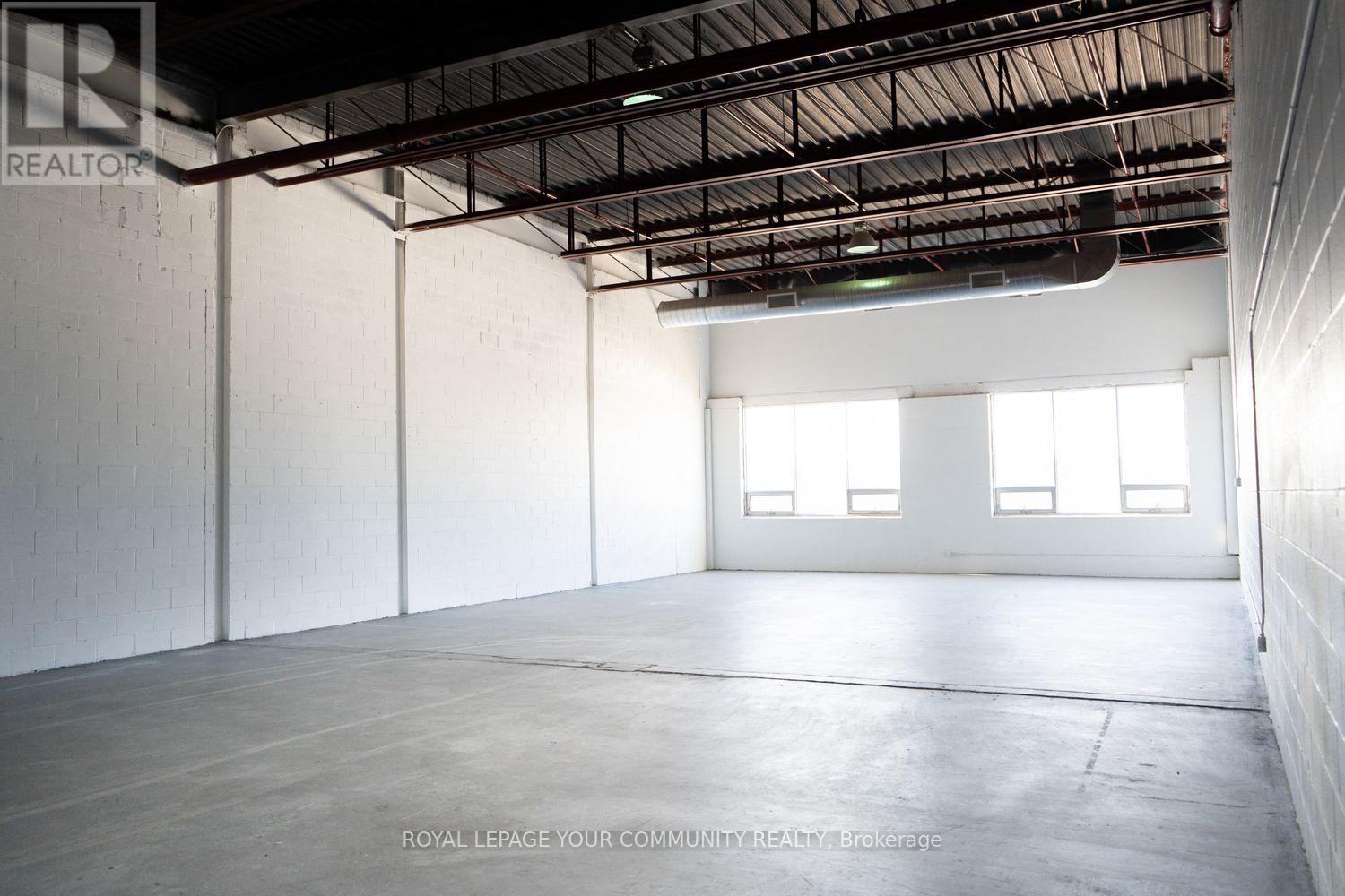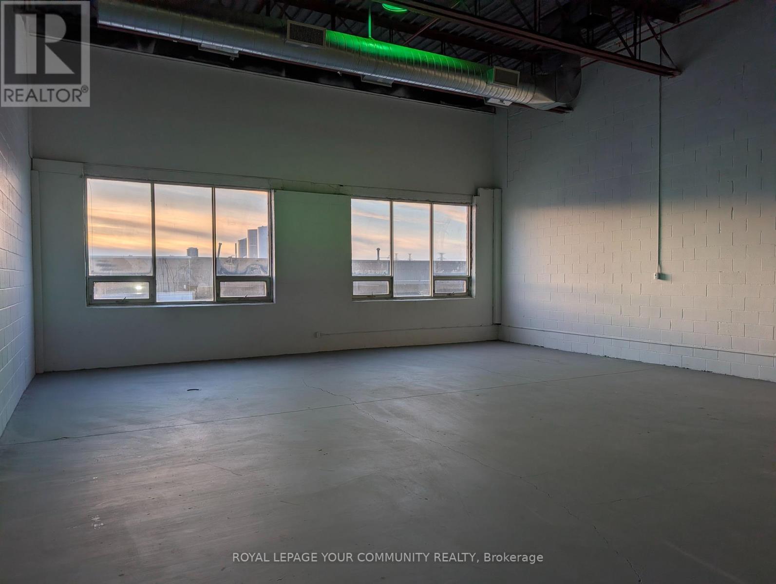 Well-priced, bright and very clean industrial style commercial space in an attractive property located in the heart of the Eglinton / O'Connor industrial node. Efficient clear-span rectangular space approx. 32 ft x 81 ft with approx. 17 feet clear ceiling height, polished concrete floors and large operable west facing windows. Roll up shipping door (8 ft.) opening to a wide common corridor with a short route to convenient common truck level shipping. LED lighting helps to lower tenant hydro costs. Dedicated efficient HVAC. 6OOV 3 phase power. Private 2 piece washroom and plumbing roughed in for kitchenette or other use. Hydro and gas utilities paid by tenant. Abundance of free surface parking. Many light industrial uses accepted, but no food production, woodworking, heavy industrial, or automotive. Very well suited to artist or designer studios, film / TV / content production, educational uses and for businesses needing clean open space for their expanding office requirements. Total monthly cost before HST, hydro & gas is $5,470 + HST + gas utility + hydro utility. (id:64974)