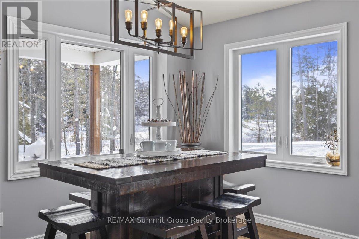 This custom-built raised bungalow is designed for anyone looking to simplify without sacrificing comfort or quality. Built in 2021, it offers a layout that feels easy, intentional, and well-suited to everyday living. Located on a quiet cul-de-sac in a newer subdivision in the village of Holland Centre, the home is surrounded by newer, well-kept properties, with a community park just a short walk up the street and the rail trail nearby. Inside, the main floor is bright and welcoming, with cathedral ceilings connecting the kitchen, dining, and living areas. Large windows bring in plenty of natural light, and engineered hardwood floors add warmth throughout the main living space. A propane fireplace in the living room adds comfort and creates a natural gathering space. The kitchen is well organized and thoughtfully designed, featuring a central movable island, ample cabinetry, and a generously sized walk-in pantry. A door off the kitchen leads directly to the covered side deck, making it easy to step outside and BBQ all year round. The main floor primary bedroom is comfortably oversized and includes a sitting area, walkout access to the covered side deck, a walk-in closet, and an ensuite bathroom with room to add a soaker tub. A separate laundry and mudroom provide direct access to the attached insulated steel-clad garage, offering everyday convenience and storage. The fully finished lower level features a large family room with a propane fireplace, two additional bedrooms, a full bathroom, and storage, offering flexible space for older children, guests, or everyday living. Outside, the yard is well-maintained and easy to manage, with plenty of room for gardening, along with a 10x20 shed, an asphalt driveway completed in 2024, ample parking, and a hydro hookup for a camper or RV. This thoughtfully planned home is a great fit for those looking to downsize without giving up comfort, or for families looking for a well-planned, move-in-ready home that's easy to live in. (id:64974)