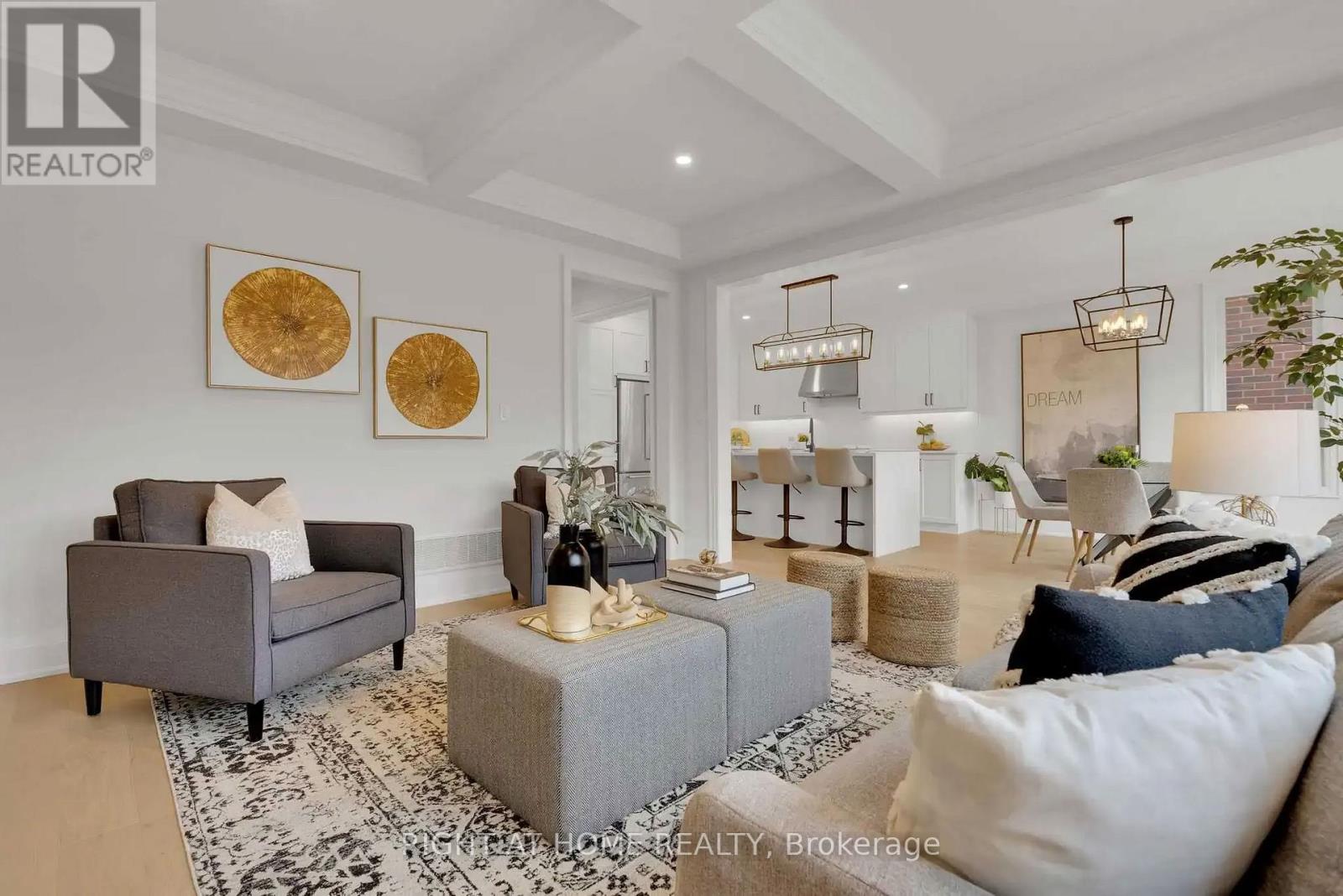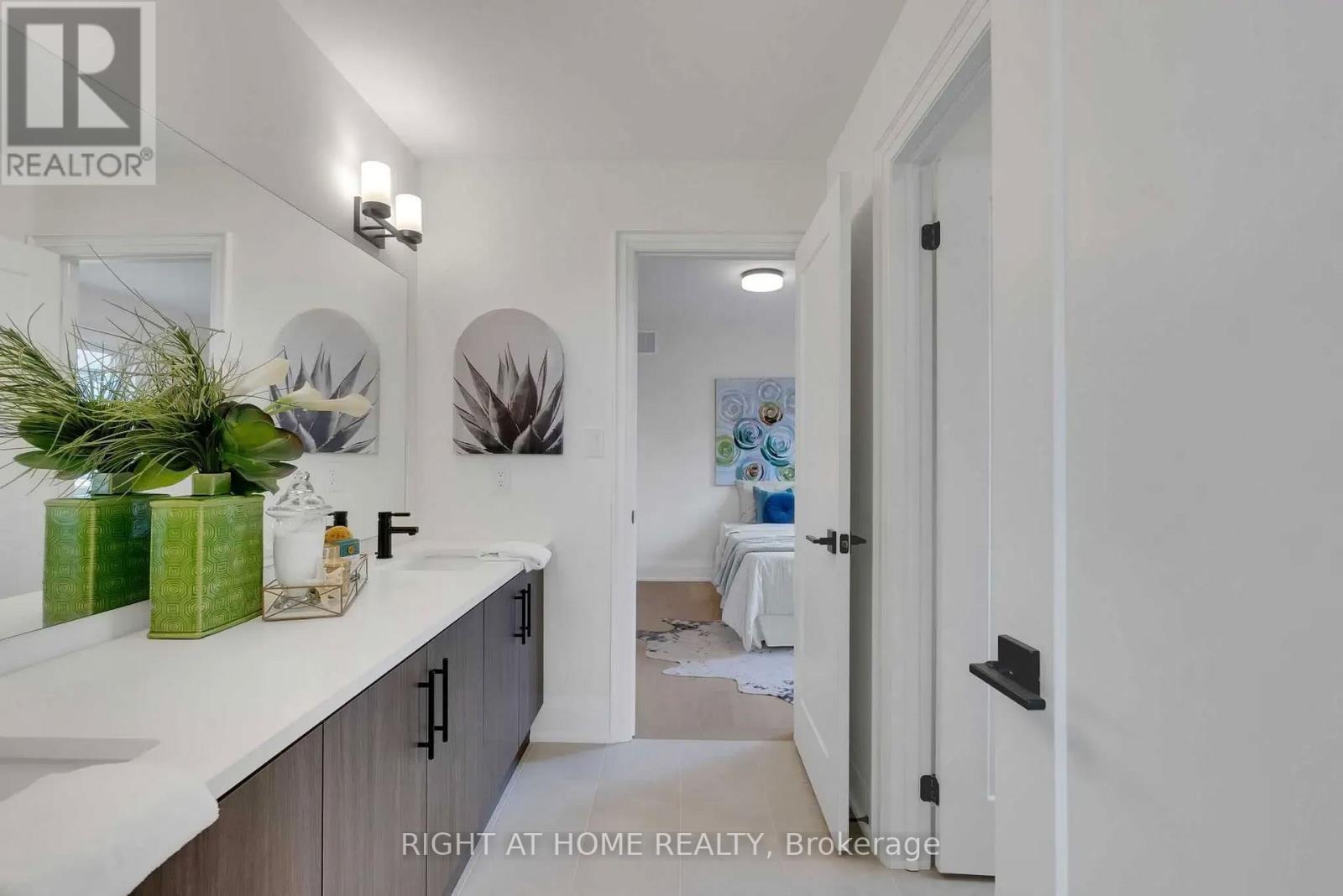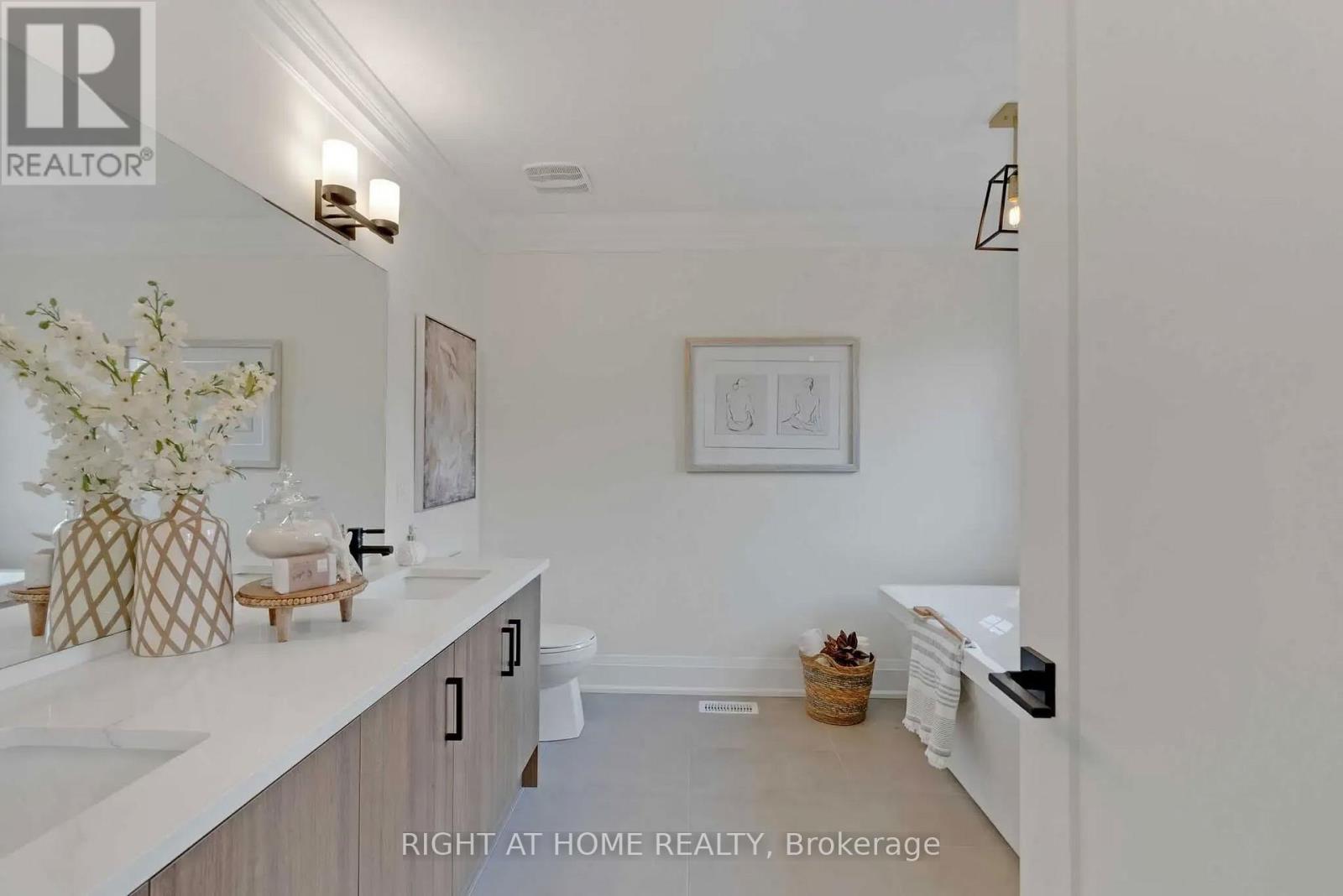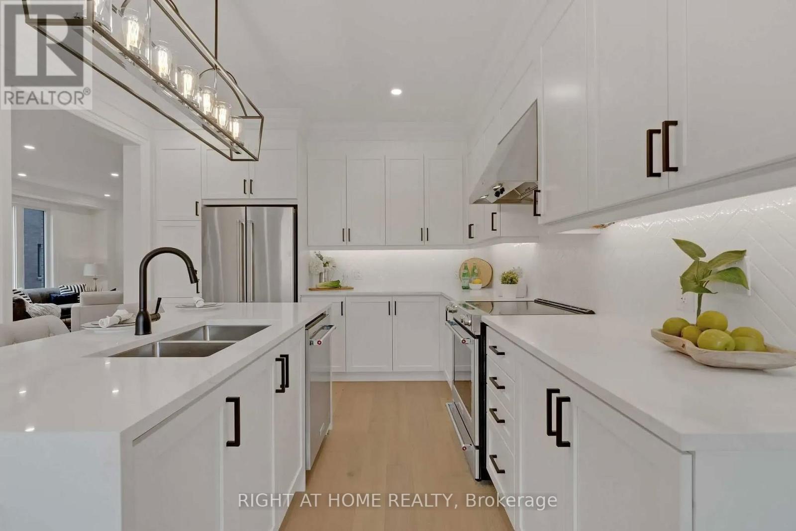 Welcome to this stunning, never-lived-in luxury home featuring over $300,000 in builder upgrades, situated on a massive pie-shaped lot - perfect for a swimming pool! Offering more than 3,800 sq. ft. of finished living space, this home is ready for its first occupant and comes with full Tarion Warranty coverage.Step inside and experience modern elegance with an open-concept layout, oak hardwood flooring, and soaring 9' smooth ceilings adorned with pot lights and crown moulding throughout the main level.The custom chef's kitchen showcases a quartz waterfall island with an extended breakfast bar, upgraded cabinetry, and KitchenAid stainless steel appliances - ideal for entertaining and family gatherings.Enjoy the exquisite family room featuring coffered ceilings and a gas fireplace, creating a perfect space to relax in comfort and style.Ascend the solid oak staircase to the second floor, where you'll find the primary bedroom retreat complete with a 5-piece ensuite boasting a double vanity, custom glass shower, and soaker tub. Each bedroom has access to its own ensuite bathroom, and the upper level also includes a convenient laundry room and an additional loft area ideal for a home office. Oak hardwood flooring continues throughout the second level.The basement has been professionally finished by the builder, featuring a 3-piece bathroom, offering additional living or recreational space.Enjoy direct access to the double car garage through a mudroom with ceramic flooring and custom built-ins for added convenience.Located on a quiet crescent in one of Bowmanville's most prestigious neighbourhoods, close to parks, schools, transit, and all major amenities, with easy access to Highways 401 & 407. (id:64974)