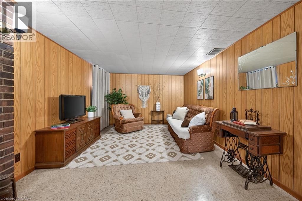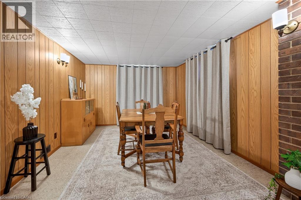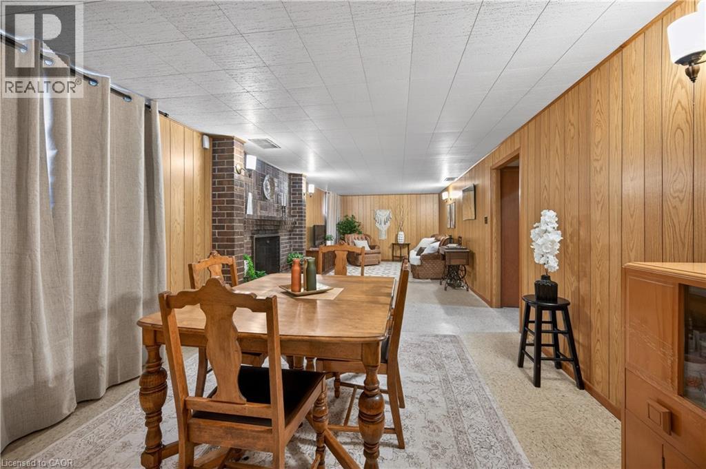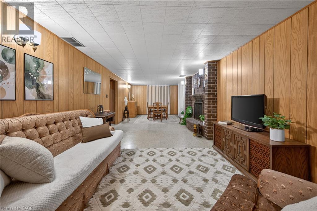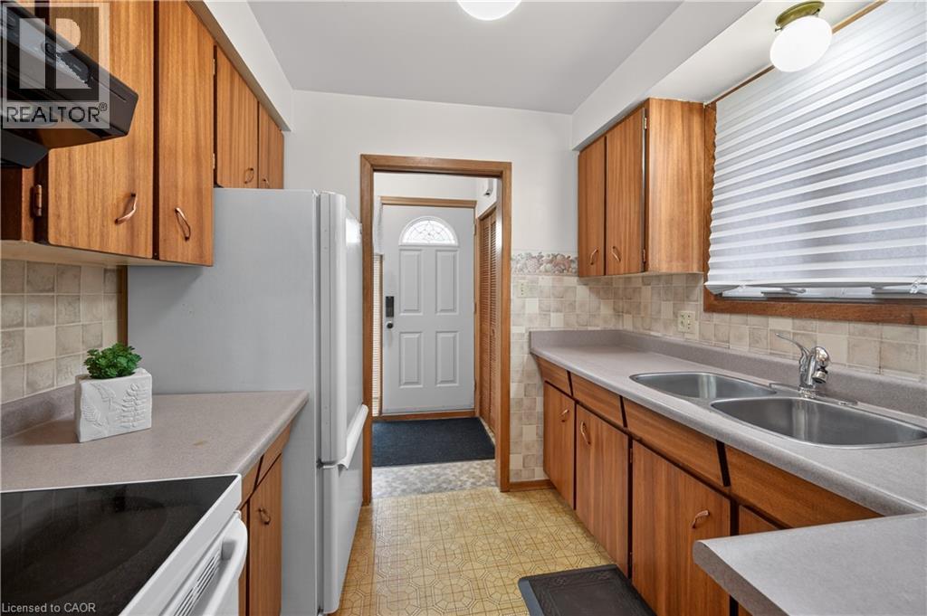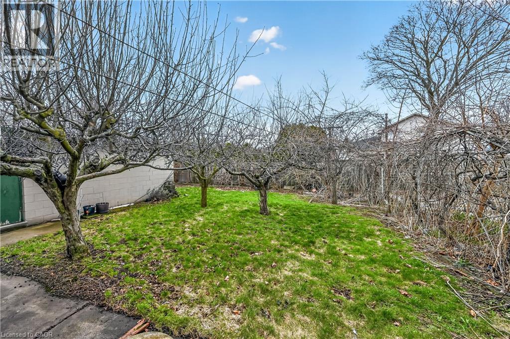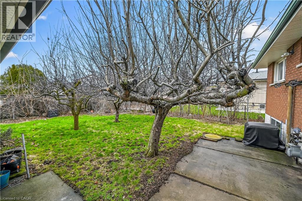 Welcome to 135 Nugent Drive. This solid brick 3-bedroom bungalow is located in the desirable Kentley neighbourhood of Hamilton East. A classic home with a functional layout and endless potential, this home is perfect for first-time buyers, downsizers, or investors. The main level features a bright and inviting living space with large windows that fill the home with natural light. The well-appointed kitchen offers ample cabinetry and flows directly into the dining area—ideal for everyday living and entertaining. The living and dining areas feature original decorative plaster ceilings and original hardwood floors run through the living room and into all three spacious bedrooms. All three bedrooms are conveniently located on the main floor, providing easy, one-level living. The basement is accessed via a private side entrance leading to a central landing, offering true separation for a potential in-law suite. This level includes a finished recreation room with a wood fireplace, plus a large unfinished utility wing. This functional space includes a laundry room, a furnace/workshop area with extensive built-in shelving, and a generous fruit cellar. The property sits on a deep lot featuring a huge, oversized double-car garage and a massive driveway, offering parking for multiple vehicles—perfect for families, hobbyists, or anyone needing extra space. The backyard includes a tidy concrete patio, four established fruit trees, and mature grapevines. Beyond the trees is an expansive grass area—formerly a vast vegetable garden—offering a large, open space ready for a new gardening project or custom landscaping. Located close to highways, schools, parks, shopping, churches and transit, this home delivers both comfort and convenience in a well-established community. A fantastic opportunity to own a solid bungalow with exceptional parking in a highly regarded, well-established community—don’t miss it. (id:64974)