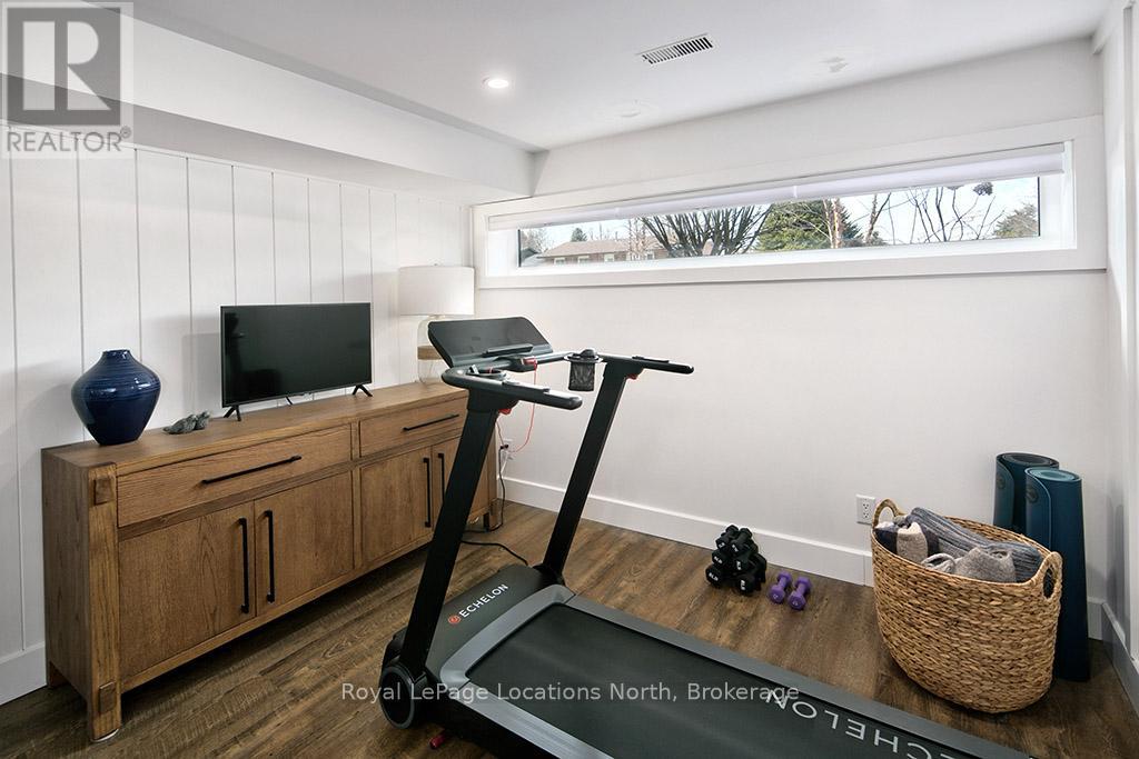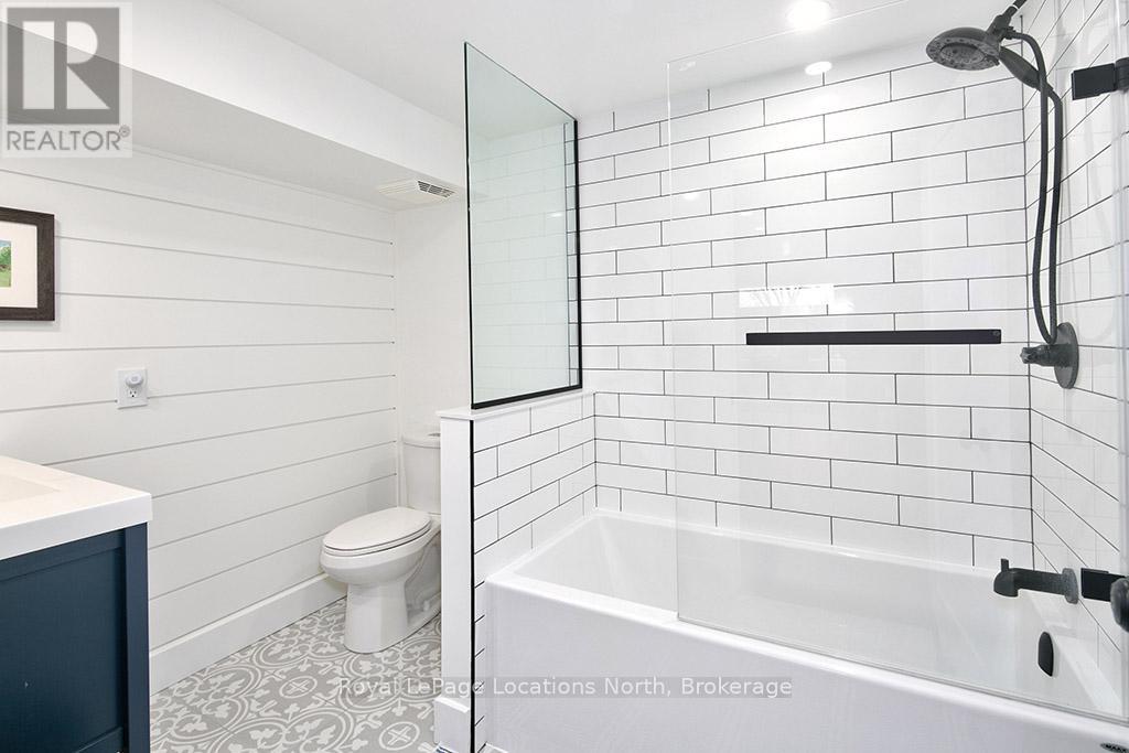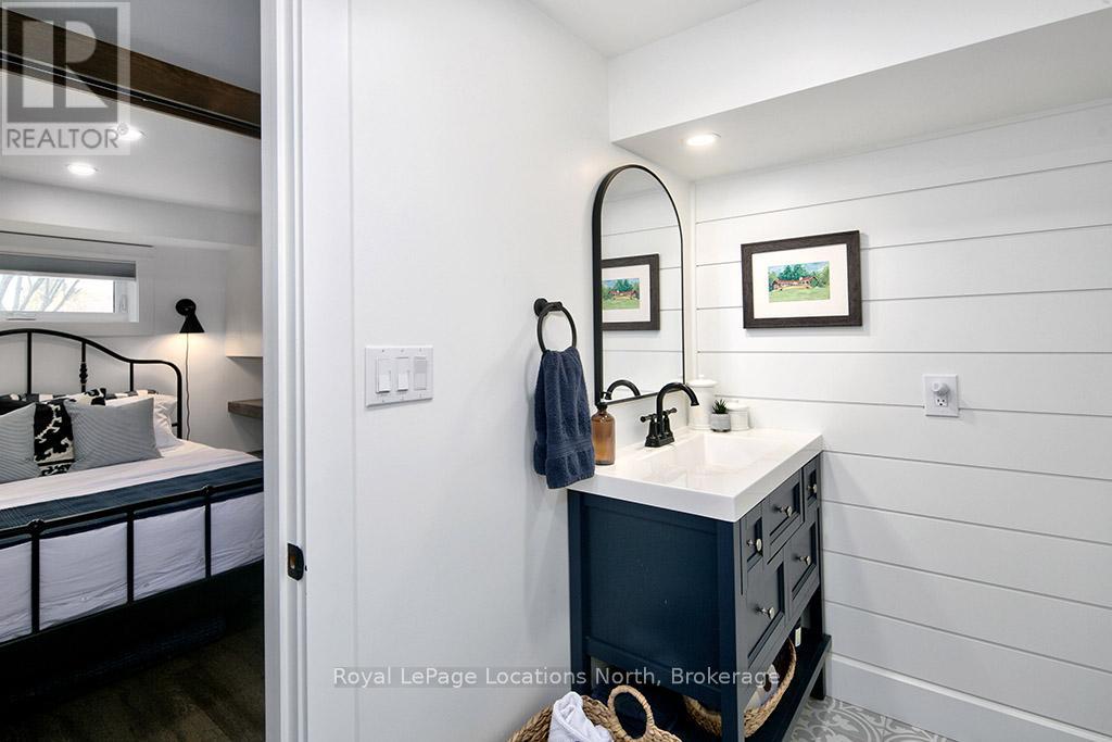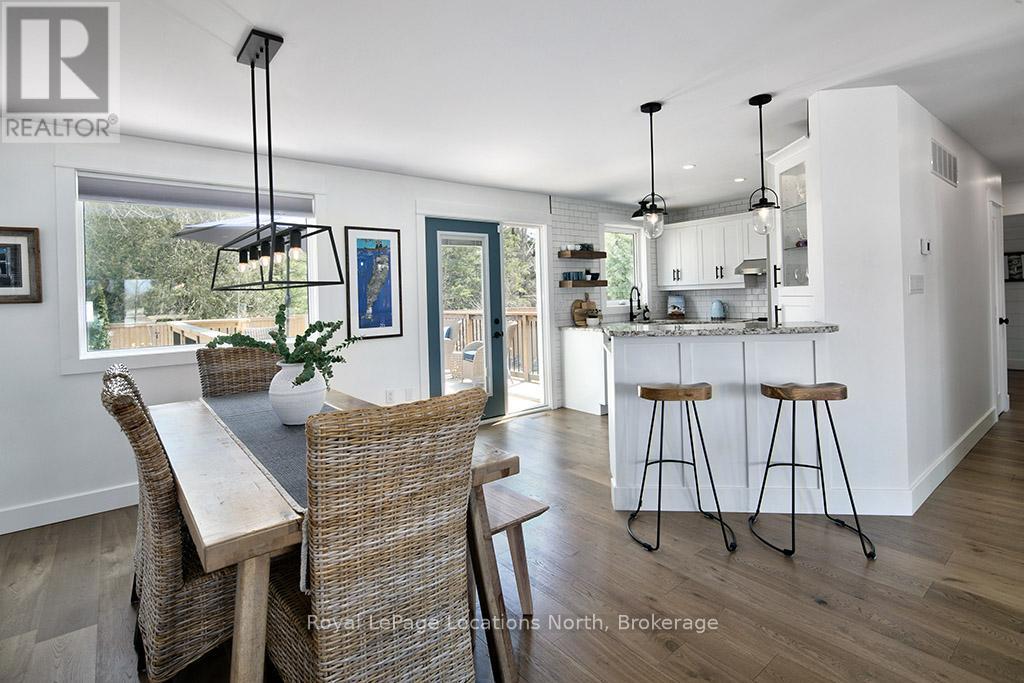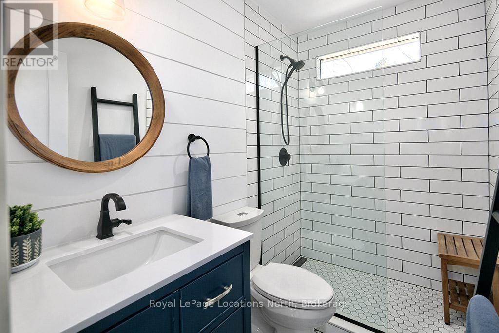 You can't put a price on the feeling this house gives you - warm, considered, and alive with personality. Completely reimagined from top to bottom, this raised bungalow gem sits on a generous 60 x 140 ft lot in one of Thornbury's most beloved in-town neighbourhoods - and there is simply nothing else like it on the market. ~1,900 sq ft of beautifully executed living space, 3 bedrooms on the main level (one used as office) plus 2 additional bedrooms, 4 piece bath recreation living room in a fully finished lower level. Perfect for full-time families, ski crews, downsizers, or professional couples-- your search is over! Every inch lovingly renovated: all new windows , new siding with exterior insulation (Van Dolders), engineered hardwood main level, luxury vinyl plank lower, custom kitchen with granite counters and new appliances, updated bathrooms with new vanities, tile, shower and tub(lower level), all new trim, doors and fixtures, wainscotting, magnificent shiplap accent walls, & 2 electric fireplaces one on each level.The backyard is where the magic really happens - cozy fire pit, hot tub, large patio, fully fenced back yard with back gate, & lush landscaping front and back. All on an incredible 60 x 140 ft lot. Big mechanicals done: Trane furnace (2019), metal roof (2019).Short drive to ski hills, golf courses in the Blue Mountains, steps to trails, parks, marina & Georgian Bay. Walkable to school, library, downtown restaurants and shops. Move in, unpack, exhale. (id:64974)