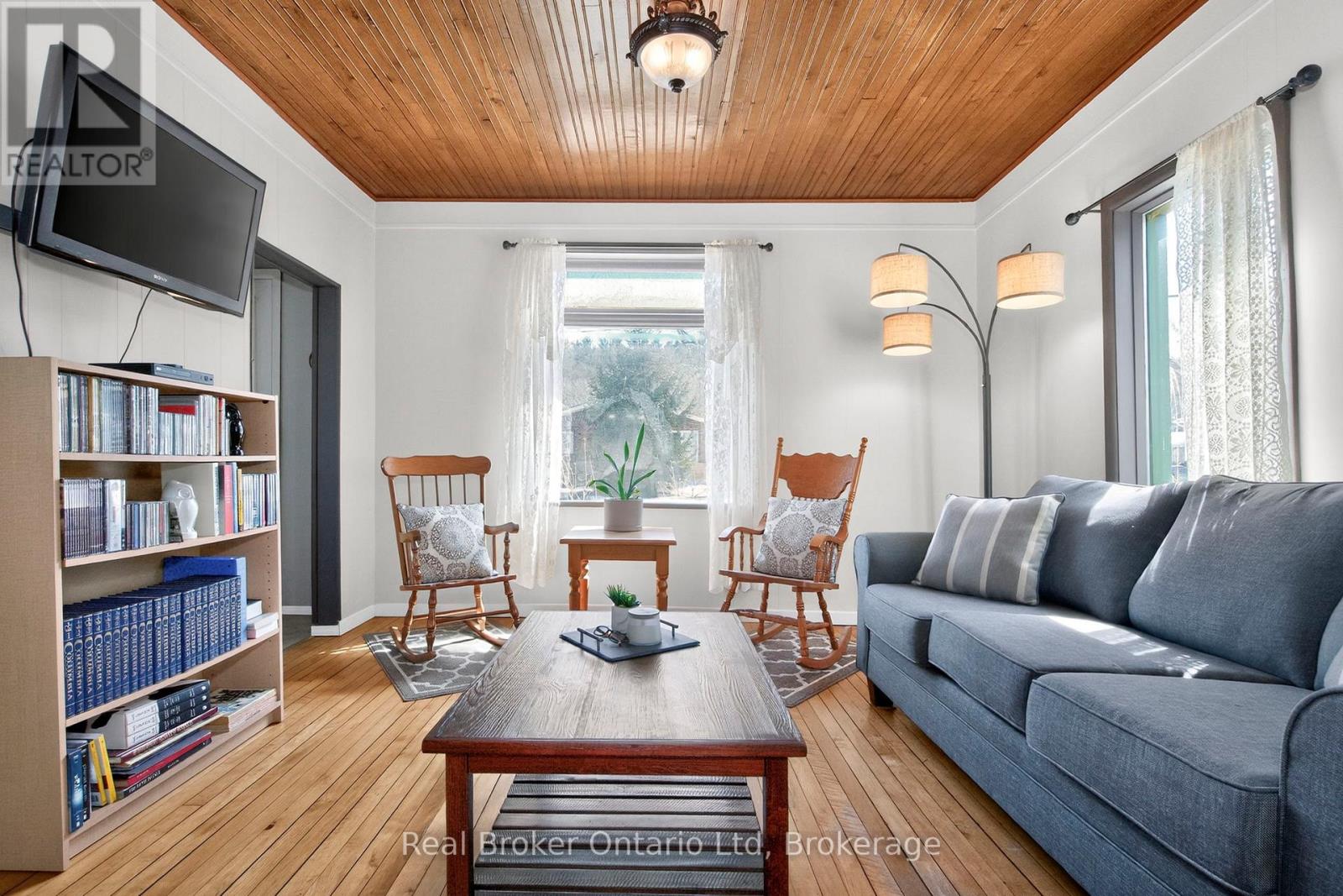 Modern updates blend seamlessly with the home's original charm and character in this beautifully maintained in-town property. You'll appreciate the many preserved features throughout, including original doors and hardware, hardwood floors, and high tongue-and-groove ceilings in the formal dining room, living room, and entryways. The spacious kitchen offers plenty of room for family gatherings and everyday living, while large windows bring in natural light and showcase the mature landscaping surrounding the property. Set on a huge in-town lot backing directly onto the Trans Canada Trail, this home provides privacy, space, and easy access to nature right from your backyard. Enjoy an easy walk to Penetang's waterfront trails, where you'll find a skate park, beach, basketball and volleyball courts, playground, splash pad, and the town dock - perfect for active families. This great family home features 3 bedrooms and 1 bathroom, along with an approximately 10' x 18' garage with an asphalt floor. A separate outbuilding offers additional storage or workshop space, and a loft, adding even more functionality to this charming property. This is your opportunity to own a character-filled home in a desirable in-town location and at an affordable price. (id:64974)