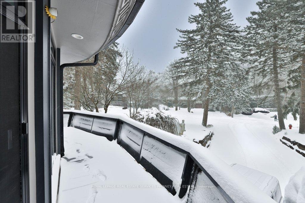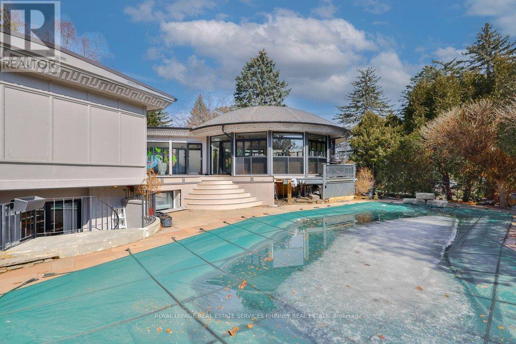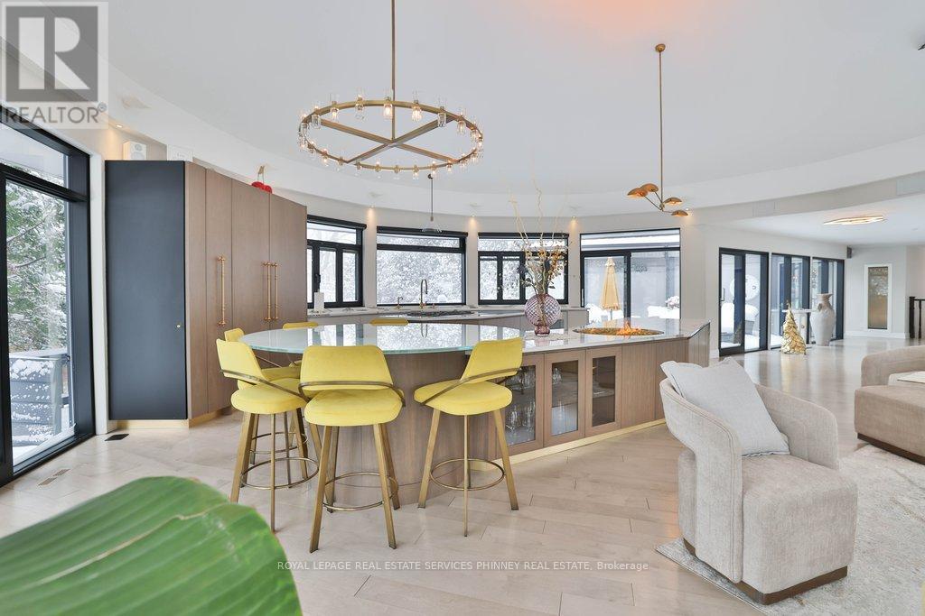 Designed as an elevated private residence for distinguished guests, this exceptional LP home offers rare opportunity for luxury short-term living in one of Mississauga's most exclusive enclaves. The property delivers privacy, architectural distinction, and resort-level amenities tailored for comfort, performance, and discretion. Bold contemporary exterior sets the tone with refined modern lines, expansive Bauhaus-style sliding doors, and premium materials that integrate seamlessly with the surrounding greenery. The layout is intentionally open and light-filled, creating a refined yet relaxed environment ideal for both personal retreat and high-level entertaining. At the heart of the home is a chef-calibre kitchen crafted for those who appreciate precision and quality. Outfitted with a Gaggenau range, refrigerator, and oven, the space is anchored by a custom six-person island featuring waterfall quartz countertops & a built-in electric fireplace, blending functionality w/ understated elegance-perfect for casual dining, working meals, or hosting select guests. Primary suite offers a tranquil escape, complete with spa-inspired finishes and access to a private terrace-providing a peaceful setting. Resort-style backyard with a saltwater swimming pool, hot tub, and composite deck provide a private environment for relaxation and recovery, enhanced by mature trees and architectural lighting. Treehouse adds a unique design element while offering additional storage or flexible use space. A rare highlight is the fully climate-controlled Outdoor Dome Gym, purpose-built for year-round training and wellness. Featuring cork flooring, expansive glass, this space accommodates personal workouts, recovery sessions, yoga, or performance review. Offering privacy, prestige, and thoughtfully curated amenities, this residence is an ideal turnkey solution for executive relocations, professional athletes, or high-profile guests seeking refined short-term accommodation without compromise. (id:64974)