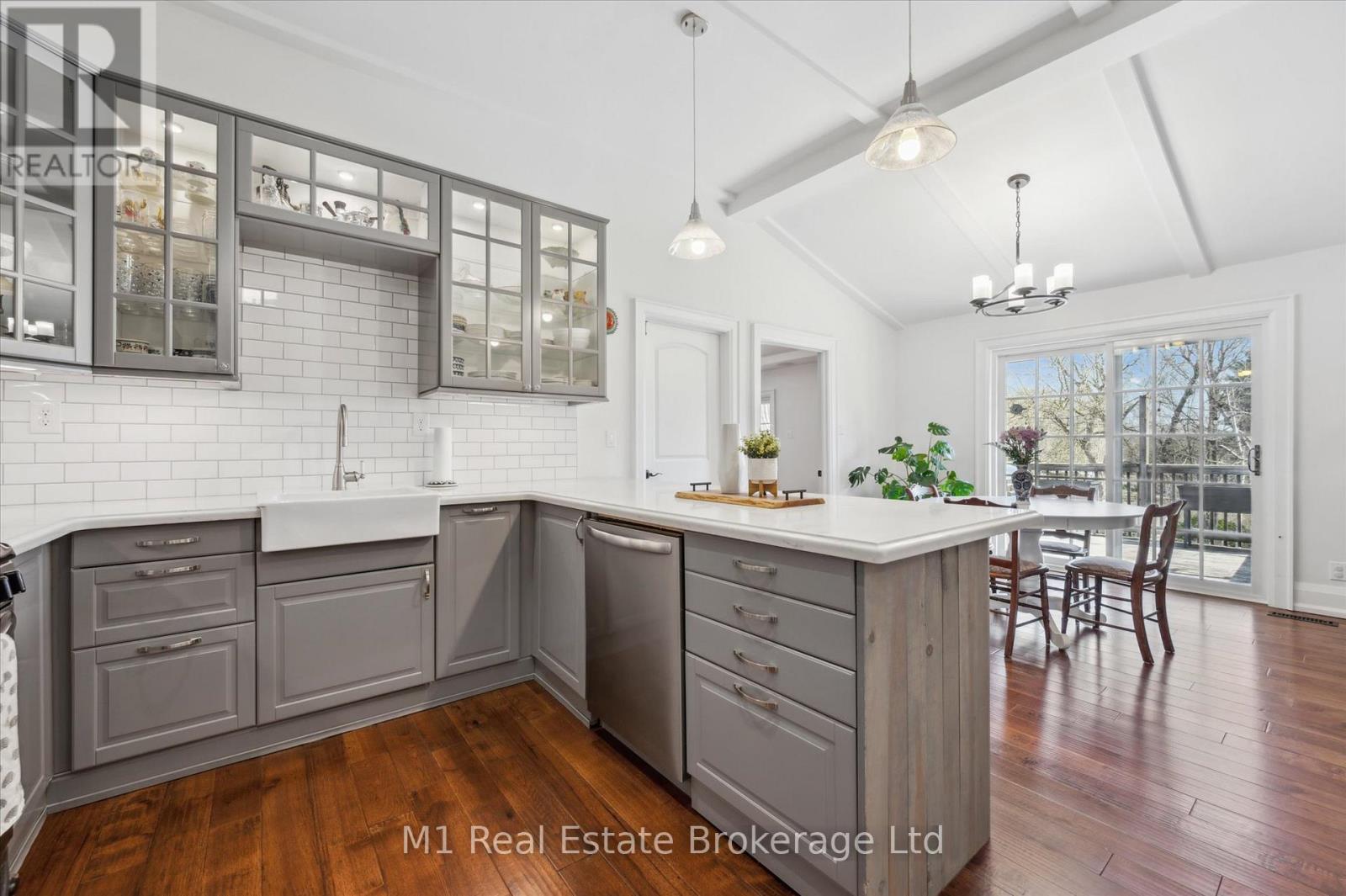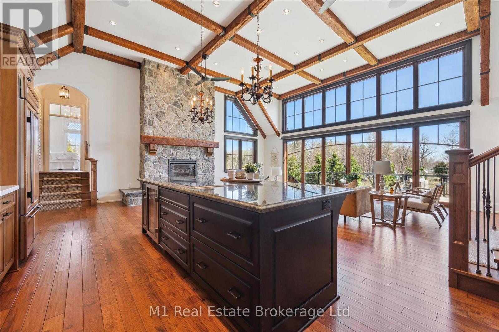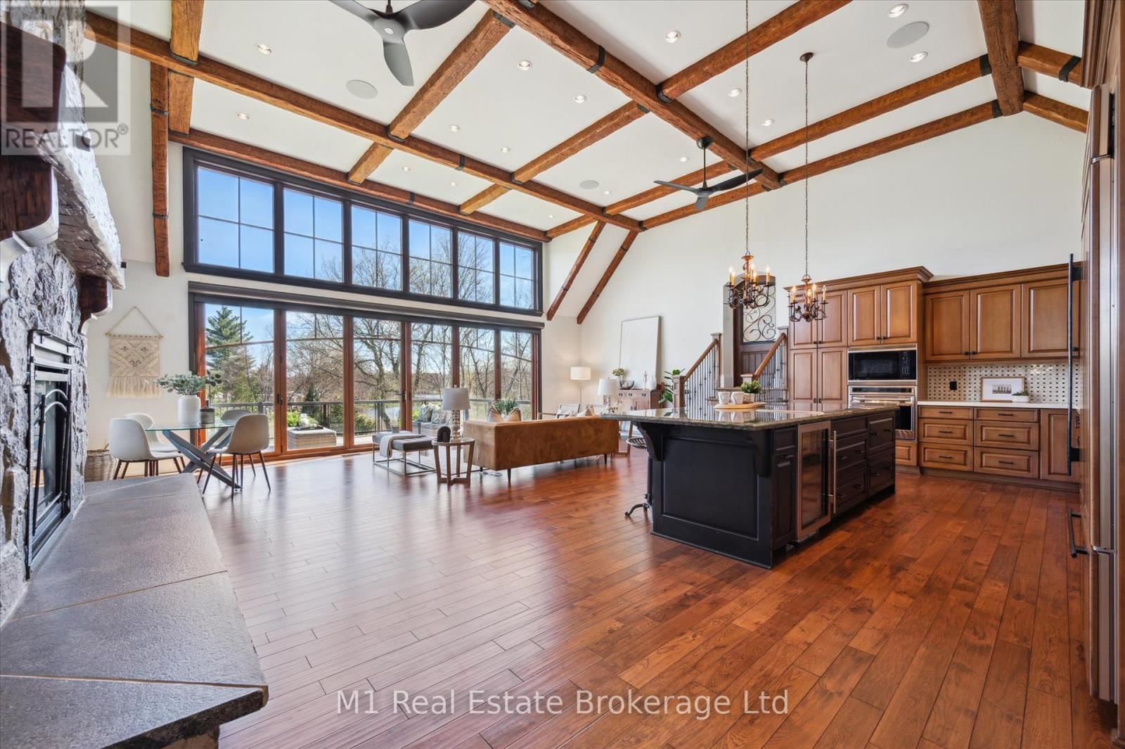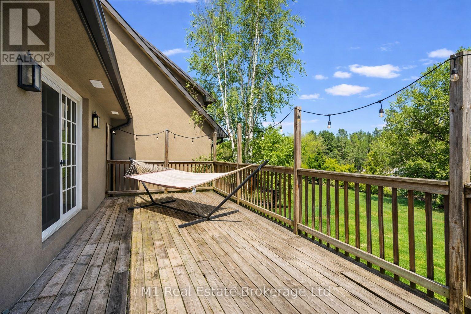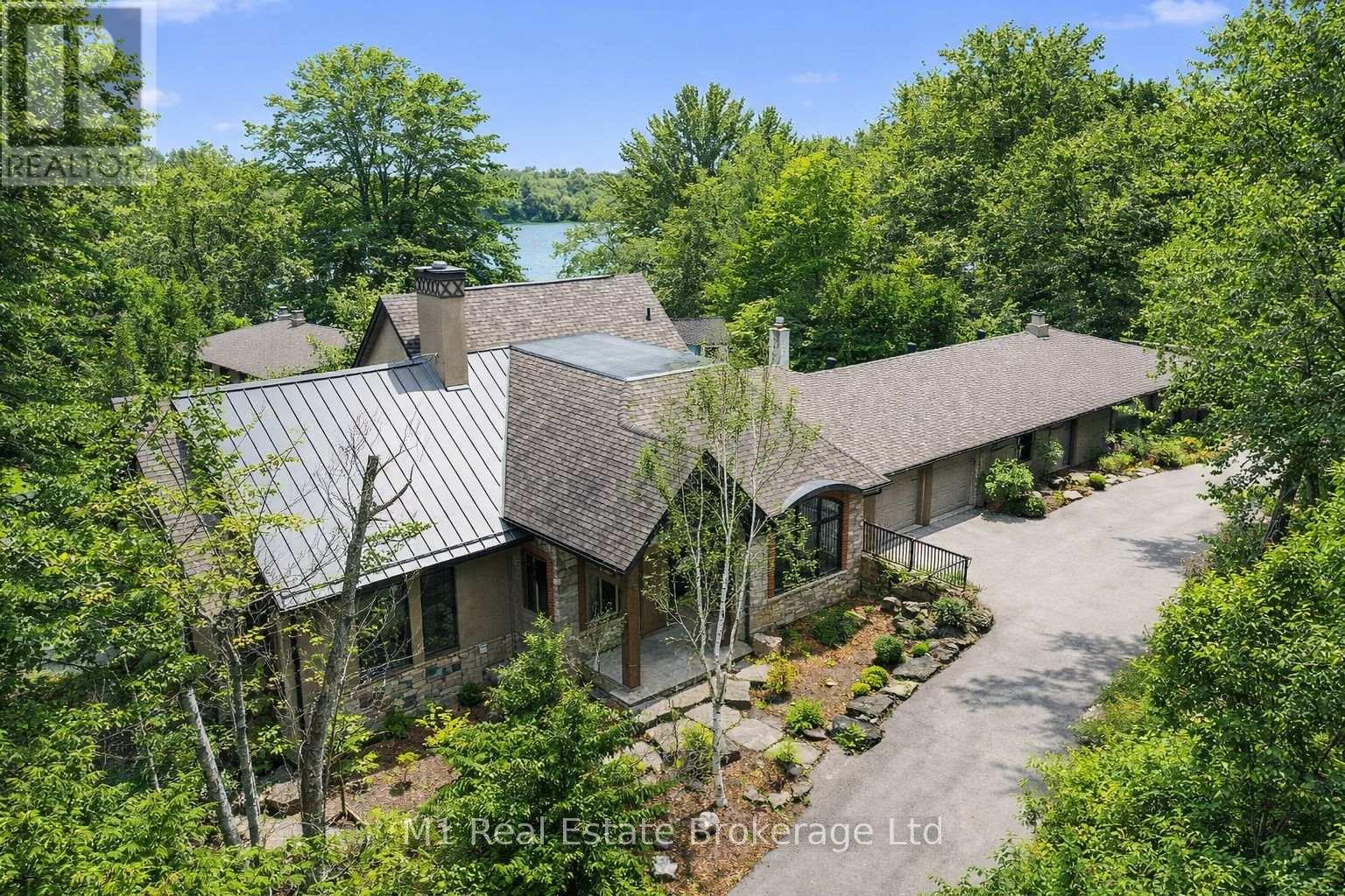 Exceptional Lake view Estate with Two Residences ideal for Multi-Generational Living. Welcome to this rareand remarkable opportunity to own a stunning lake view property featuring not just one, but two self-contained homes nestled on nearly one acre of beautifully landscaped land. The main residence is a warm and inviting 3-bedroom, 3-bathroom bungalow that seamlessly blends classic charm with modern upgrades. The heart of the home is a newly custom-designed kitchen that is truly a chefs dream, featuring high-end finishes, sleek appliances, and a layout built for entertaining. A recently added Chefs Pantry enhances the kitchens functionality and storage space ideal for the culinary enthusiast. Just steps away,the second home is a custom-built 2-bedroom, 2.5-bathroom bungaloft and offers a striking architectural design, complete with soaring cathedral ceilings, floor-to-ceiling windows, and breathtaking lake views.The open and airy interior is flooded with natural light, creating a serene atmosphere that blends seamlessly with the natural surroundings. Every detail was thoughtfully chosen to reflect comfort,character, and timeless elegance. Step outside onto the spacious back deck, a perfect place to unwind and enjoy tranquil summer evenings surrounded by nature. Both homes are equipped with their own attached double garage,ensuring secure, convenient parking and additional storage, while the expansive driveways,offer plenty of space for guests. The expansive basement provides opportunity to add more bedrooms. The large, well-maintained lot presents endless opportunities for outdoor entertaining, gardening, or simply enjoying the peace and quiet. Located just a stone's throw from the serene Fairy Lake and only a 2-minutedrive to the prestigious Blue Springs Golf Course, this property combines the best of rural tranquility with easy access to premium amenities. Centrally located between Guelph and the GTA. A detailed list of features and upgrades is available. (id:64974)