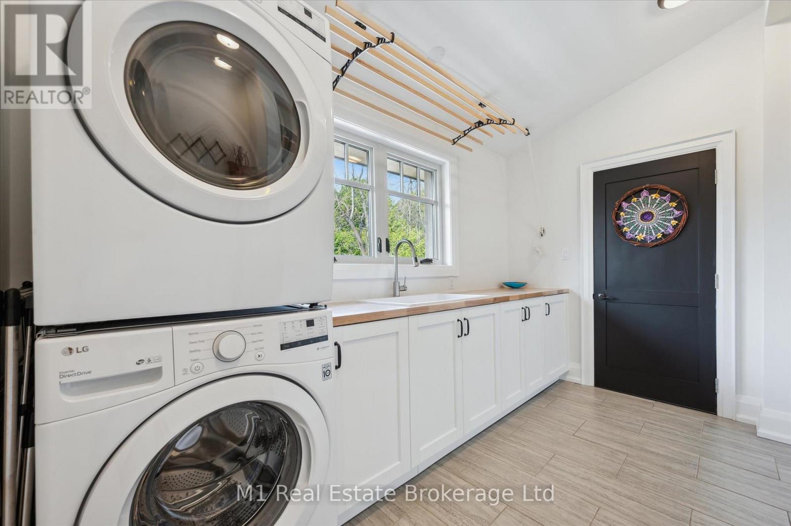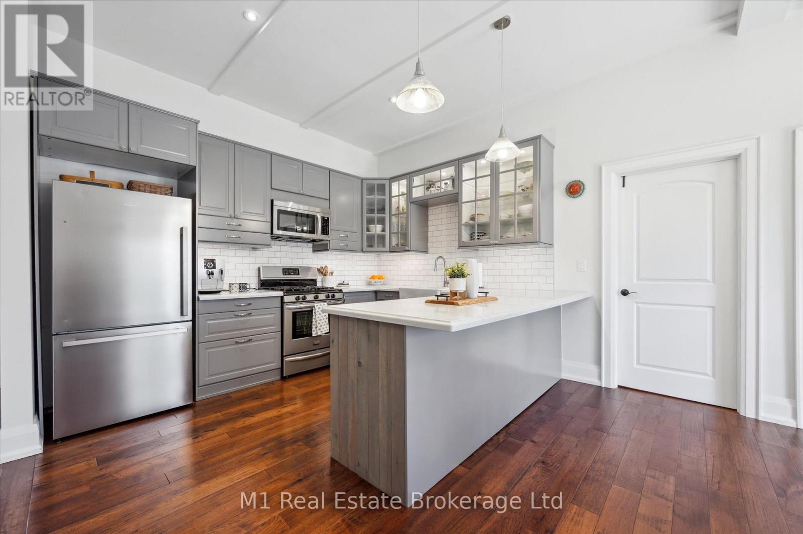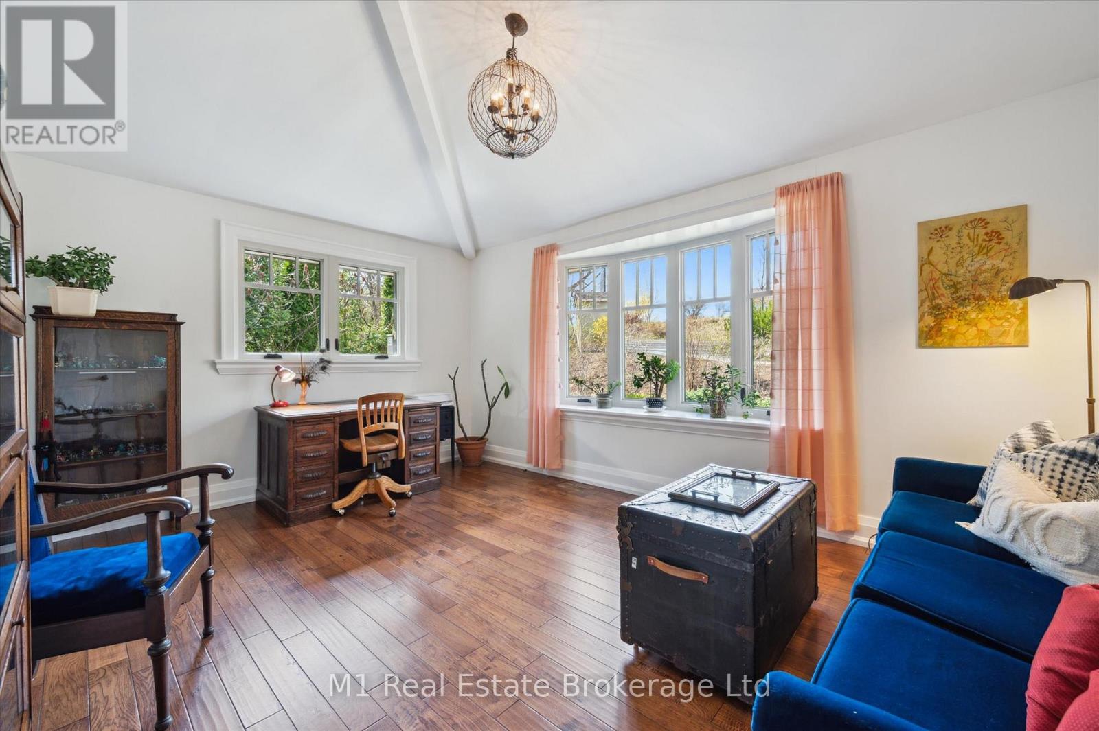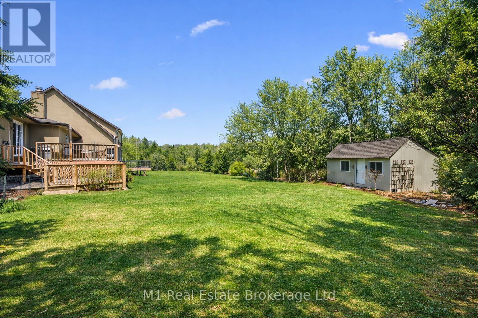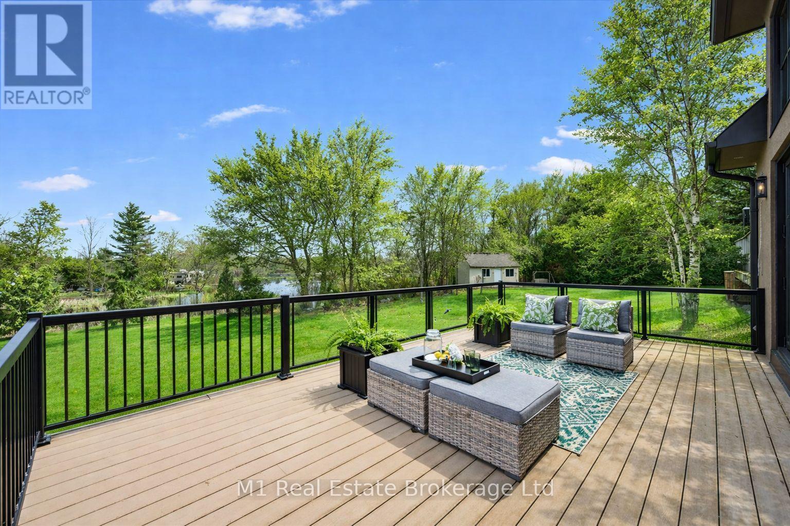 Exceptional Lake view Estate with Two Residences ideal for Multi-Generational Living. Welcome to this rareand remarkable opportunity to own a stunning lake view property featuring not just one, but two self-contained homes nestled on nearly one acre of beautifully landscaped land. The main residence is a warm and inviting 3-bedroom, 3-bathroom bungalow that seamlessly blends classic charm with modern upgrades. The heart of the home is a newly custom-designed kitchen that is truly a chefs dream, featuring high-end finishes, sleek appliances, and a layout built for entertaining. A recently added Chefs Pantry enhances the kitchens functionality and storage space ideal for the culinary enthusiast. Just steps away,the second home is a custom-built 2-bedroom, 2.5-bathroom bungaloft and offers a striking architectural design, complete with soaring cathedral ceilings, floor-to-ceiling windows, and breathtaking lake views.The open and airy interior is flooded with natural light, creating a serene atmosphere that blends seamlessly with the natural surroundings. Every detail was thoughtfully chosen to reflect comfort,character, and timeless elegance. Step outside onto the spacious back deck, a perfect place to unwind and enjoy tranquil summer evenings surrounded by nature. Both homes are equipped with their own attached double garage,ensuring secure, convenient parking and additional storage, while the expansive driveways,offer plenty of space for guests. The expansive basement provides opportunity to add more bedrooms. The large, well-maintained lot presents endless opportunities for outdoor entertaining, gardening, or simply enjoying the peace and quiet. Located just a stone's throw from the serene Fairy Lake and only a 2-minutedrive to the prestigious Blue Springs Golf Course, this property combines the best of rural tranquility with easy access to premium amenities. Centrally located between Guelph and the GTA. A detailed list of features and upgrades is available. (id:64974)