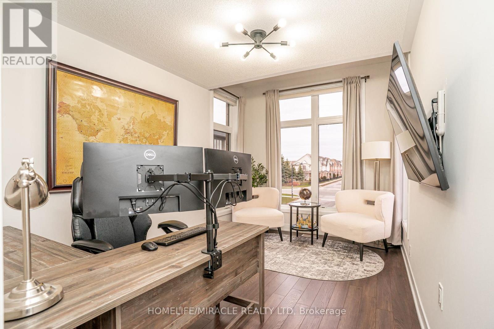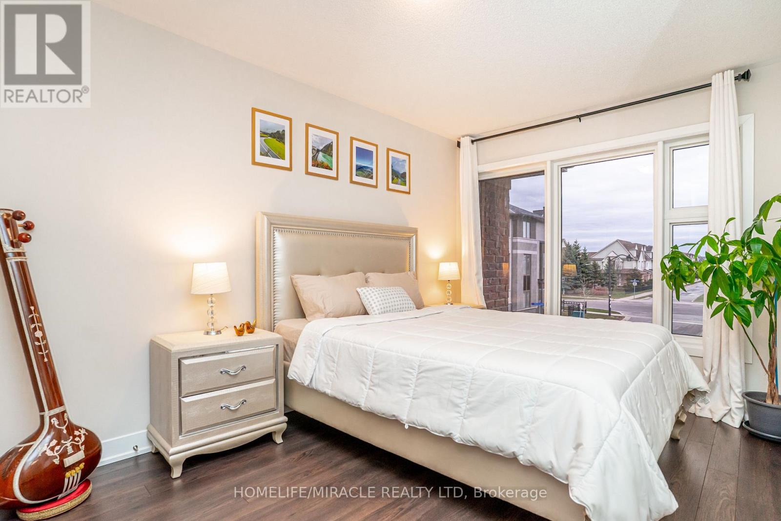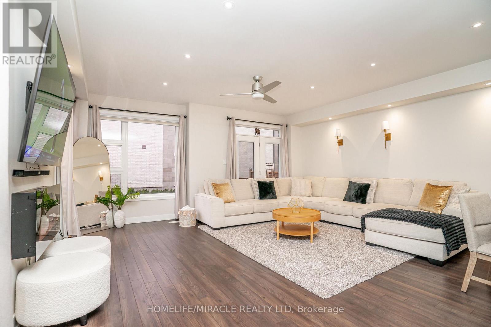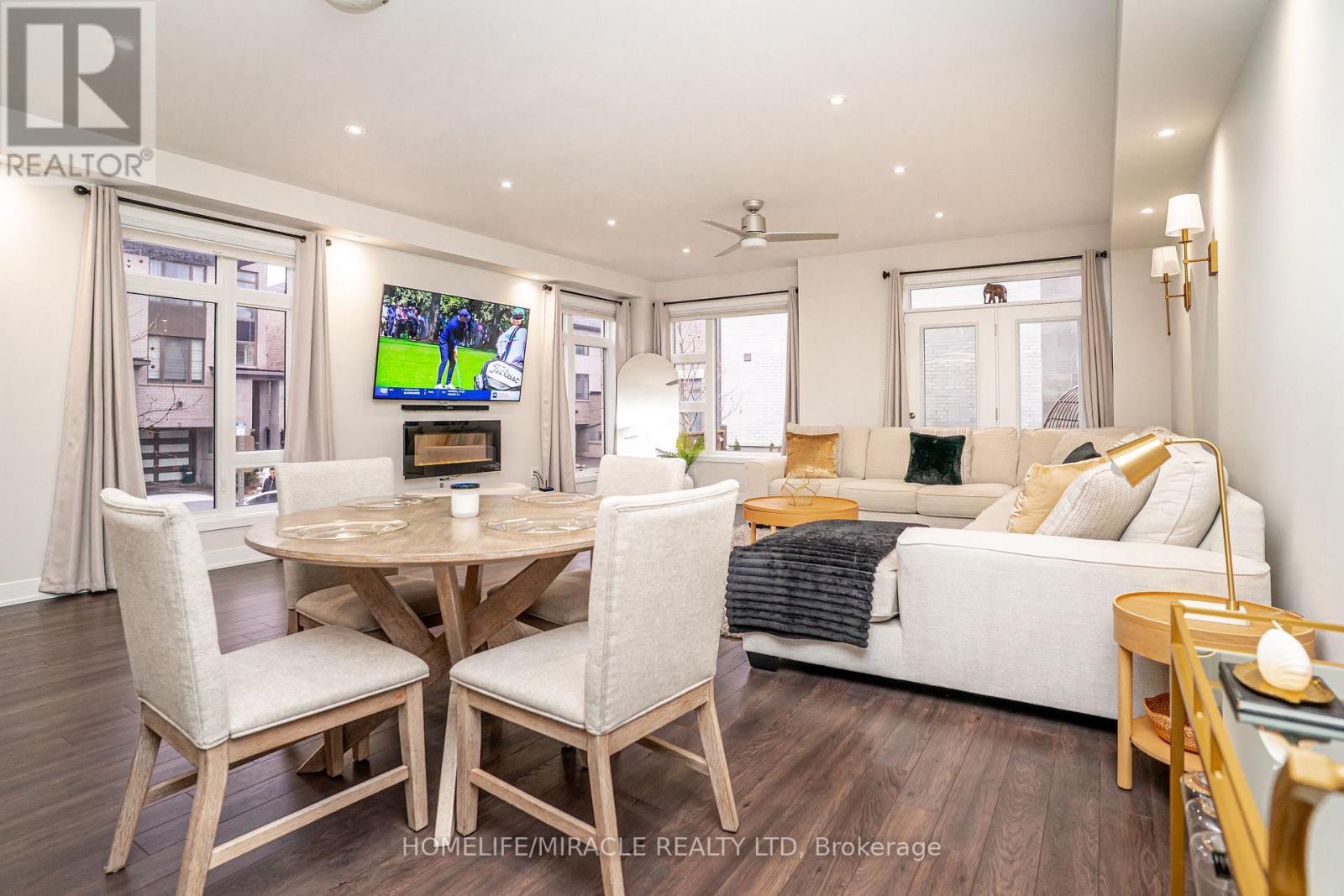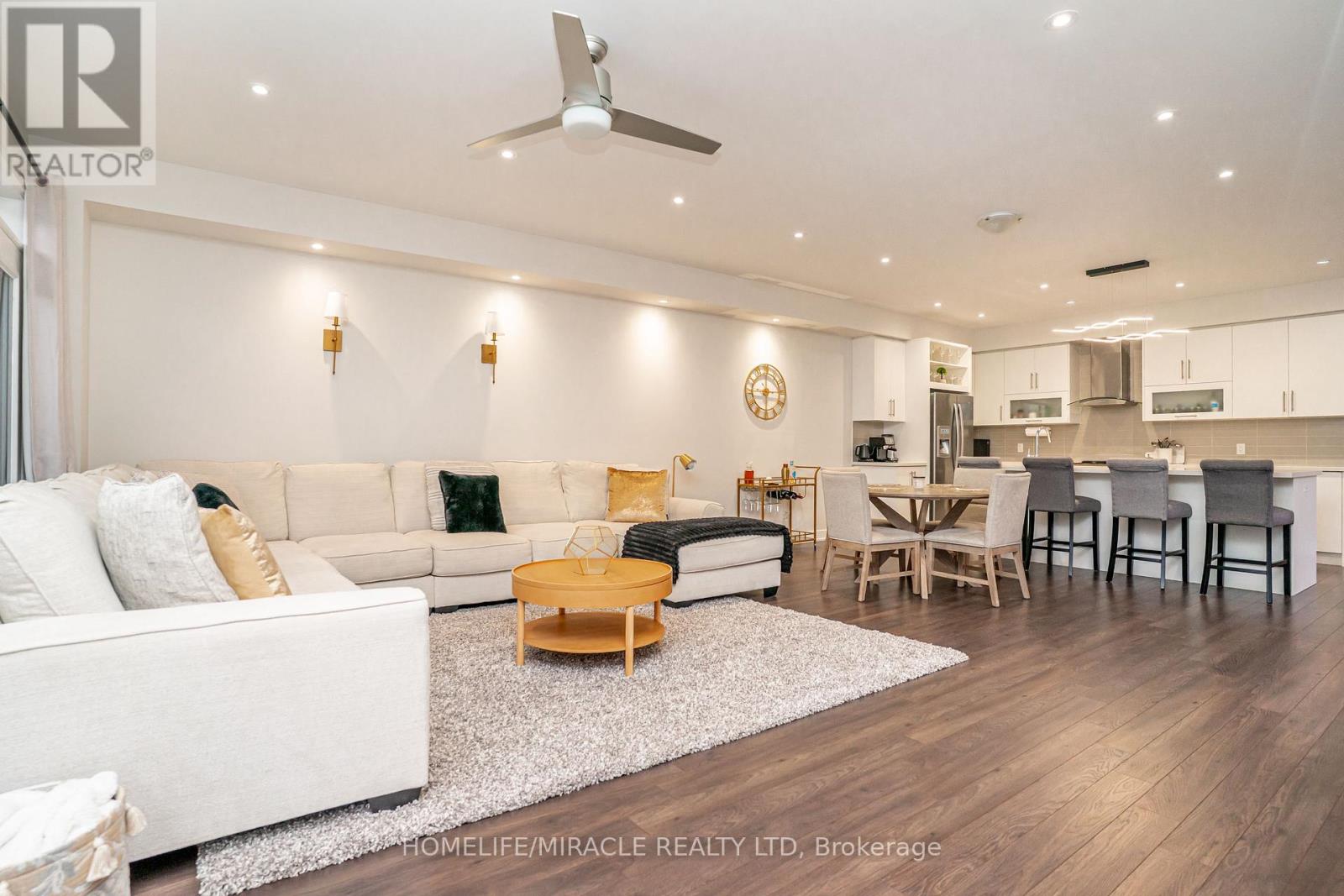 Welcome to this stunning, modern end-unit Condo Townhouse a true showpiece offering over 2,250 sf of luxurious open concept living space, with more than $120K in premium upgrades throughout. This exceptional 2 Story home features 3 spacious bedrooms, a versatile media/entertainment room and a beautifully finished in-law suite complete with its own Kitchen, Bedroom, Washroom, Living with Dining areas and a private laundry ideal for extended family or excellent income potential.The main level showcases gleaming laminate flooring, a chef inspired Kitchen with high end Stainless Steel appliances, elegant backsplash and a custom island perfect for entertaining. Large windows fill the space with lots of natural light, complemented by pot lights and an elegant and stylish electric fireplace.Walk out to a spectacular two-tier deck perfect for outdoor entertaining and relaxing.Upstairs you'll find three generously sized bedrooms, including a luxurious primary suite with a spa-like ensuite. A Flexible media room offers the ideal space for a home office or additional lounge. Enjoy the convenience of second floor laundry.This beautiful corner unit is located in a highly desirable neighborhood and features smooth ceilings throughout main floor, with convenient visitor parking right at your doorstep. Ideally situated close to Highways 401, 407and 412 as well as the Go Station, shopping, schools, public transit, and scenic trails offering both comfort and convenience with everything you need just minute away. (id:64974)