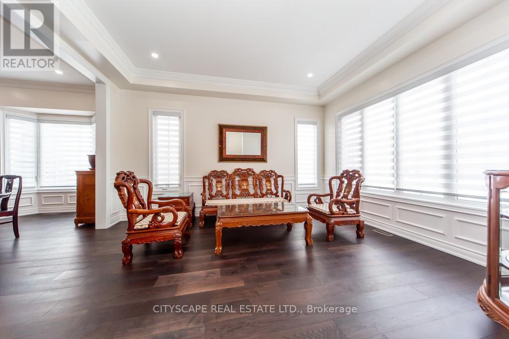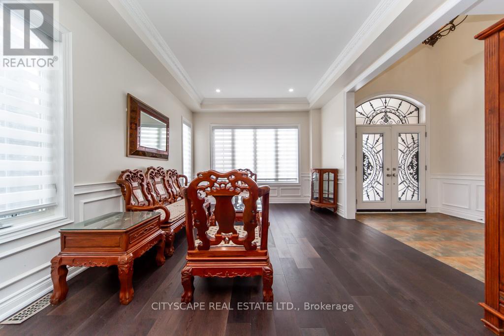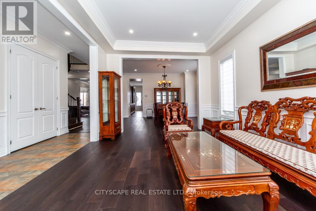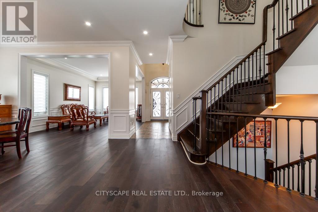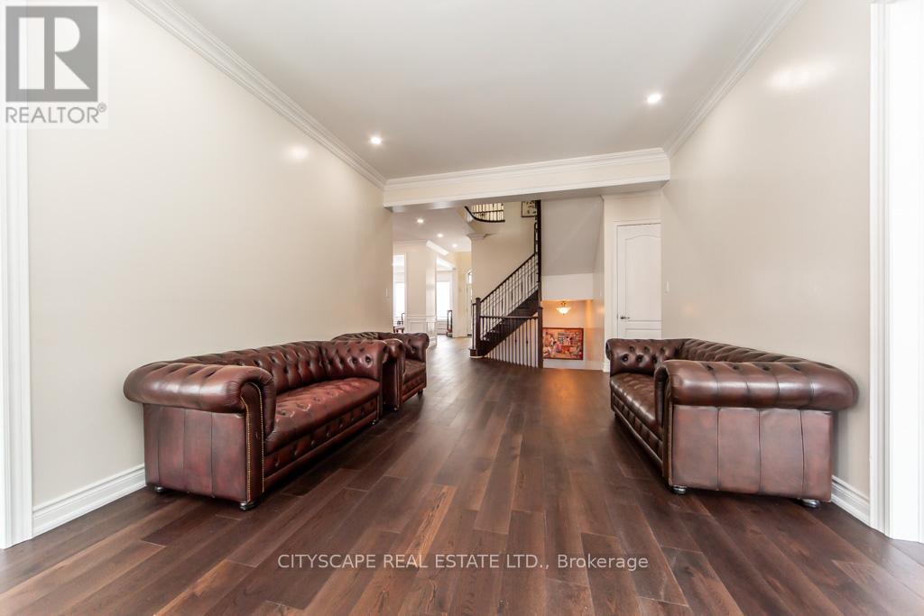 Welcome to this magnificent, fully upgraded Executive home offering approximately 3,800 sq. ft. of luxurious living space plus around 1,500 sq. ft. of fully finished walk-out basement. This stunning 5-bedroom residence showcases premium upgrades throughout, including brand new hardwood flooring across the entire home, granite countertops in the kitchen and all bathrooms, elegant cornice moldings, wainscoting, pot lights, and valence Chandeliers. A breathtaking spiral oak staircase with iron pickets creates a grand impression. The main floor features a thoughtfully designed layout with a separate formal living room, elegant dining room, and a spacious family room with a cozy gas fireplace-perfect for both entertaining and comfortable family living. The upgraded chef's kitchen features granite counters, high-end appliances, and a bright breakfast area that walks out to a huge oversized deck. A large main-floor office/den offers versatile space for working from home, studying, or additional living needs. Main-floor laundry with direct garage access and soaring 10-ft ceilings add convenience and elegance. The second floor offers 5 generously sized bedrooms with large windows and ample closet space, filling the home with natural light. Primary Bedroom features a spa-like 5-piece ensuite and two walk-in closets for his and hers. The remaining bedrooms are thoughtfully connected with convenient Jack & Jill bathrooms, offering privacy and practicality. The fully finished walk-out basement adds incredible value and versatility, featuring 2 additional bedrooms, a full washroom, a huge kitchen, and a spacious living area with direct walk-out access to the backyard garden-perfect for extended family living, Renting or potential in-law accommodation. Situated on a premium corner lot, the backyard is a true private oasis featuring two oversized decks, a Fountain & Gazebo. Homes of this caliber, size, and upgrades rarely come. A truly impressive property that must be experienced! (id:64974)