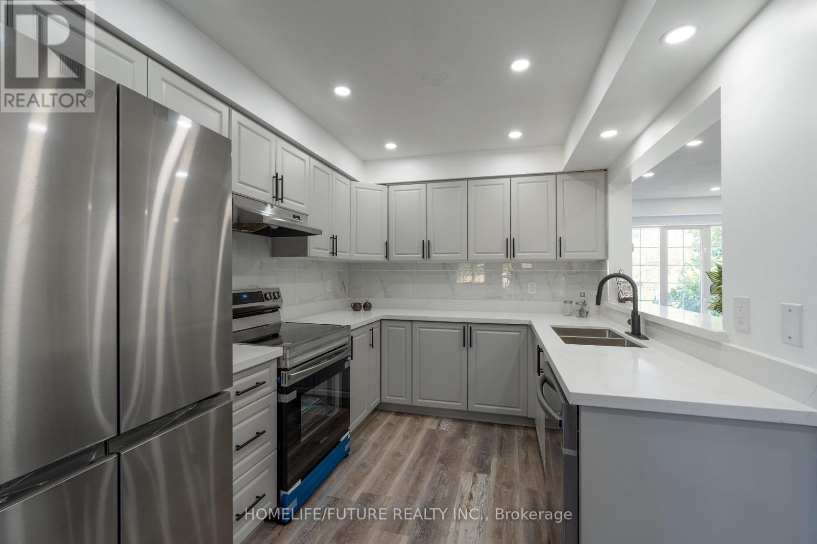 Stunningly Renovated End-Unit Townhouse Offering Over 2,100 Sq. Ft. Of Modern Living Space, Featuring 3 Spacious Bedrooms And 3 Updated Bathrooms With A Sleek Open-Concept Design Perfect For Today's Lifestyle. This Beautifully Upgraded Home Includes Fresh Paint Throughout, New Vinyl Flooring, Contemporary Light Fixtures, Modern Vanities, Stylish Accessories, And Brand-New Stainless Steel Appliances. Enjoy A Large Private Outdoor Deck Ideal For Entertaining. Located In A Highly Sought-After Area, Just Steps From The Milton Public Library, Leisure Centre, First Ontario Arts Centre, GO Station, Parks, Restaurants, Canadian Superstore, Schools, And Easy Access To Hwy 401-This Turnkey Home Combines Comfort, Convenience, And Unbeatable Location. (id:64974)