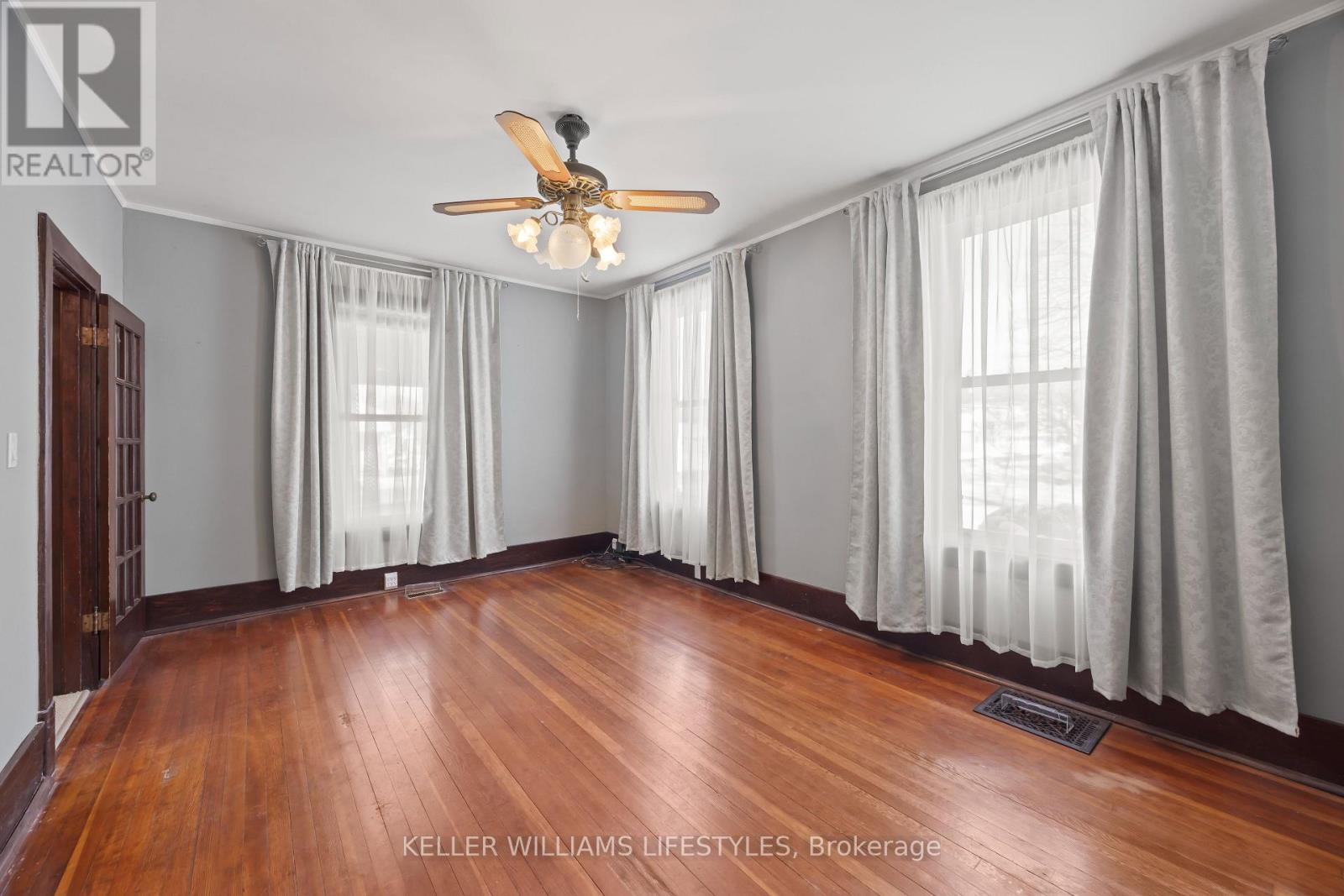 Prime opportunity with severance potential at 136 Queen Street in the growing village of Ailsa Craig! Set on an impressive 120' x 140' double corner lot, this 1.5 storey century home offers plenty of space and exciting potential for a new owner to reimagine. The home features 3 bedrooms, 2 bathrooms, updated electrical wiring (2025) with 100-amp service, metal roof, classic French doors, and a partial attic providing additional storage. Two cozy covered porches offer the perfect spot for morning coffee or evening relaxation. Outside, enjoy mature trees, double entrance driveway, and a detached 2-car garage, making the property both charming and practical. Located within walking distance to the grocery store, LCBO, pharmacy, gym, an upcoming daycare facility and a fantastic community park with splash pad, skateboard area, and trails. Ailsa Craig is a short drive to London, Strathroy and Grand Bend. (id:64974)