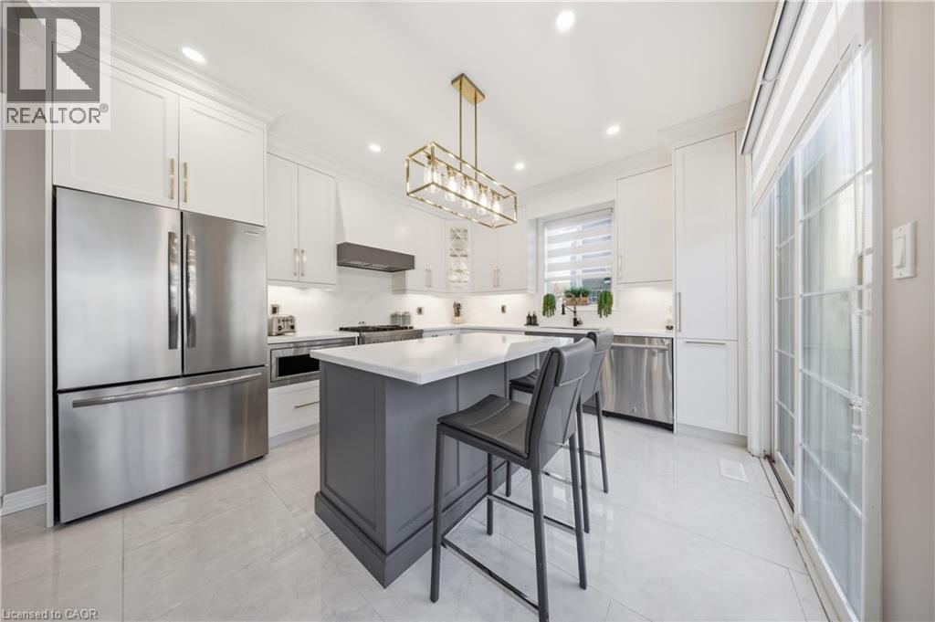 Welcome to 1360 Hill, an exceptional opportunity in a highly sought-after enclave in Beaty. Set on a 52x103ft lot, this beautifully maintained Mattamy home, proudly owned by the original owners, offers 2,675 sq ft above grade plus a 900 sq ft finished basement. Positioned minutes to shopping, schools, parks, public transit, and Hwy 401, this home delivers a high walk score. Enjoy a thoughtful layout designed for everyday comfort and entertaining, with 9ft ceilings on the main floor, brand new porcelain tiles throughout the main level, professionally refinished maple hardwood on the main and upper levels, and a timeless oak staircase. Updated lighting and pot lights enhance the home, while the walk-in coat closet adds convenience. At the heart of the home is the professionally designed luxury kitchen (2024), featuring custom cabinetry, quartz countertops and backsplash, and new JennAir appliances with transferable extended warranties. The kitchen is elevated with a built-in microwave, valance lighting, gas range, and commercial-grade professional range hood. Just off the kitchen, the inviting family room is anchored by a stone-clad gas fireplace. A custom-built office offers a polished work-from-home setup, while the primary bedroom includes custom closets. Upstairs, you'll find 4 large bedrooms and second-floor laundry. The fully finished basement adds bonus space with brand-new luxury vinyl flooring, home theatre, gym area, bathroom, large recreation space, two storage rooms, and a sump pump. Outside, an oversized driveway accommodates 4 vehicles, plus an oversized 2 car garage with shelving. A new high-end GARAGA garage door adds style and function. The roof was completed in 2017 and remains in excellent condition. Step into the oversized backyard and unwind on the wooden deck, perfect for summer BBQs and outdoor entertaining. A rare offering blending space, upgrades, and prime location-this is a home you don't just move into, you grow into. (id:64974)